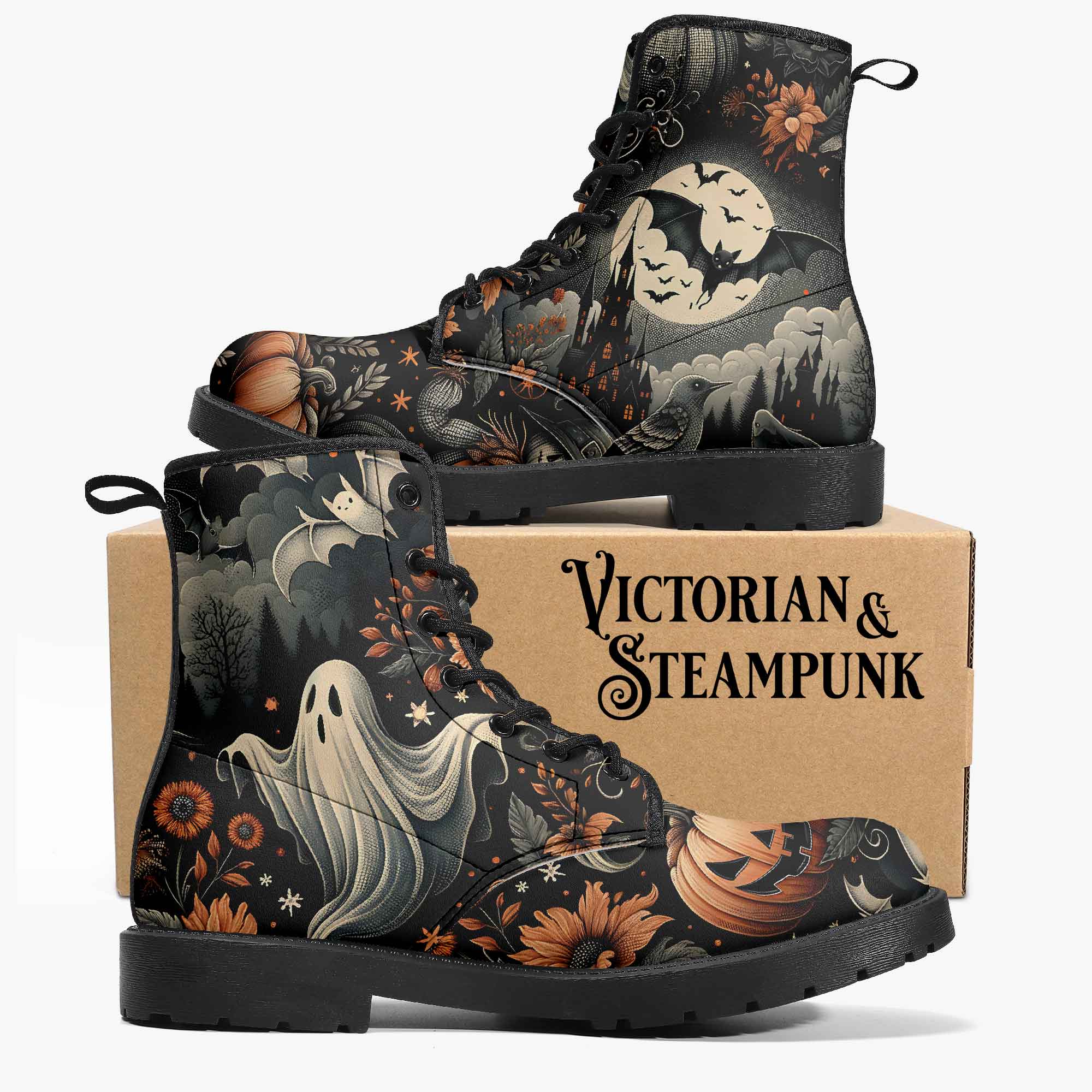 Spooky Halloween Combat boots with Pumkpins, Bats, Ghosts and more - Add a little playful spookiness to your outfit  – the perfect mix of gothic vibes and everyday comfort.