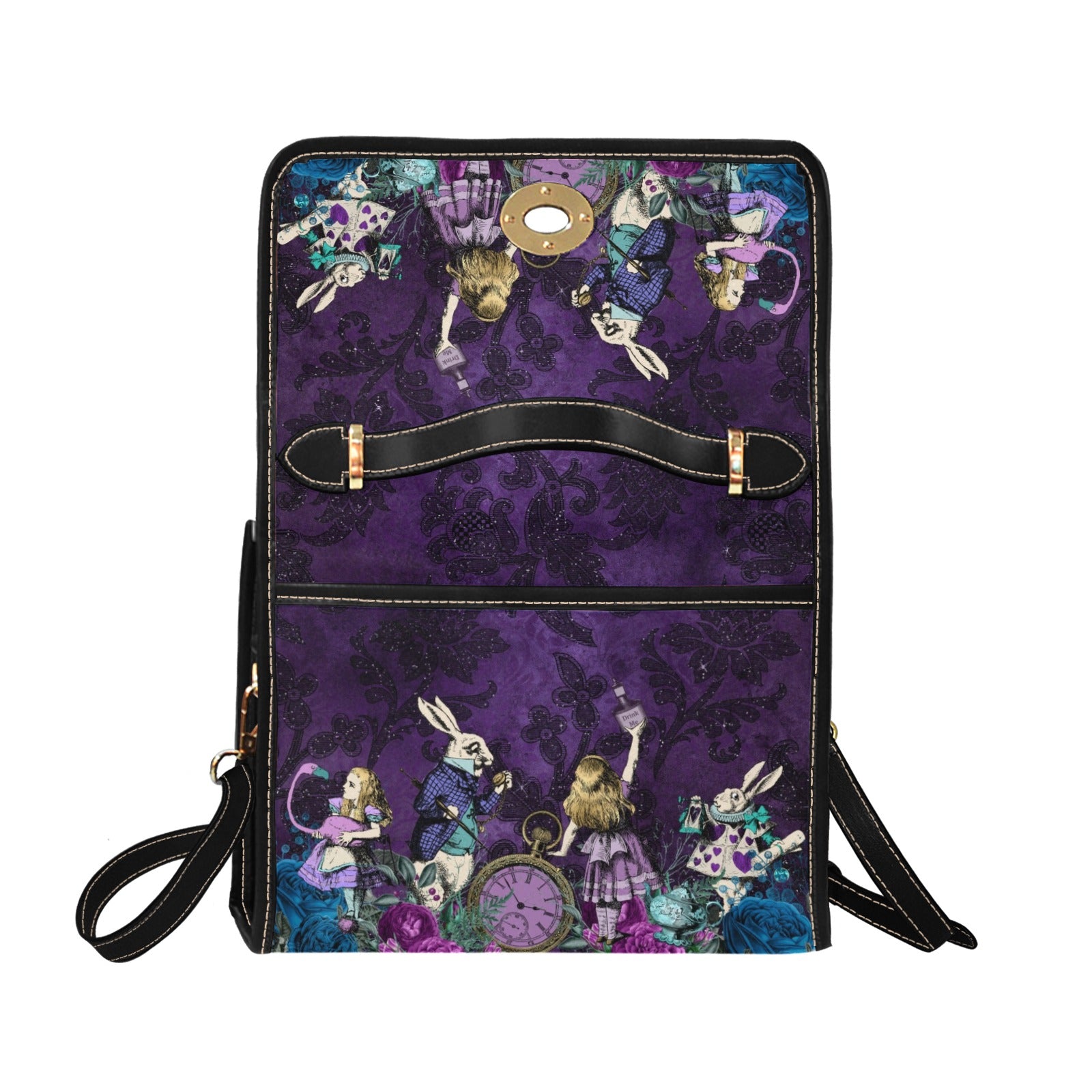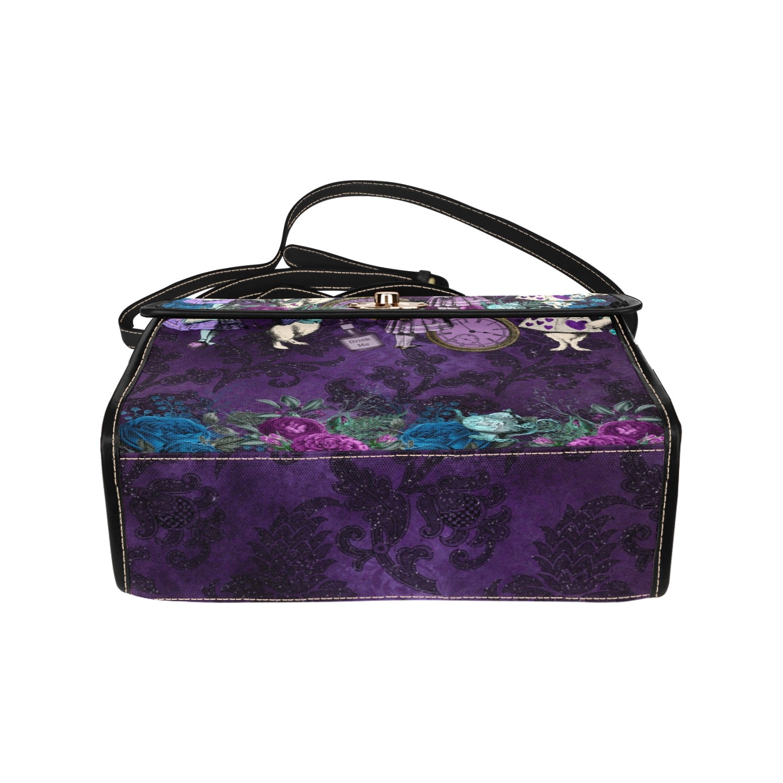 Alice in Wonderland purple satchel bag, crafted with durability in mind. You'll find enough room for all your belongings and can choose to wear it as a shoulder handbag or hand carried satchel.