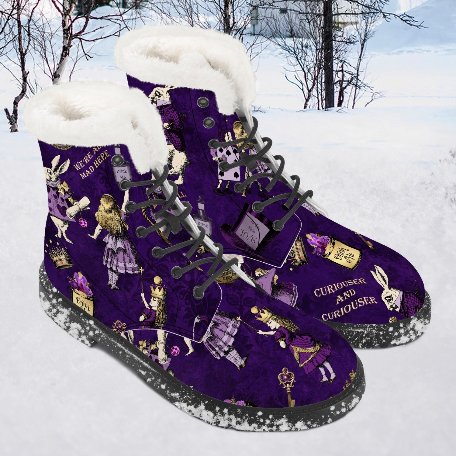 Alice in Wonderland Dark Purple Winter Faux Fur Boots (JPFPAP)