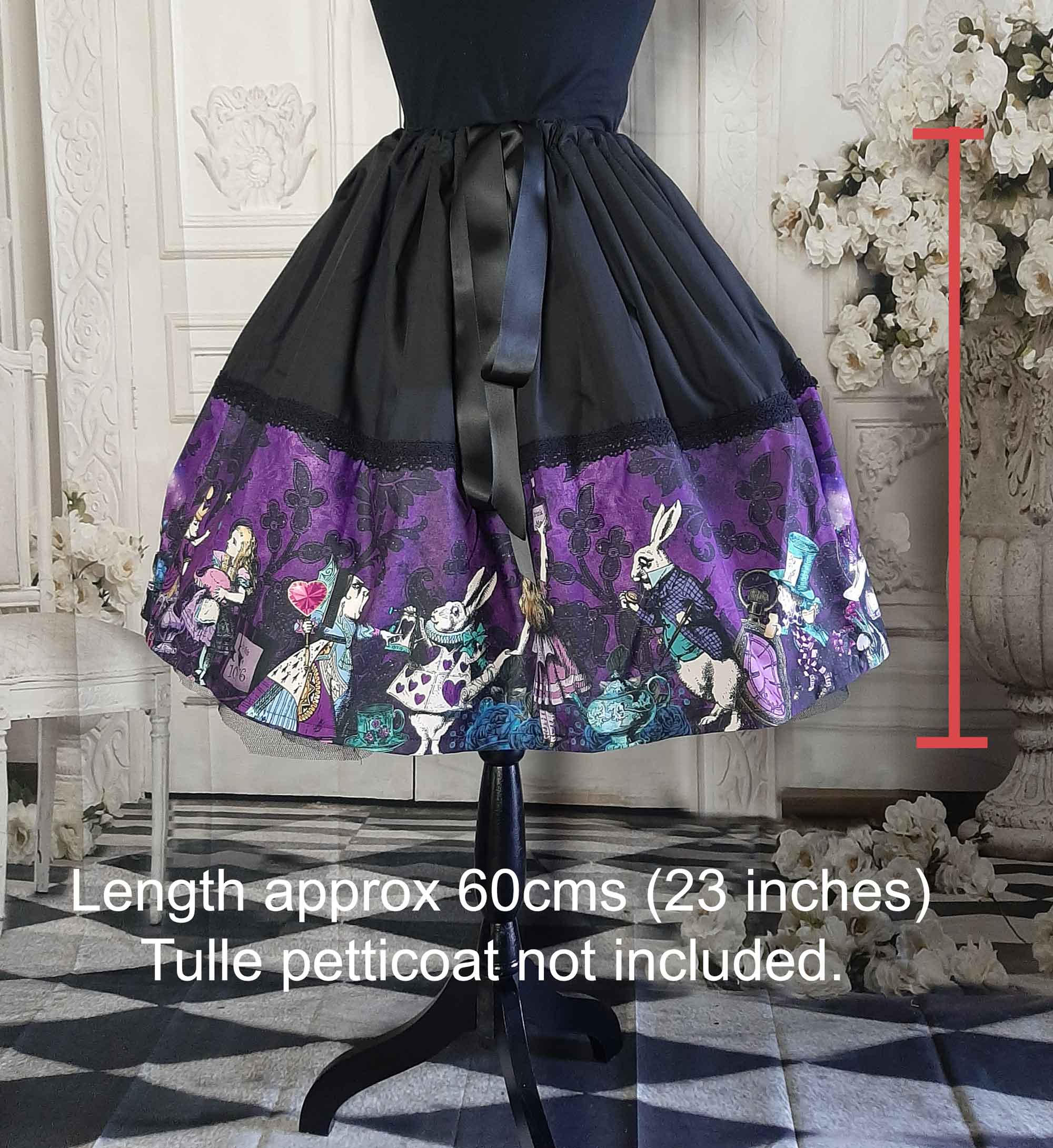 Alice in Wonderland Full Skirt - Dark Alice Gothic Rockabilly Full Skirt