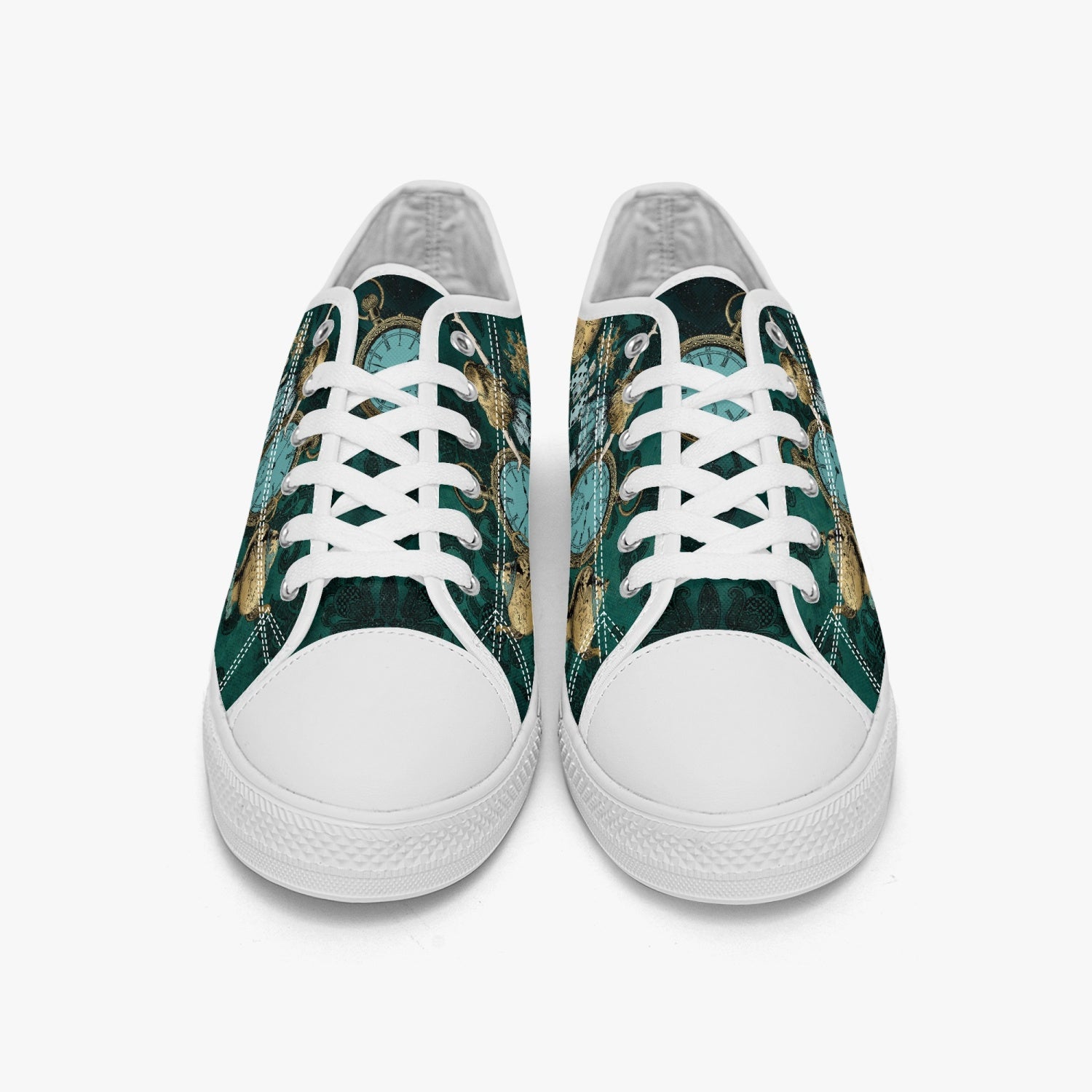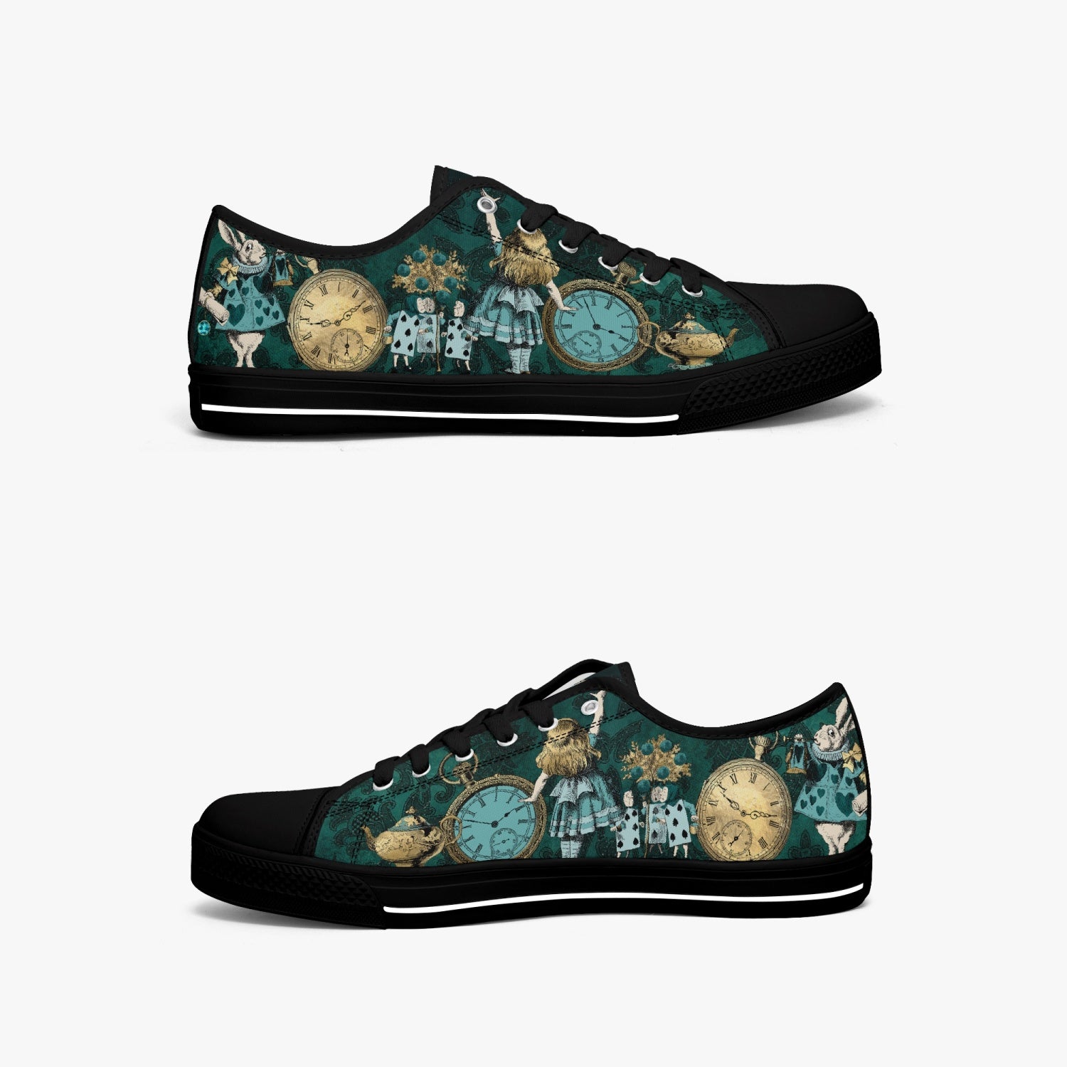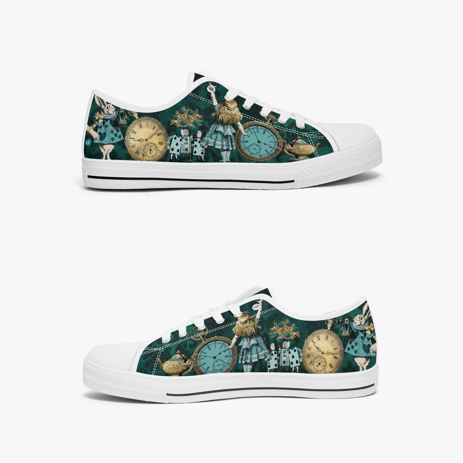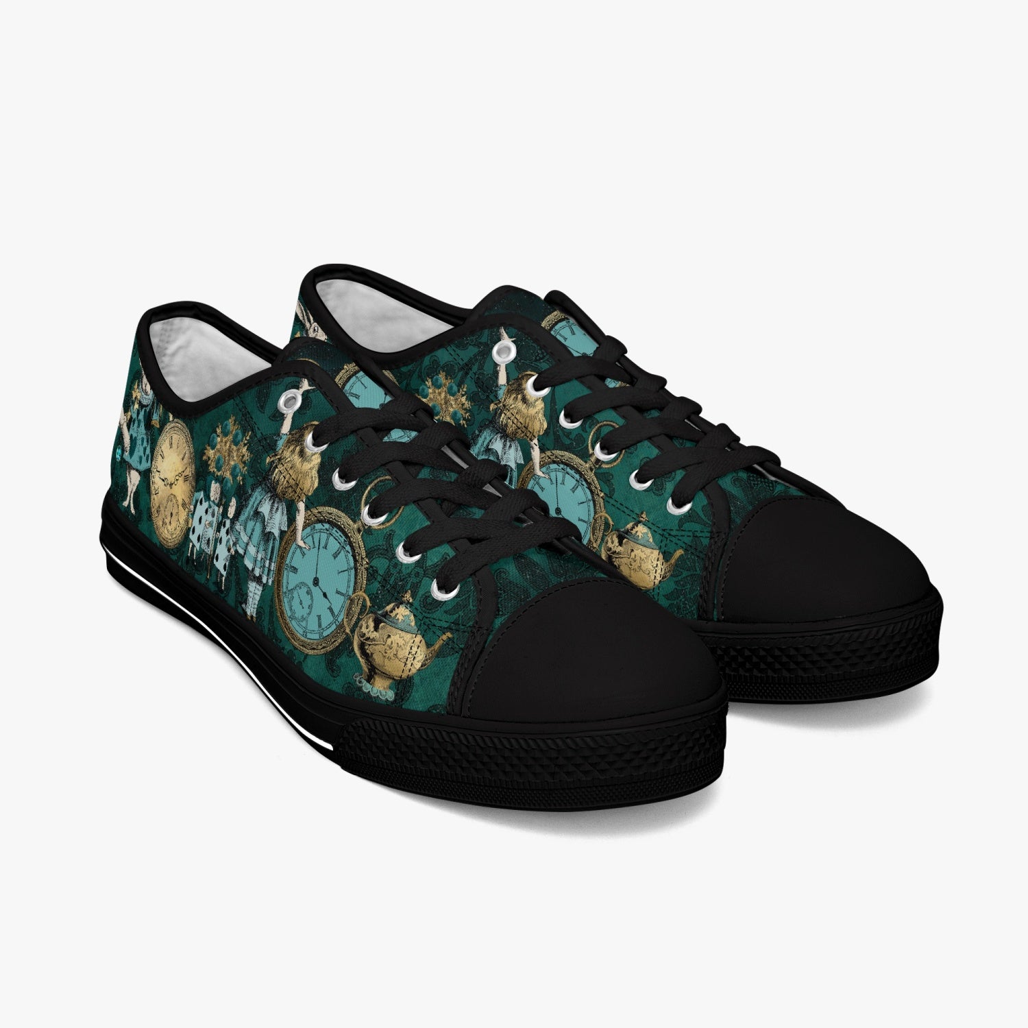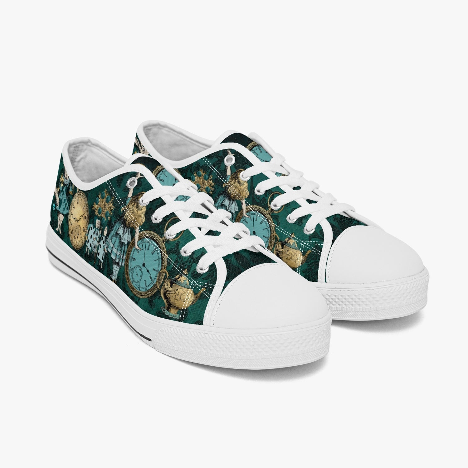 Alice in Wonderland Green Lo Top Sneakers - Green and Turquoise Mad Hatter Tea Party Shoes (JP3992)