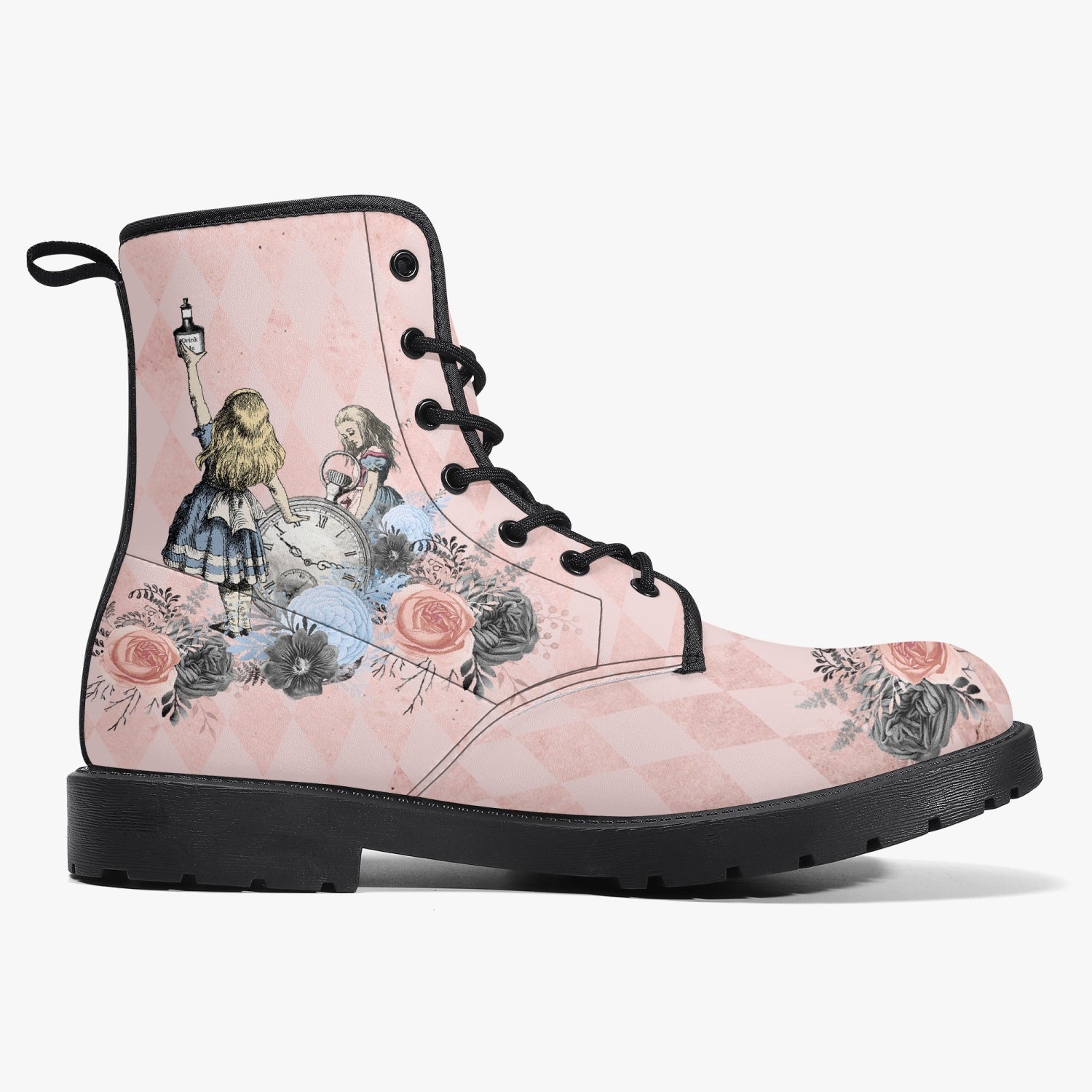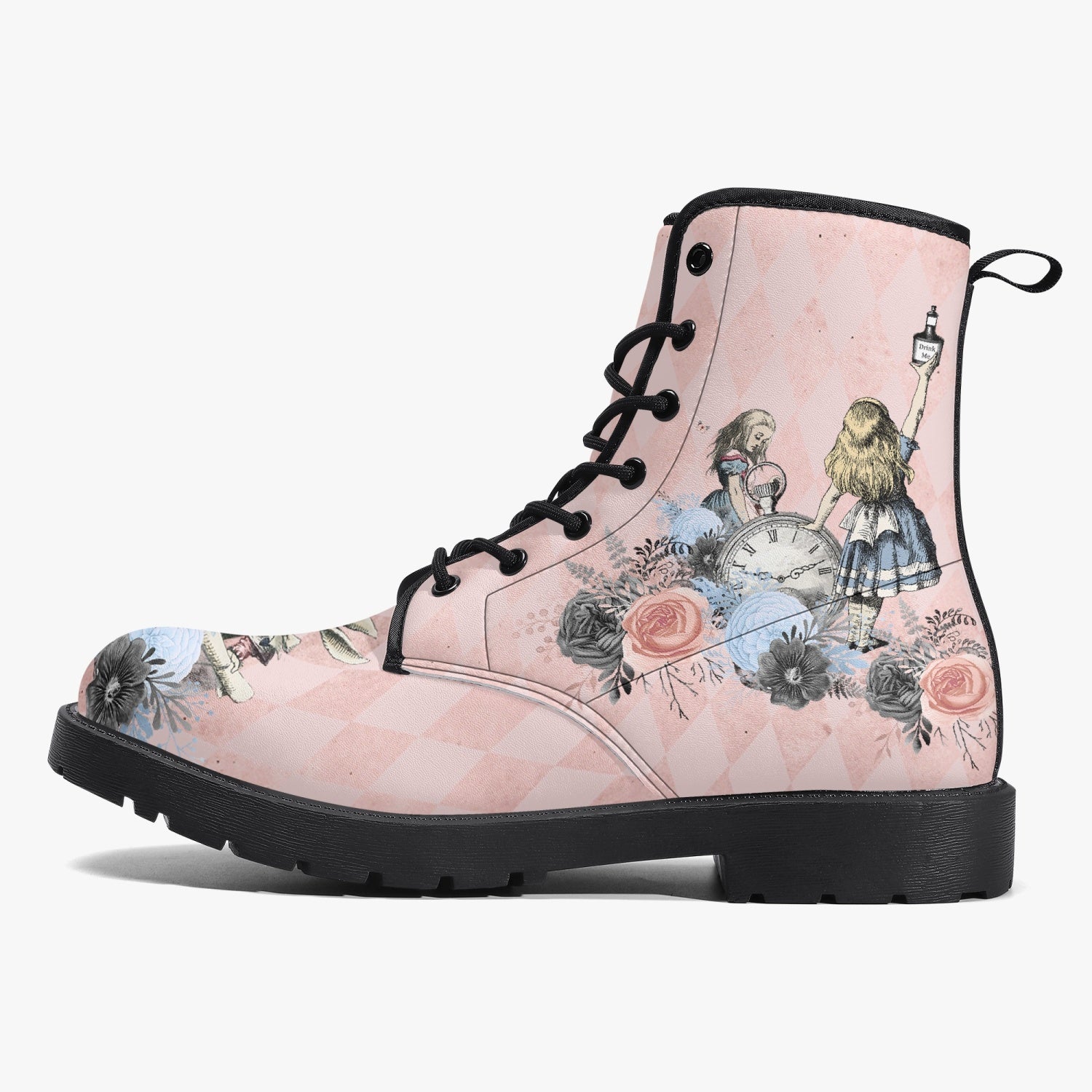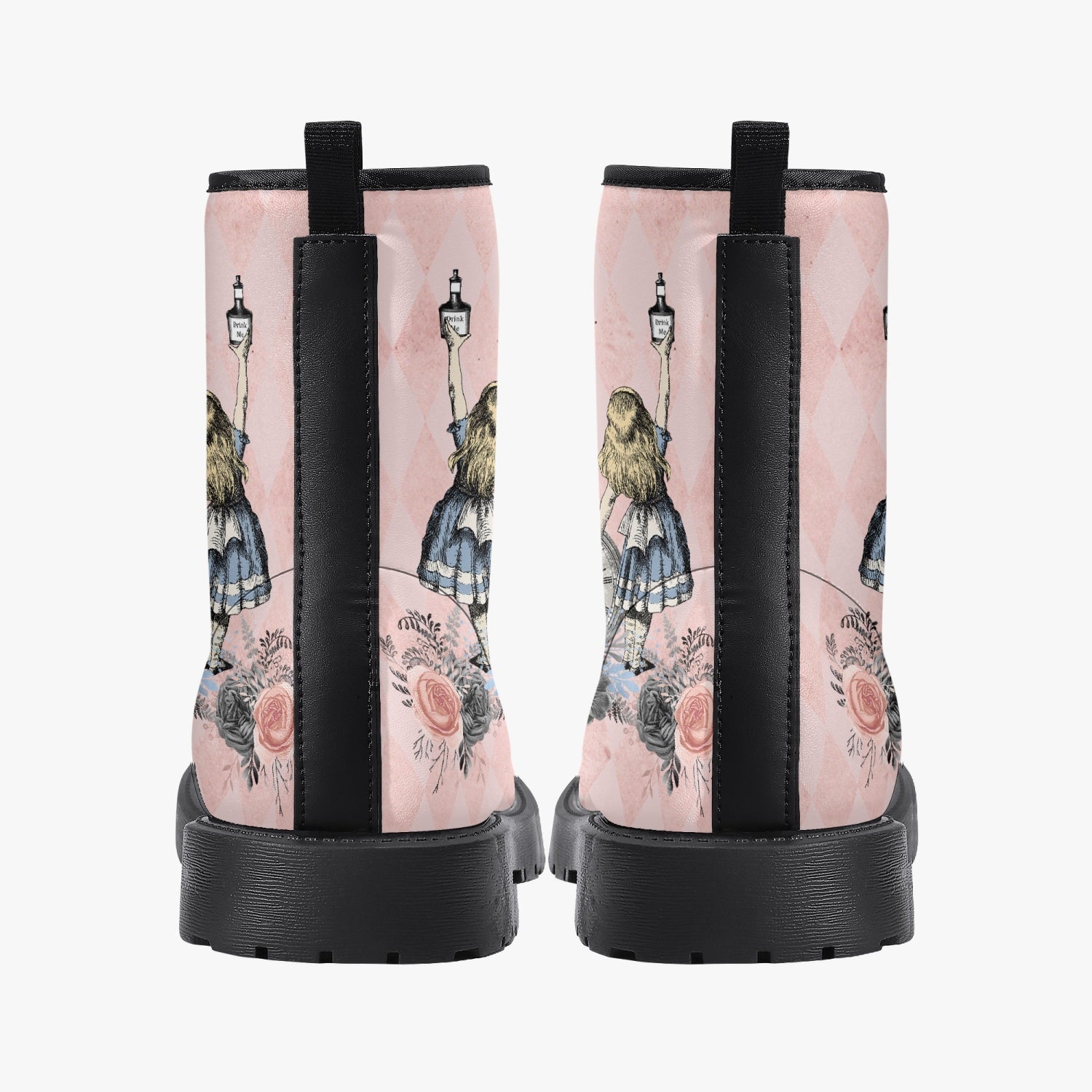Alice in Wonderland Pink Combat Boots - Alice "Drink Me" Pastel Goth Festival Boots (JPREG5)