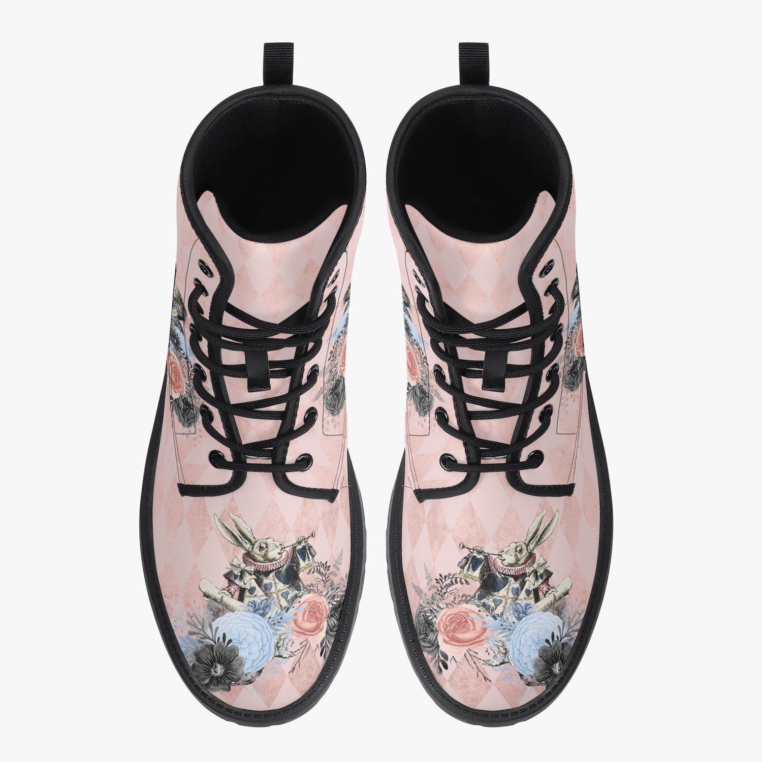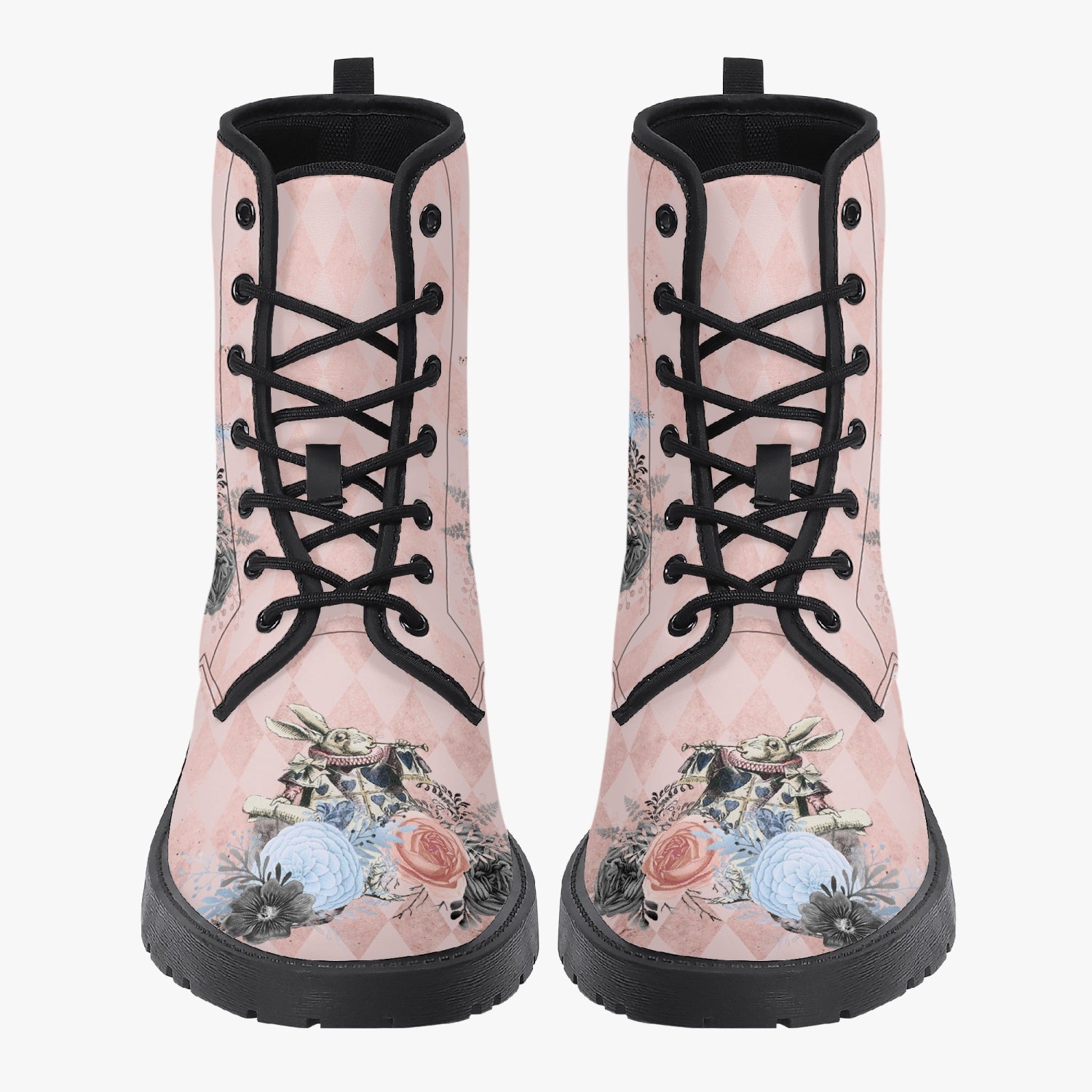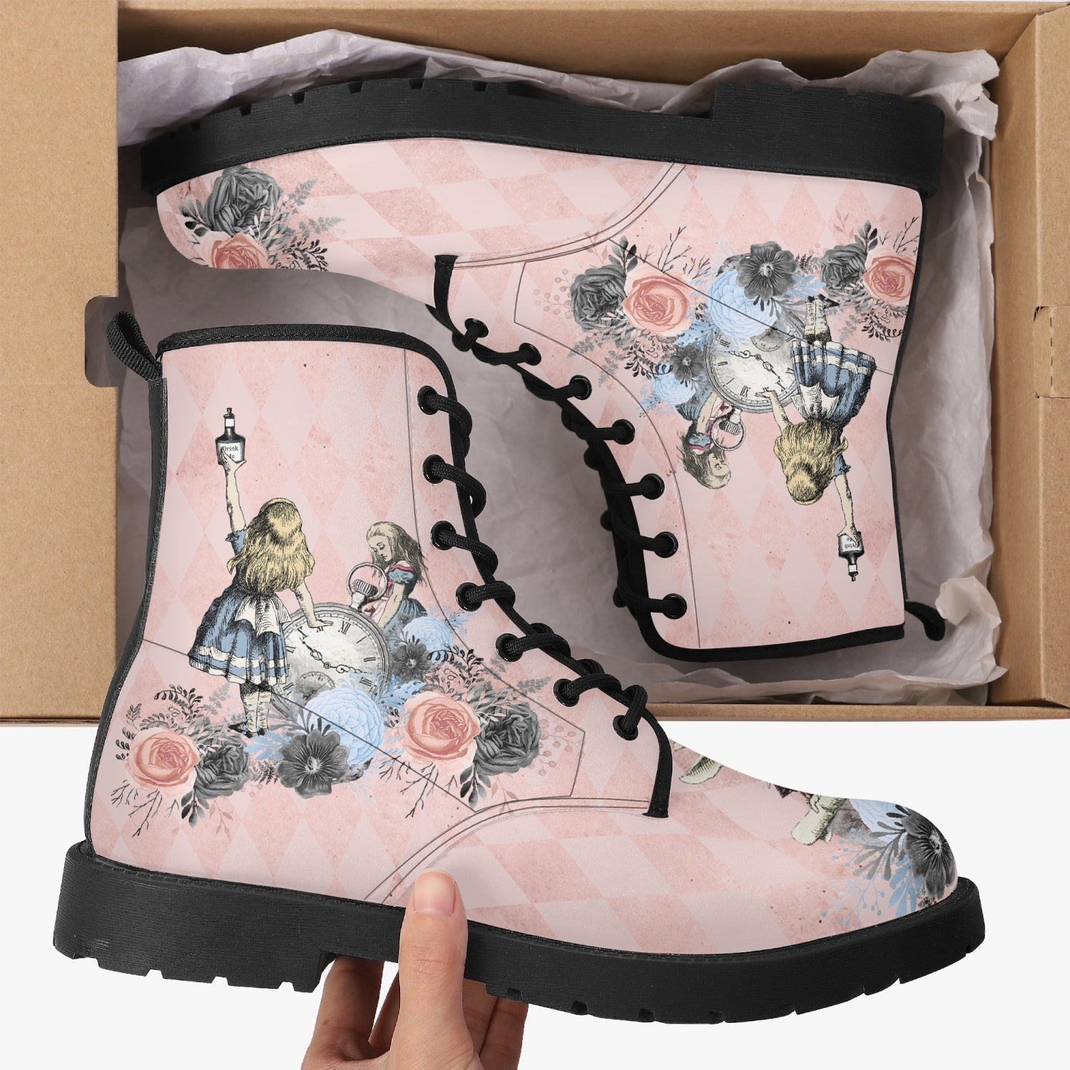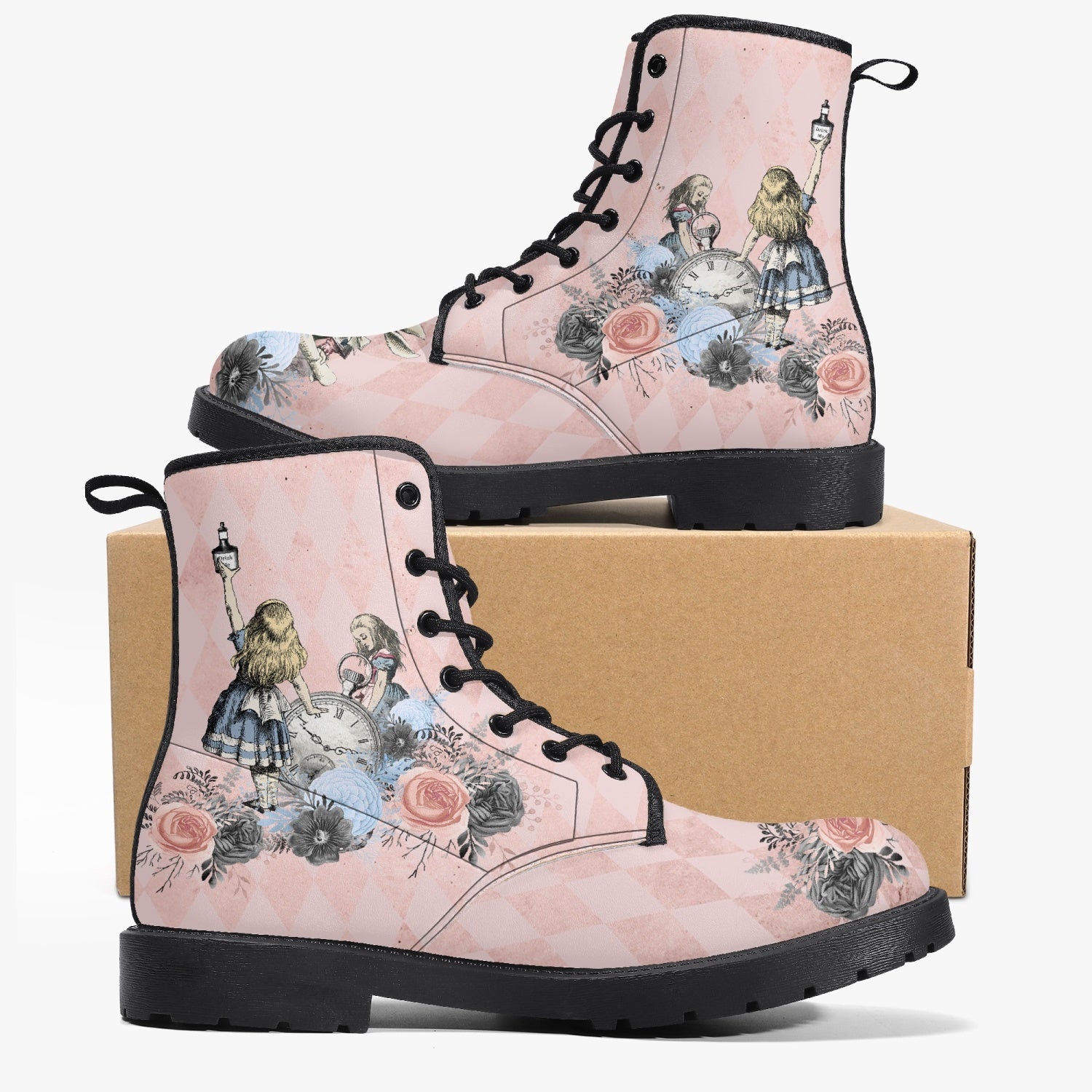 Alice in Wonderland Pink Combat Boots - Alice "Drink Me" Pastel Goth Festival Boots (JPREG5)