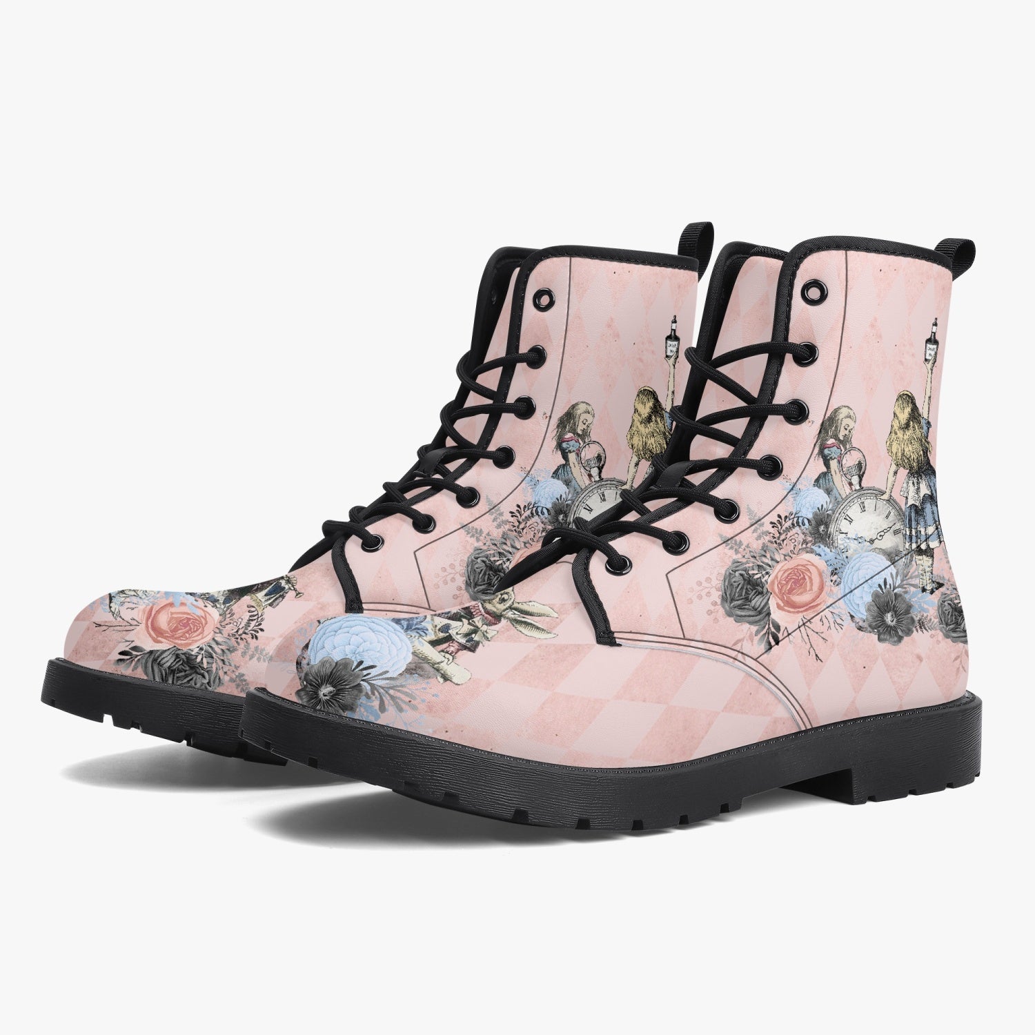 Pastel Alice in Wonderland combat boots.  Gorgeous pinks and blues for a soft pastel Alice accessory  These...