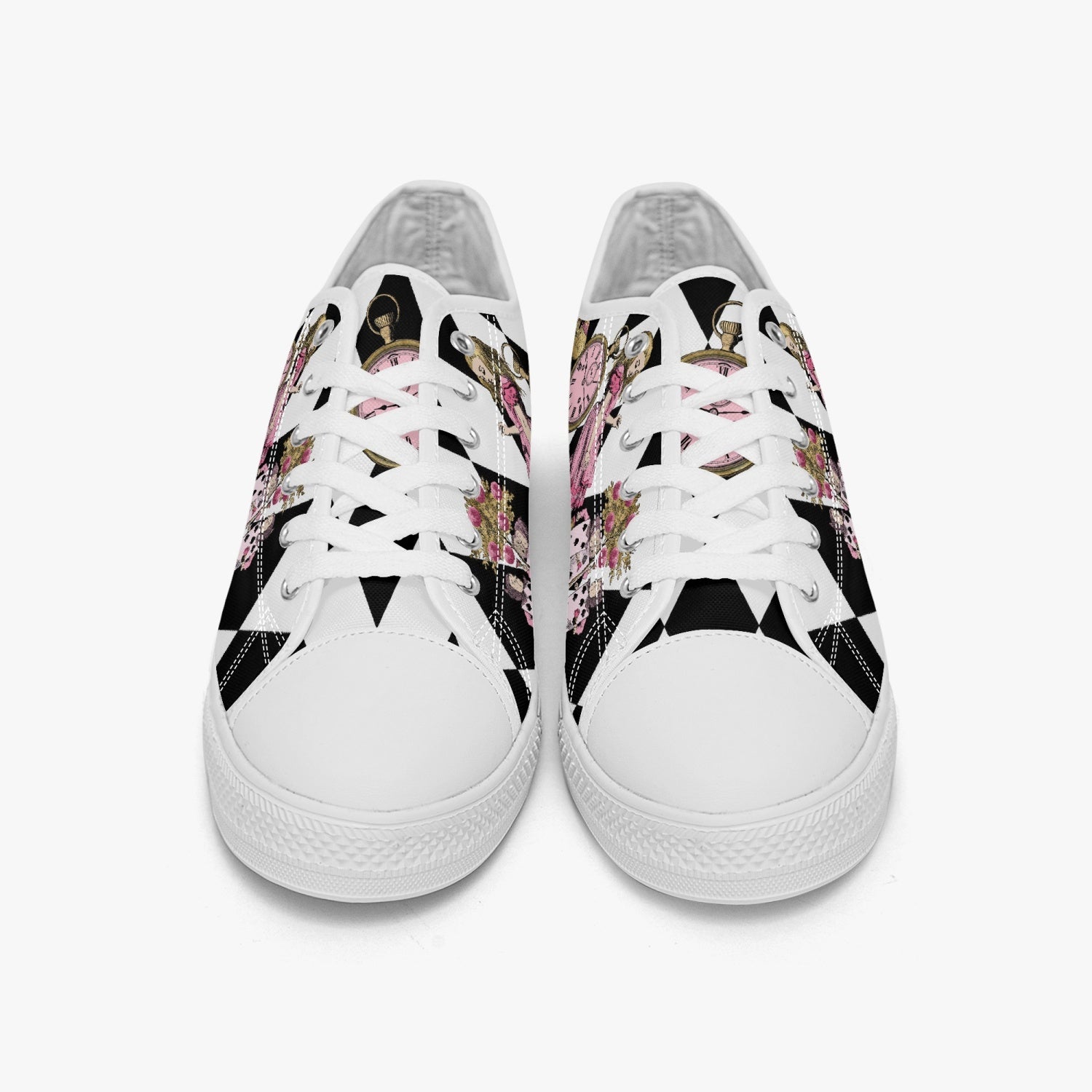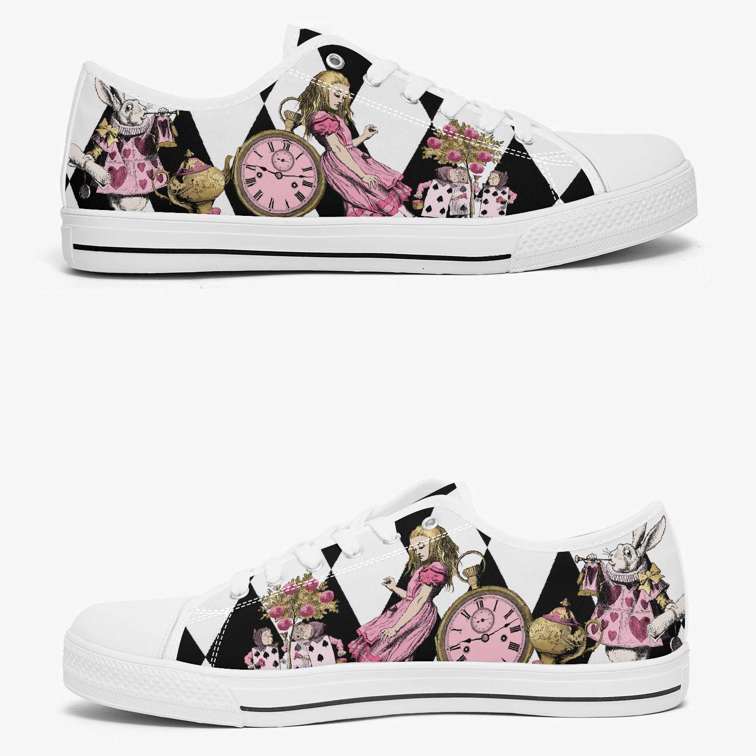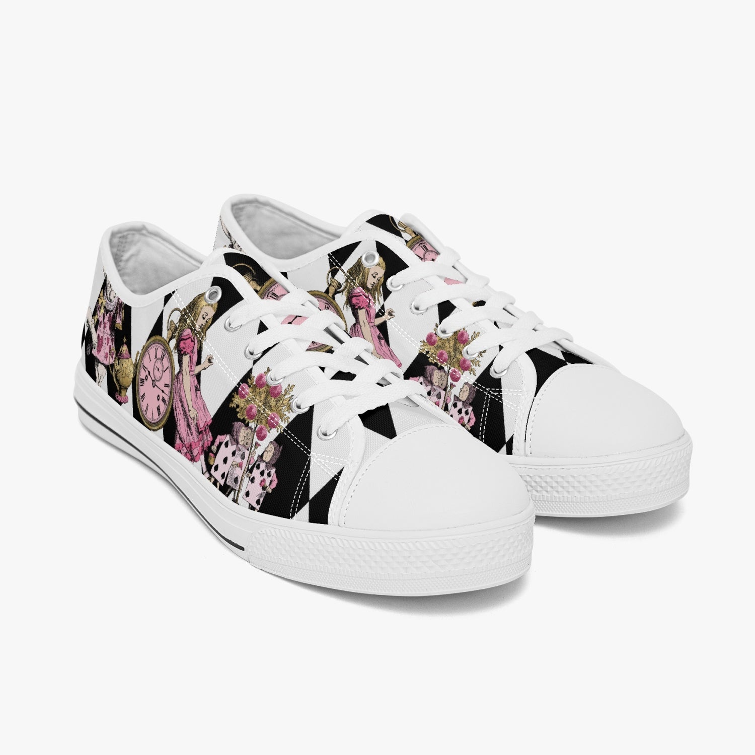 Alice in Wonderland Pink Lo Top Sneakers - Alice Tumbling Down the Rabbit Hole Mad Hatter Sneakers (JP3991)