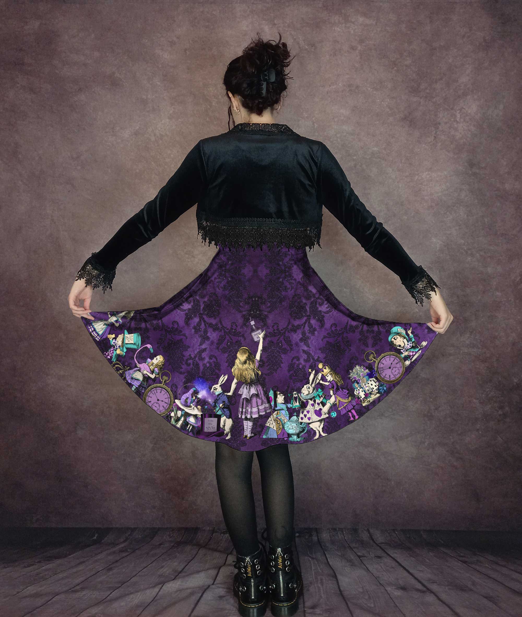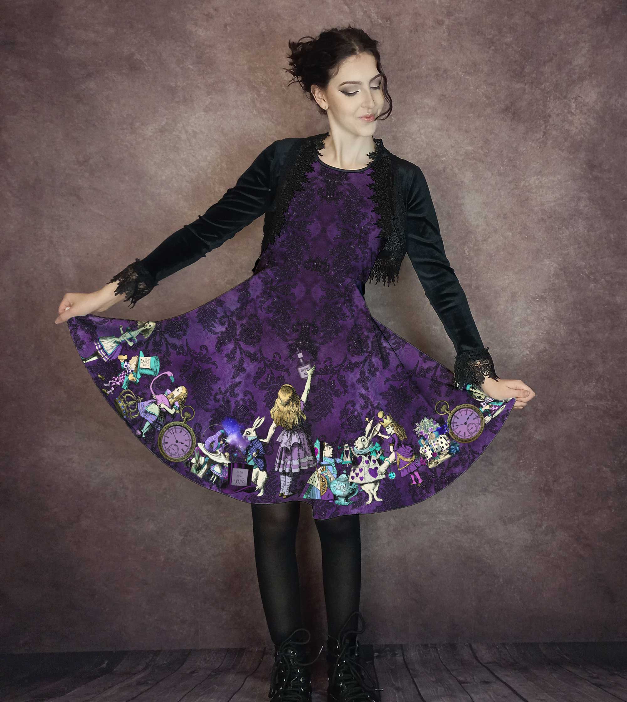Alice in Wonderland Purple Party Dress - Plus Size Friendly - Thicker Fabric Style