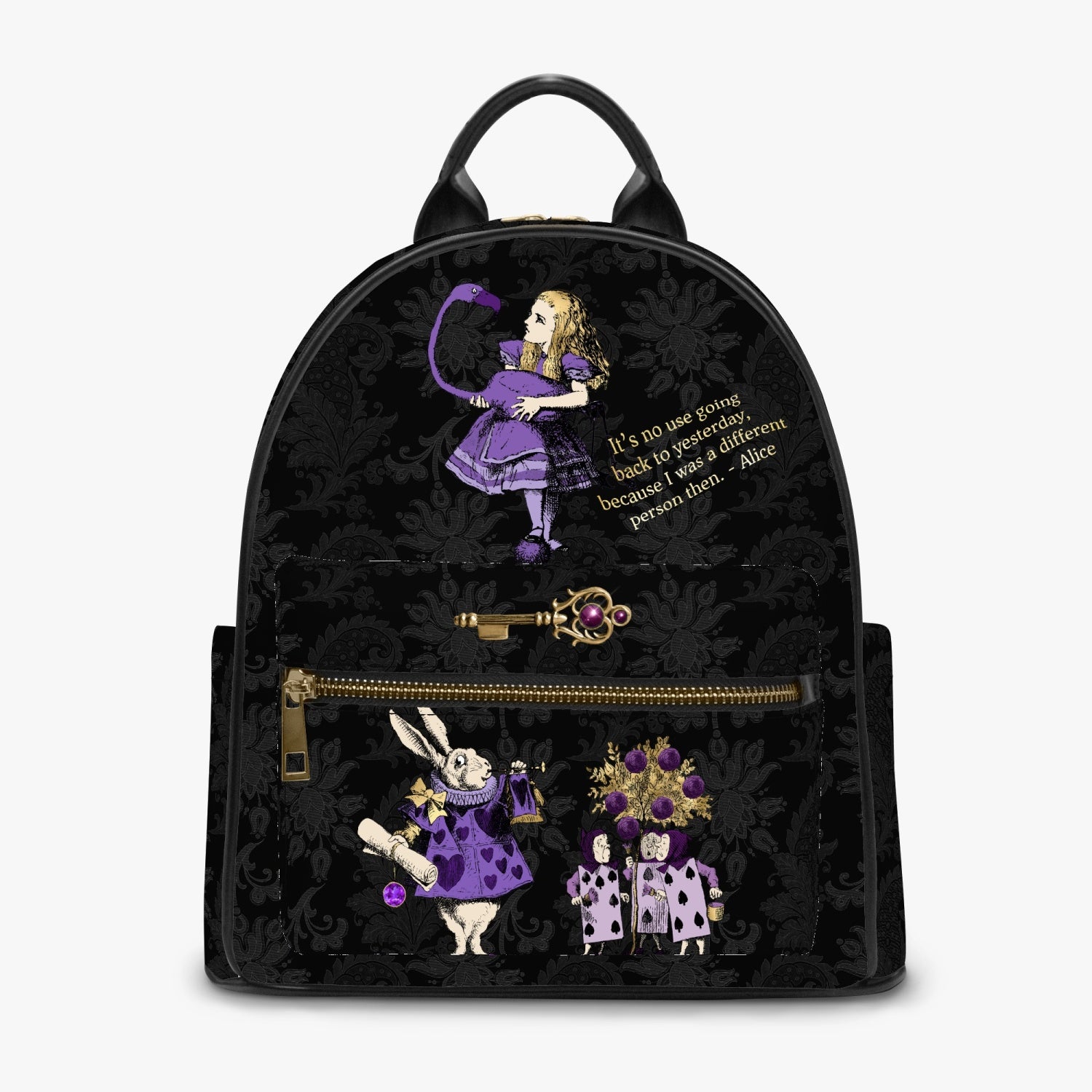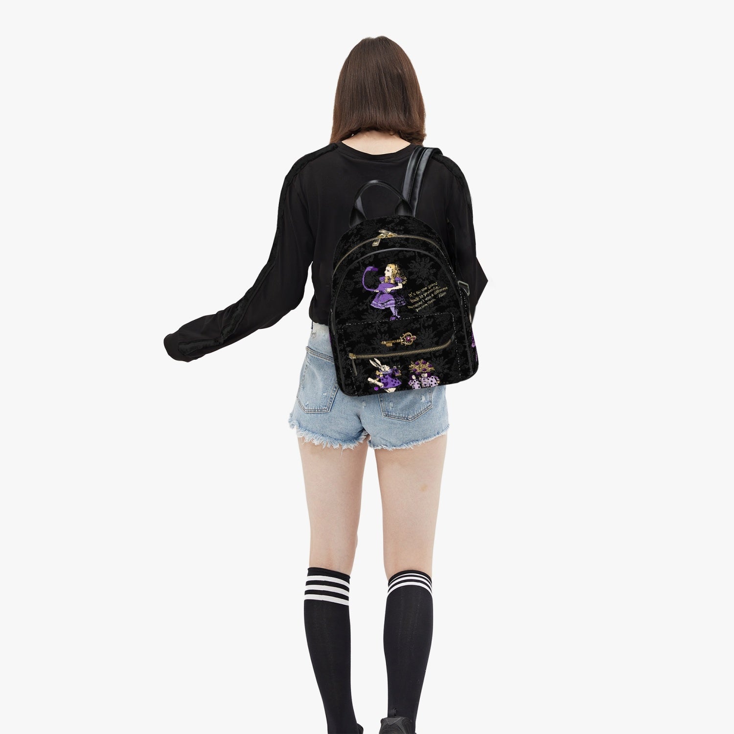 Alice in Wonderland Purple Small Backpack - Cute Alice Purple and Black Bag (JPBACKA)