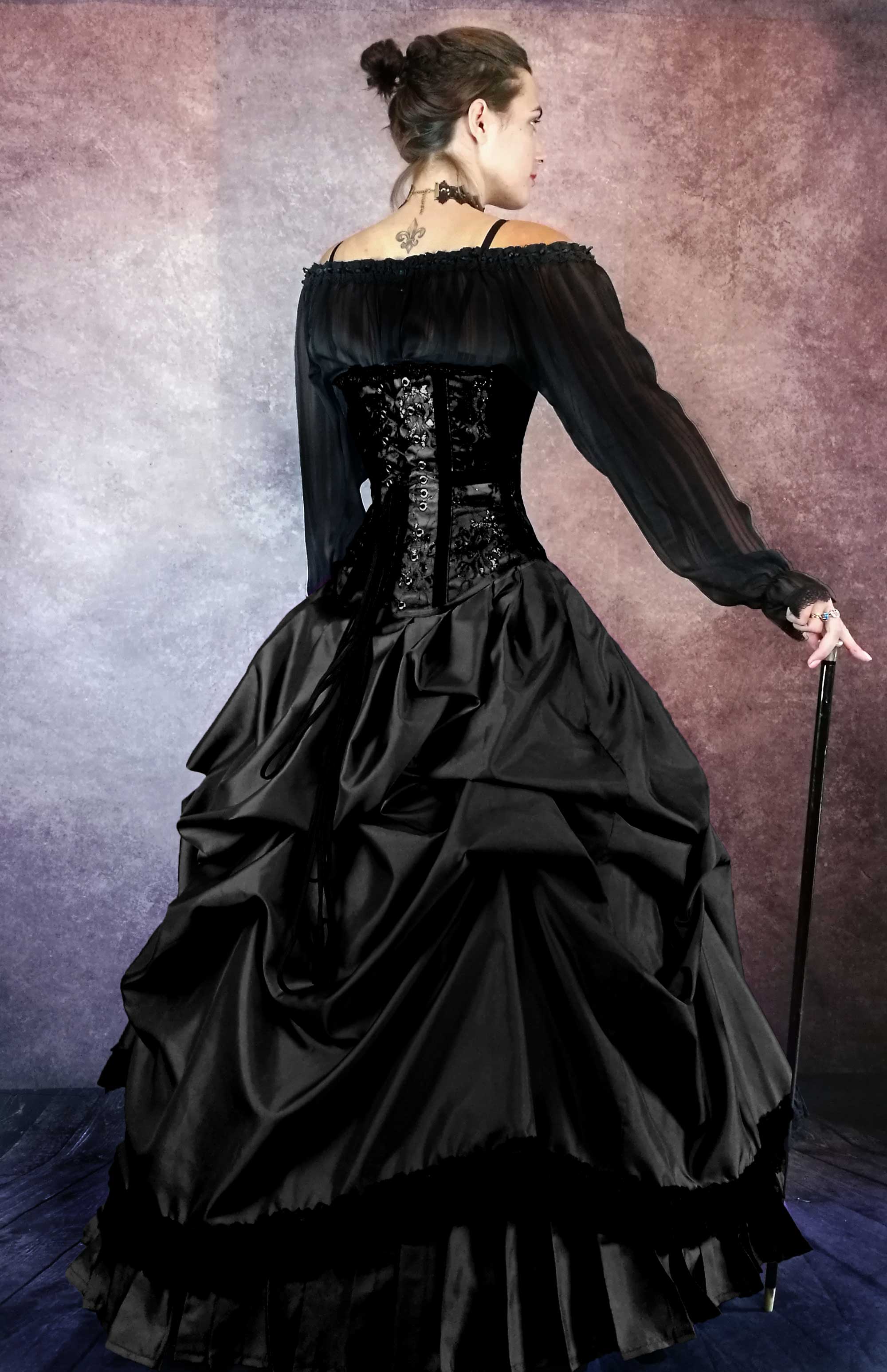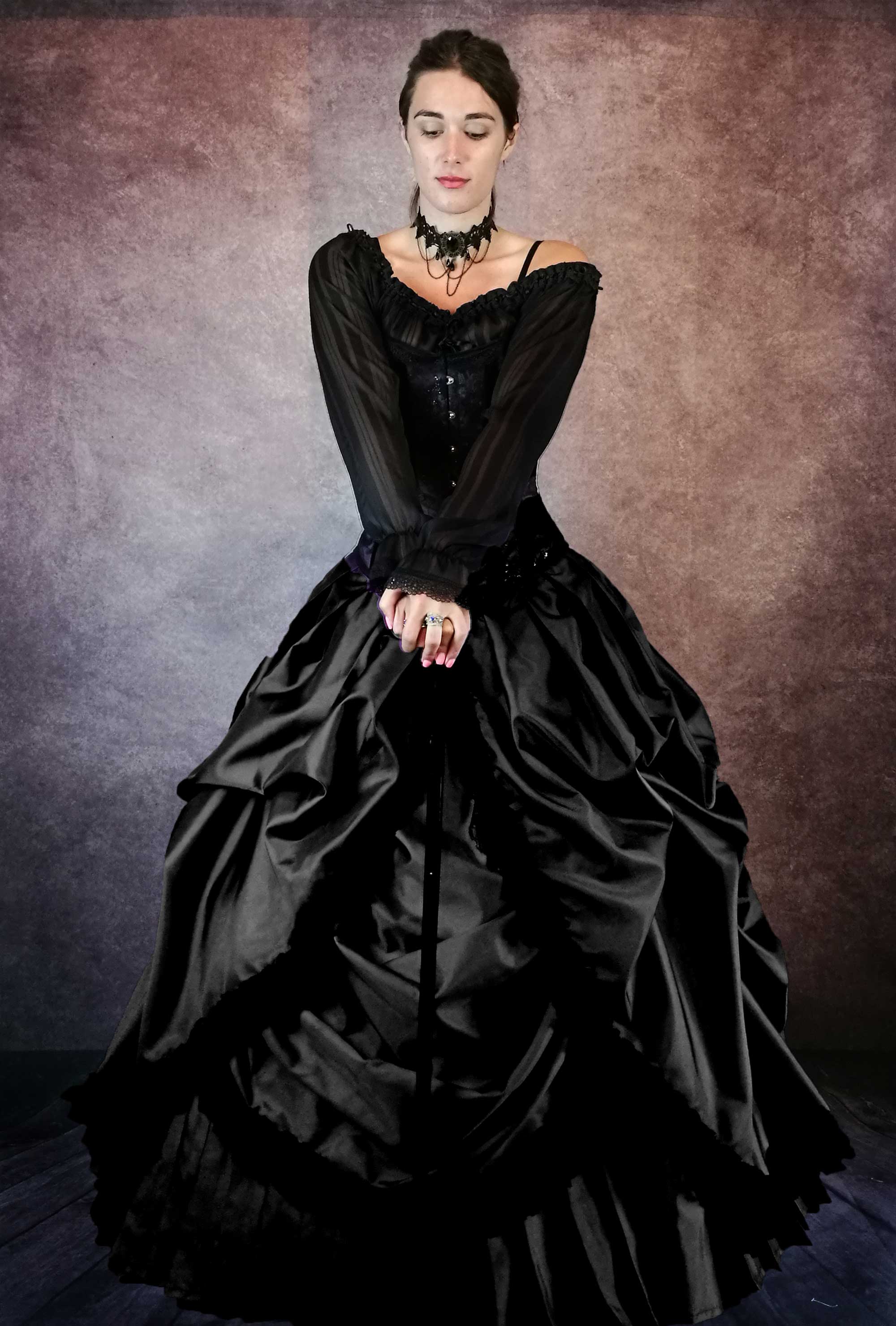 A truly elegant gown that is a pleasure to wear. The details are beautiful, and it feels like you are in the Victorian times when you wear it. Lovely as a full ensemble with a blouse, or with the bolero. Very versatile for a different look. Another gorgeous outfit from Annette.