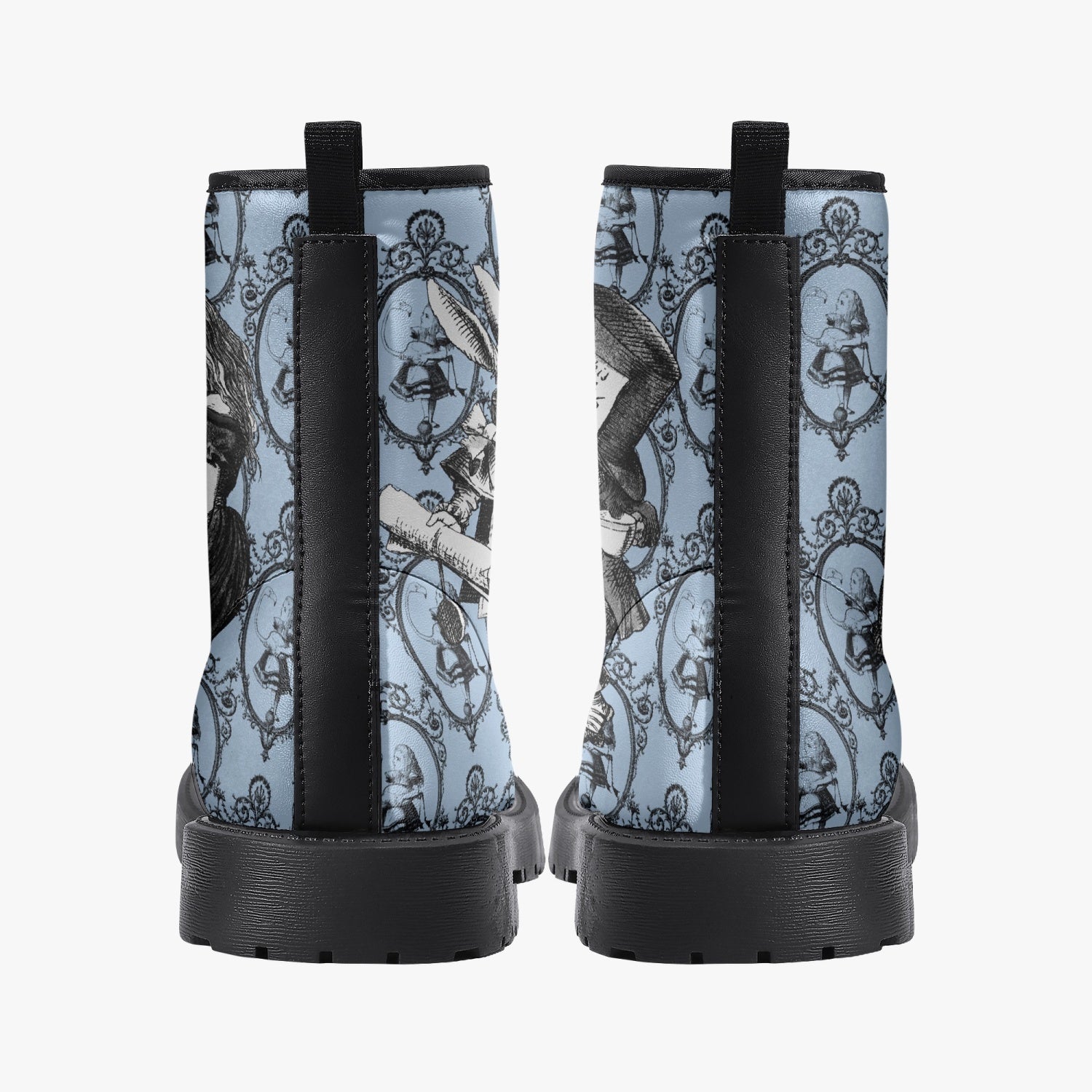 Blue Alice in Wonderland Mad Hatter Tea Party Combat Boots (JPREGMHT2)
