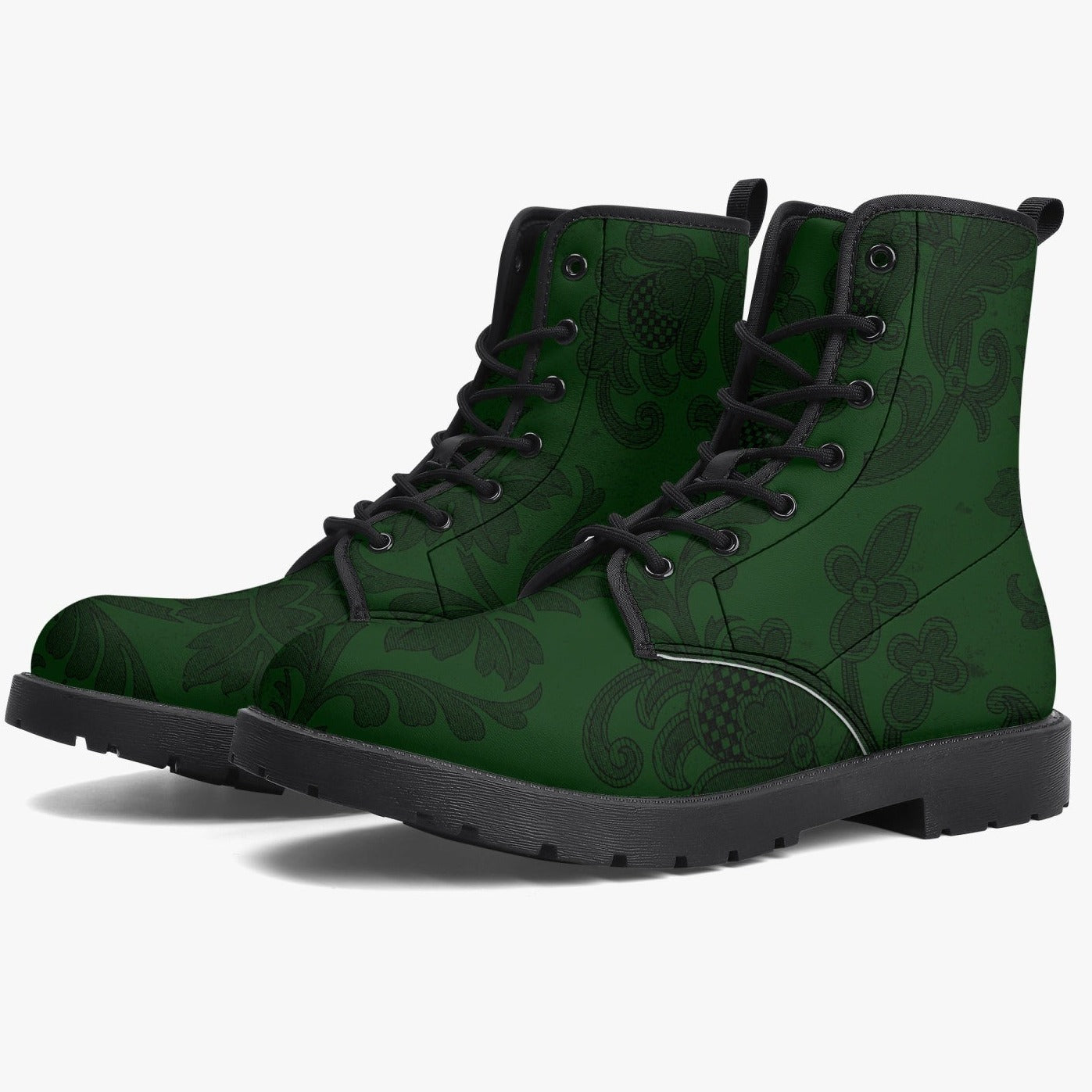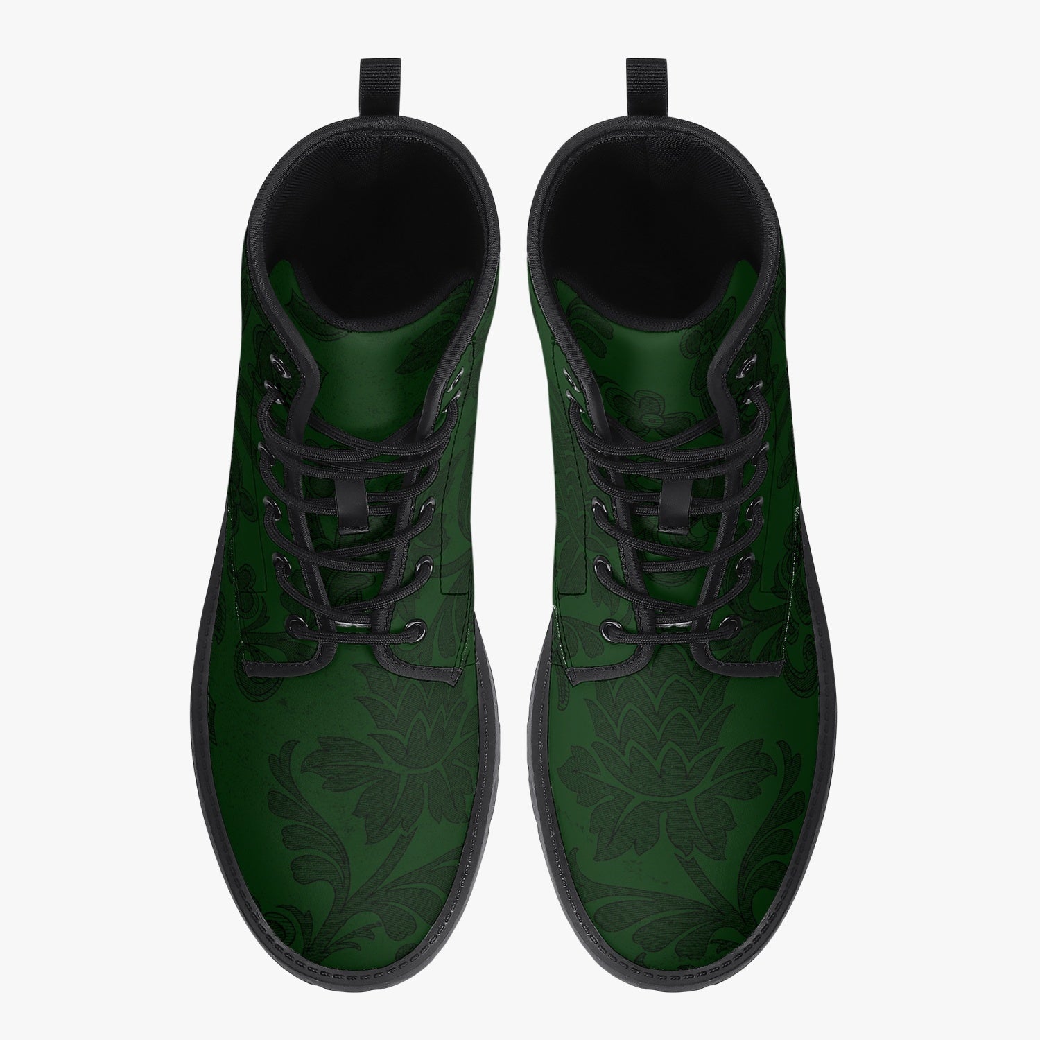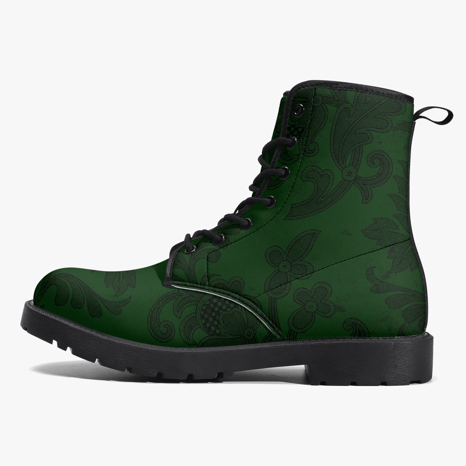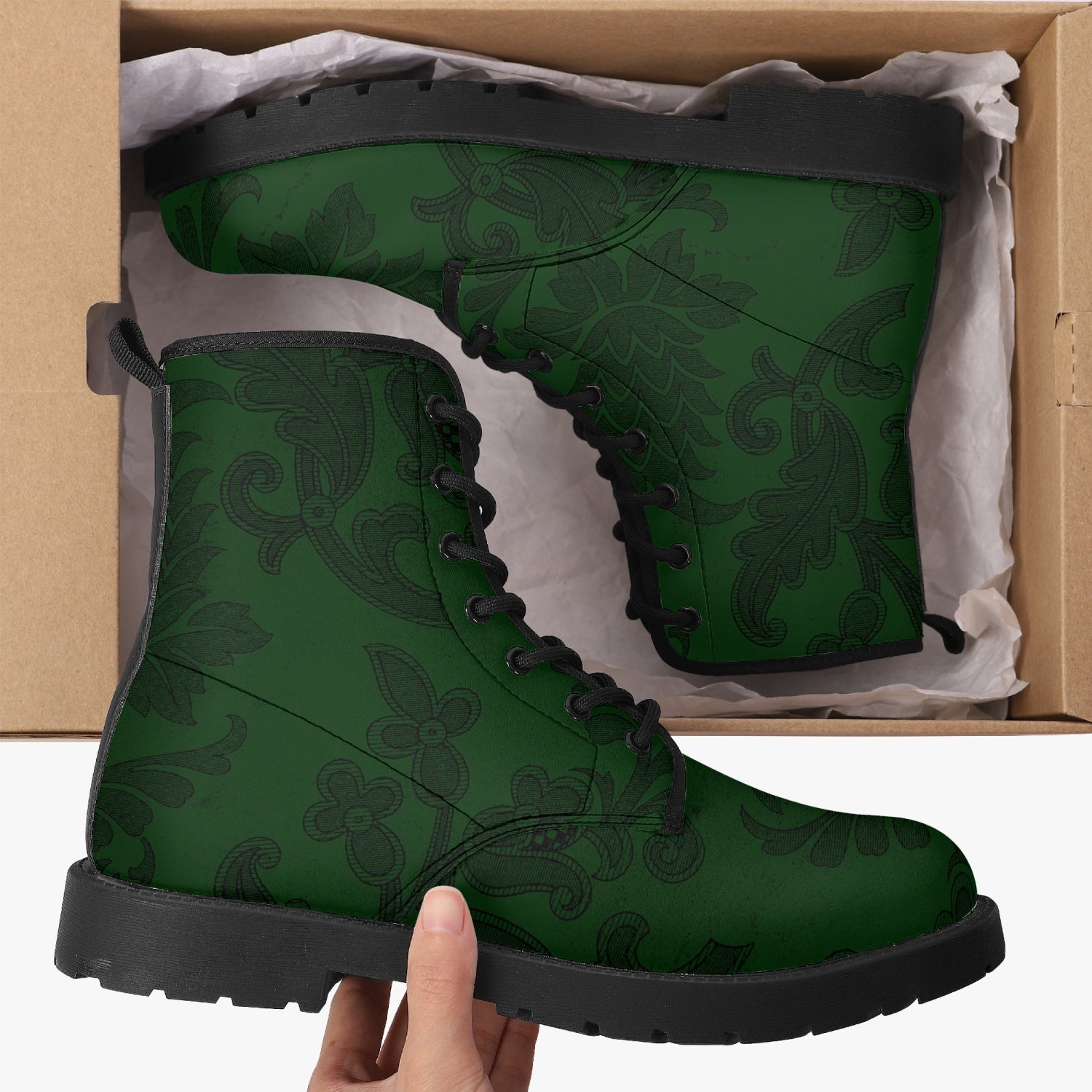Bottle Green Damask combat boots. These boots are perfect for anyone looking to add a touch of...