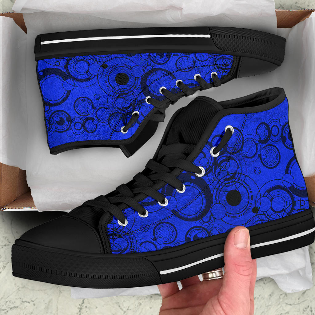 Fun High Top Sneakers custom printed with Gallifreyan Language in vivid Dr Who blue.