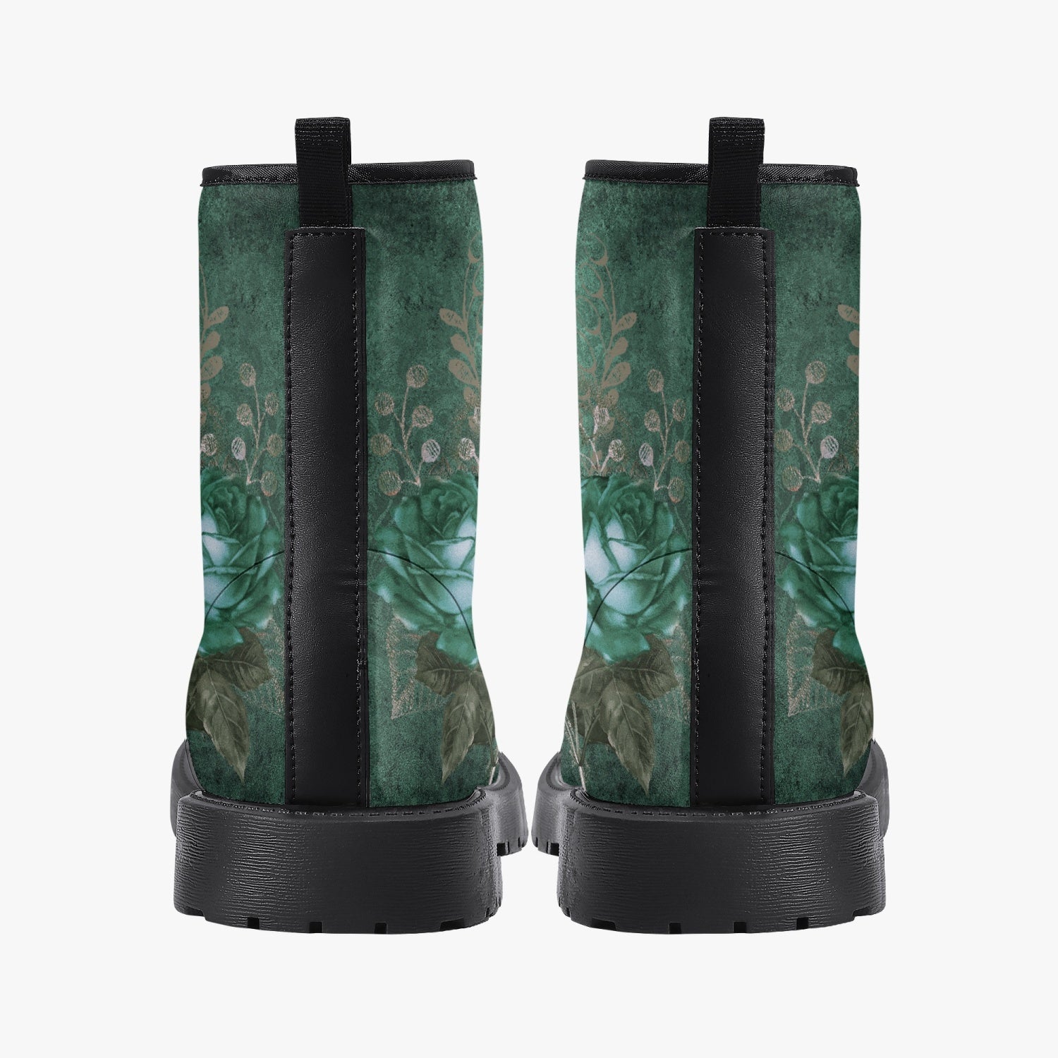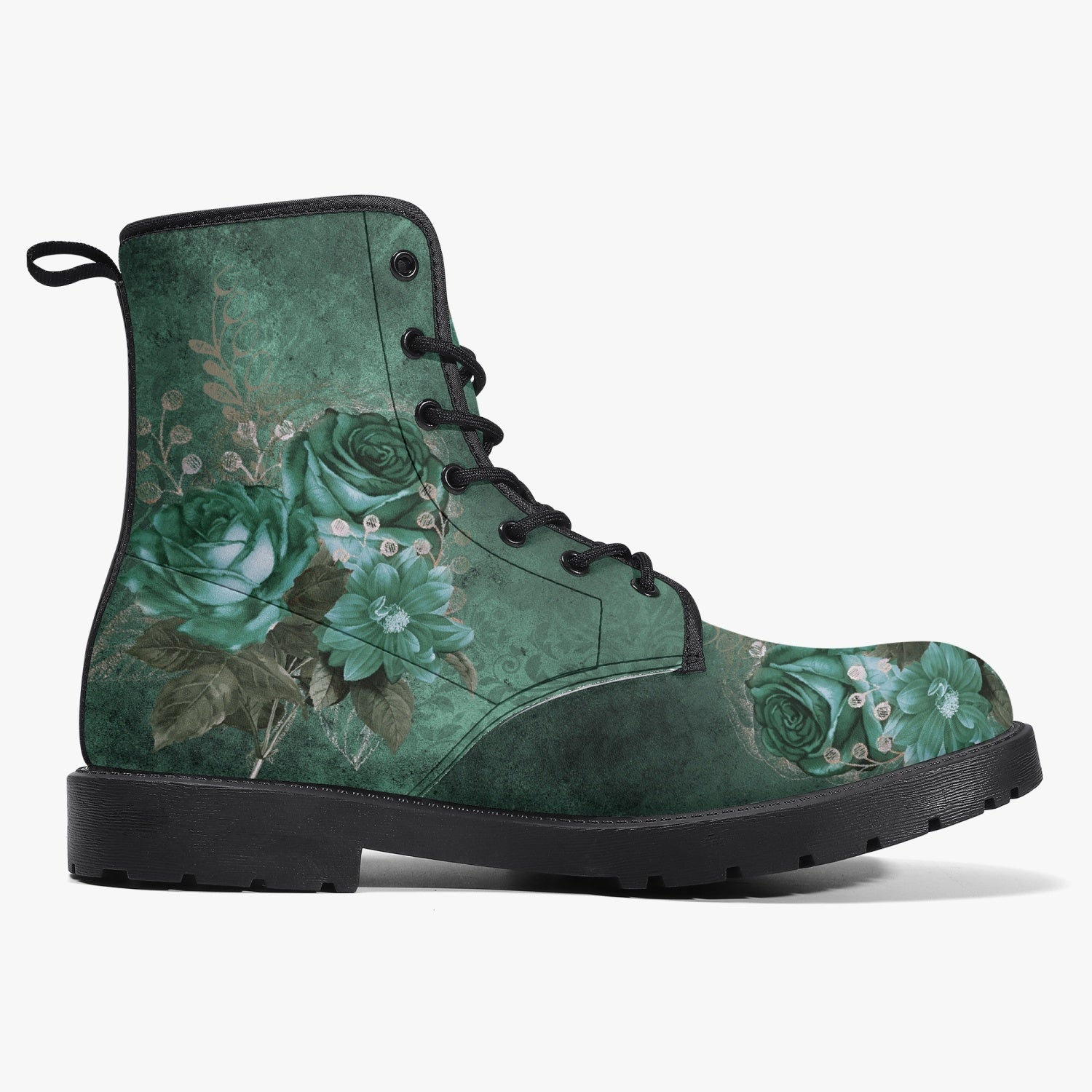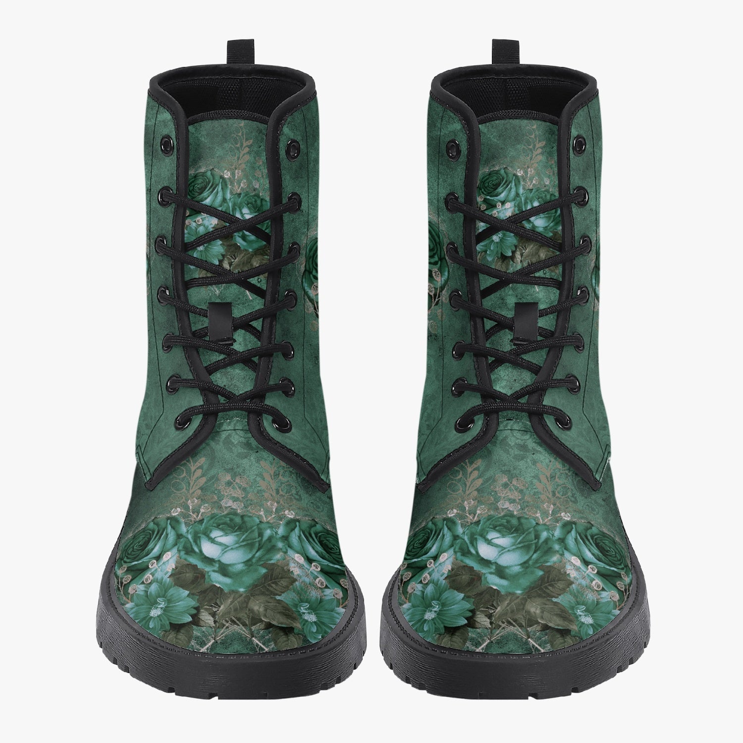 Gothic Green Roses Floral Lace Up Combat Boots - Dark Victorian Lace up Boots (JPREG72)