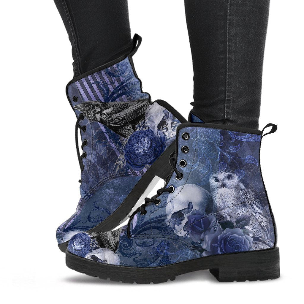 A Gothic Skull, Raven and Owl design printed on a super comfy combat boots. These make a...