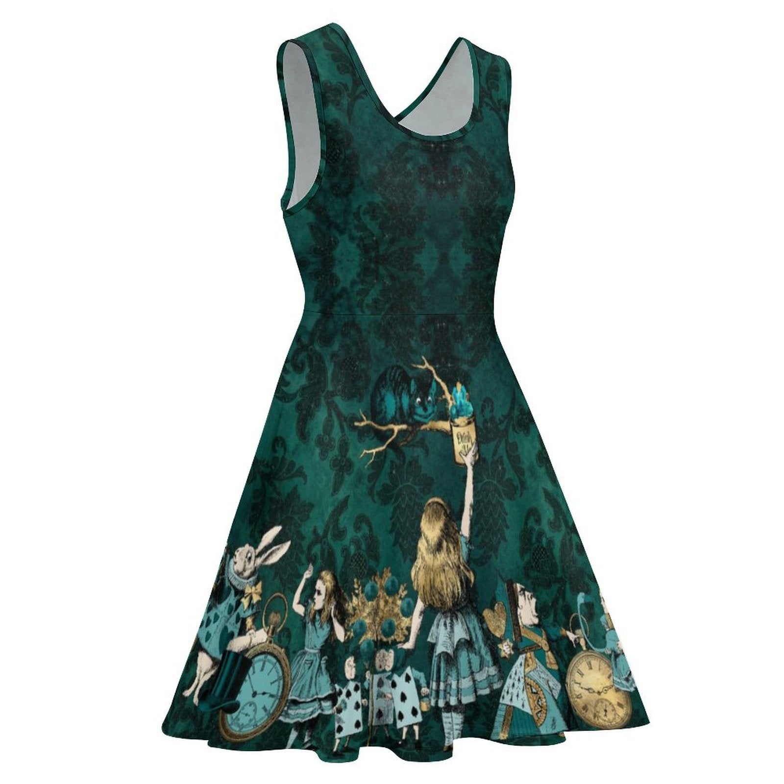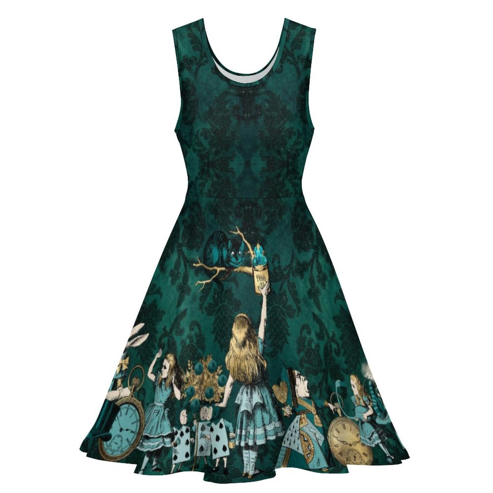 Green Alice in Wonderland Fun Party Dress TFABGA - Plus size friendly