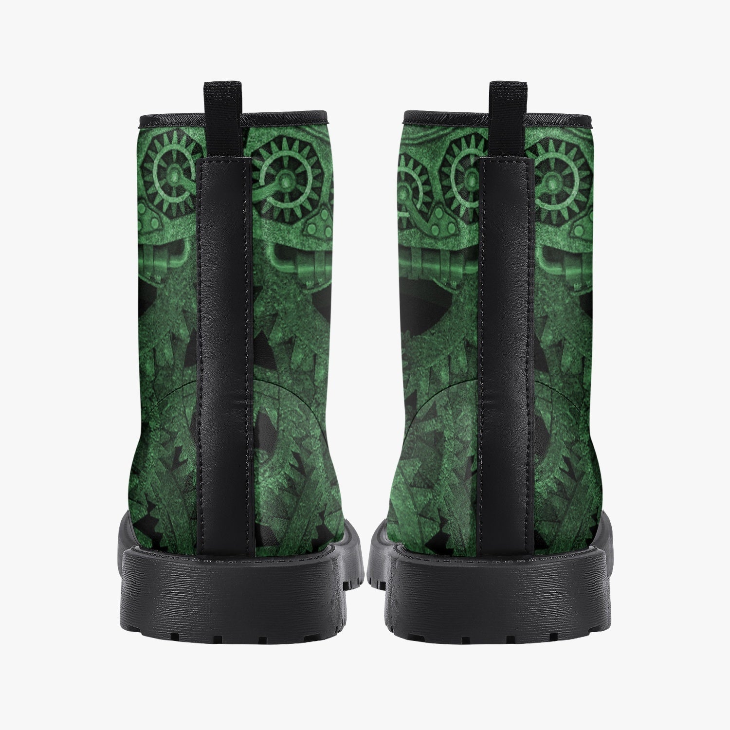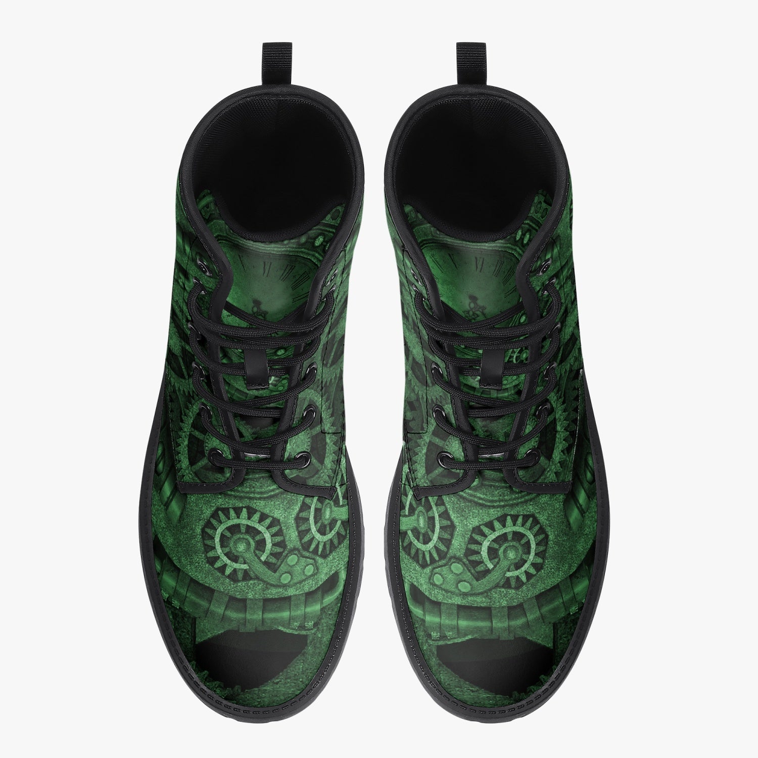 Steampunk Clockwork Gears Green Combat Boots - Vegan Leather Gothic Steampunk Boots - Dark Green Steampunk Boots (JPREG86)