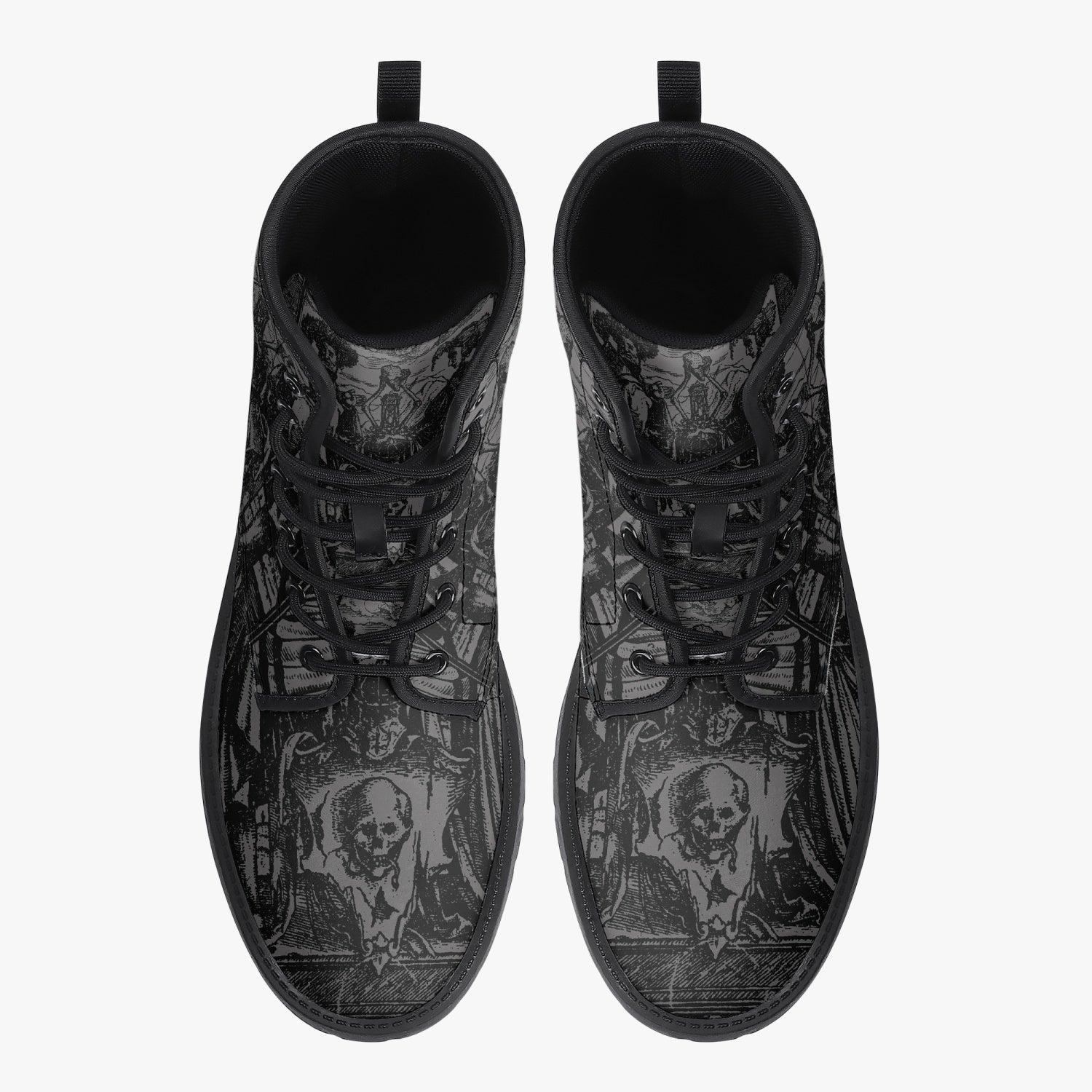 The awesome woodcuts representing the many faces of death by Hans Holbein, custom printed on super comfy gothic combat boots