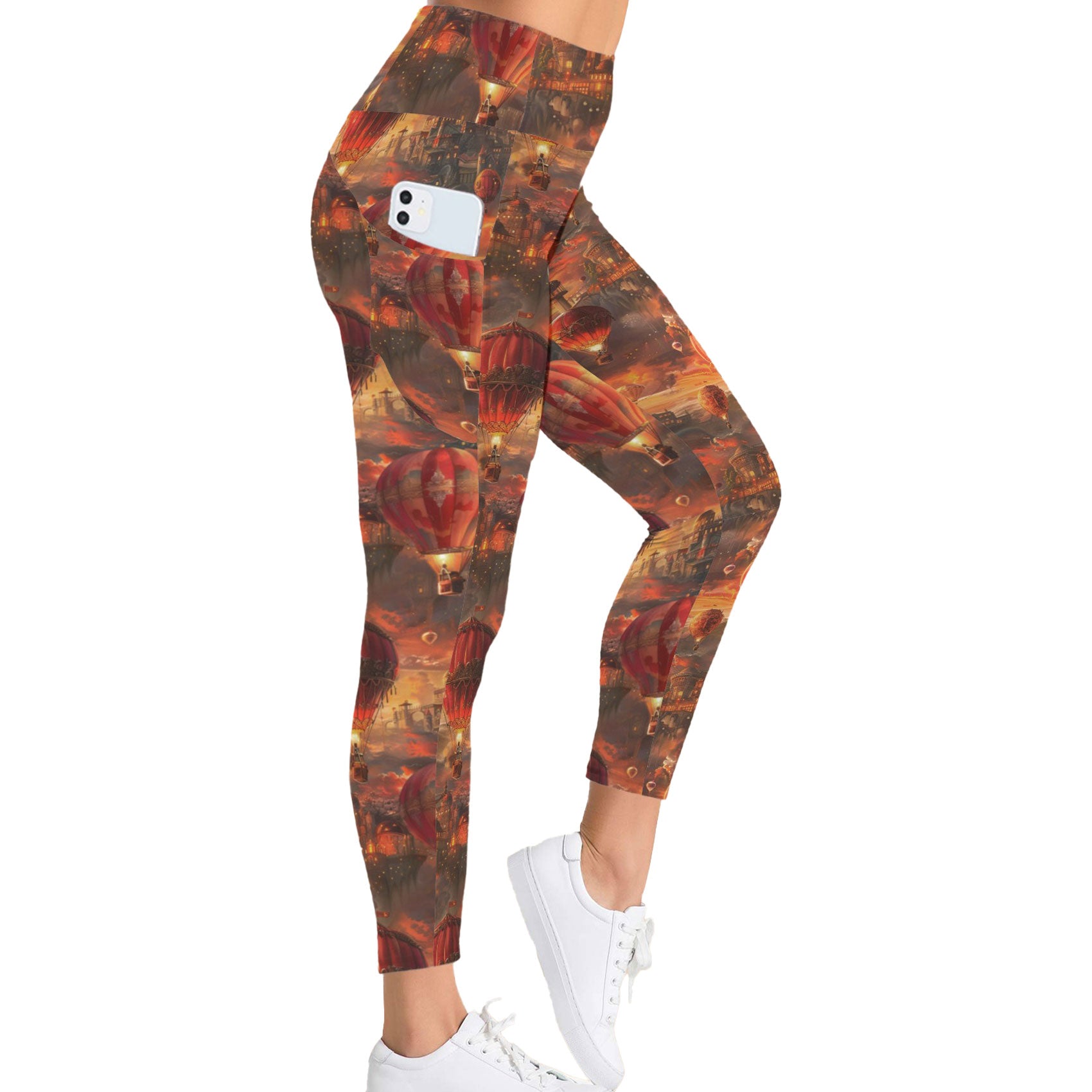 Steampunk Hot Air Balloon Yoga Leggings - High Waist, 3/4 Length with Pockets