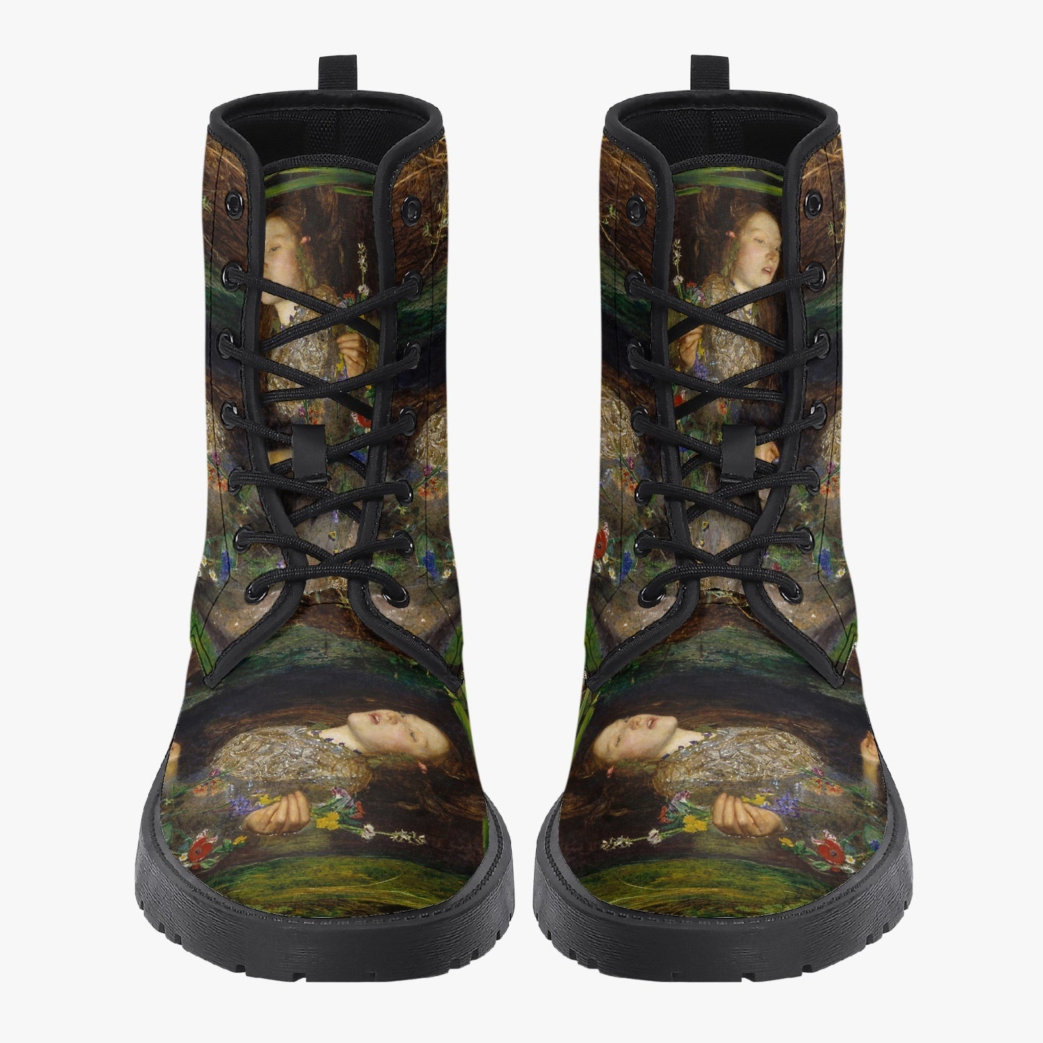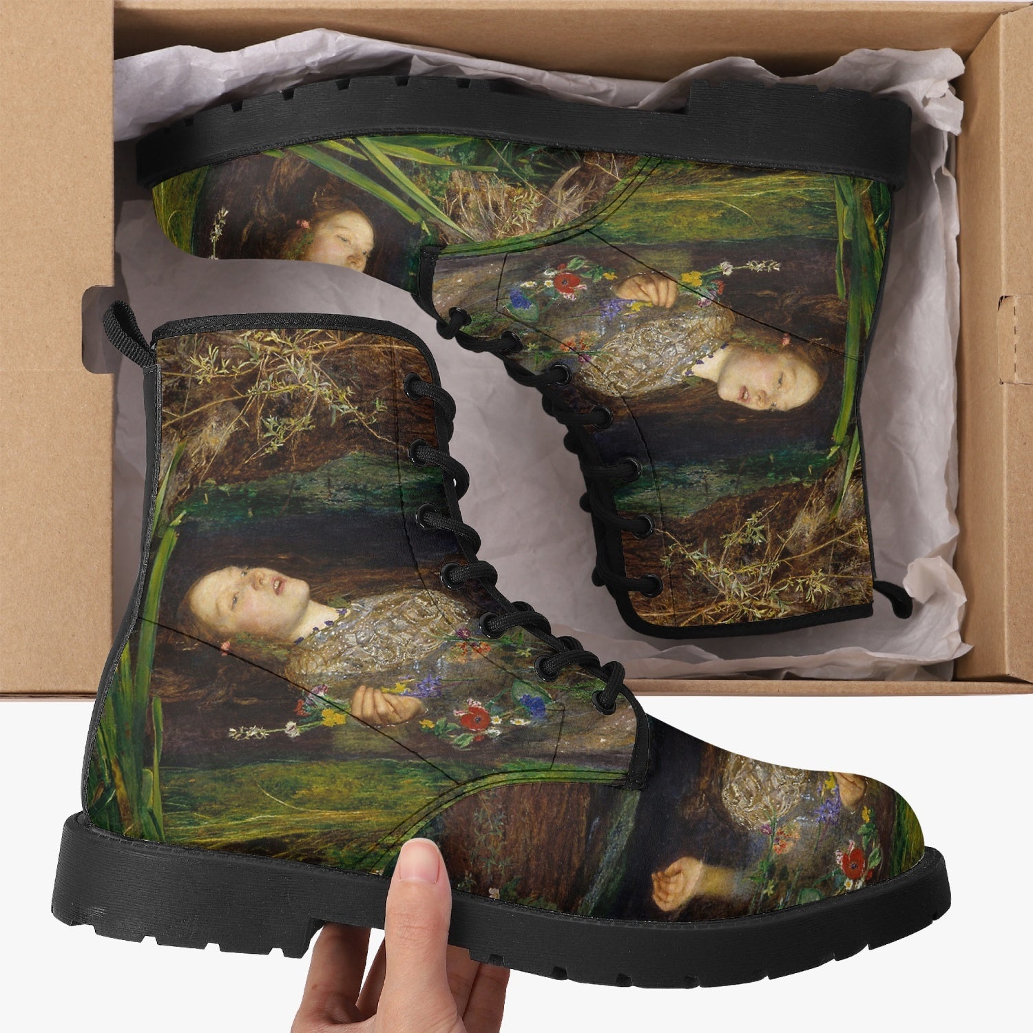 John Everett Millais - Ophelia - Lace Up Combat Boots - Pre Rapaelite Art boots (JPREG90)