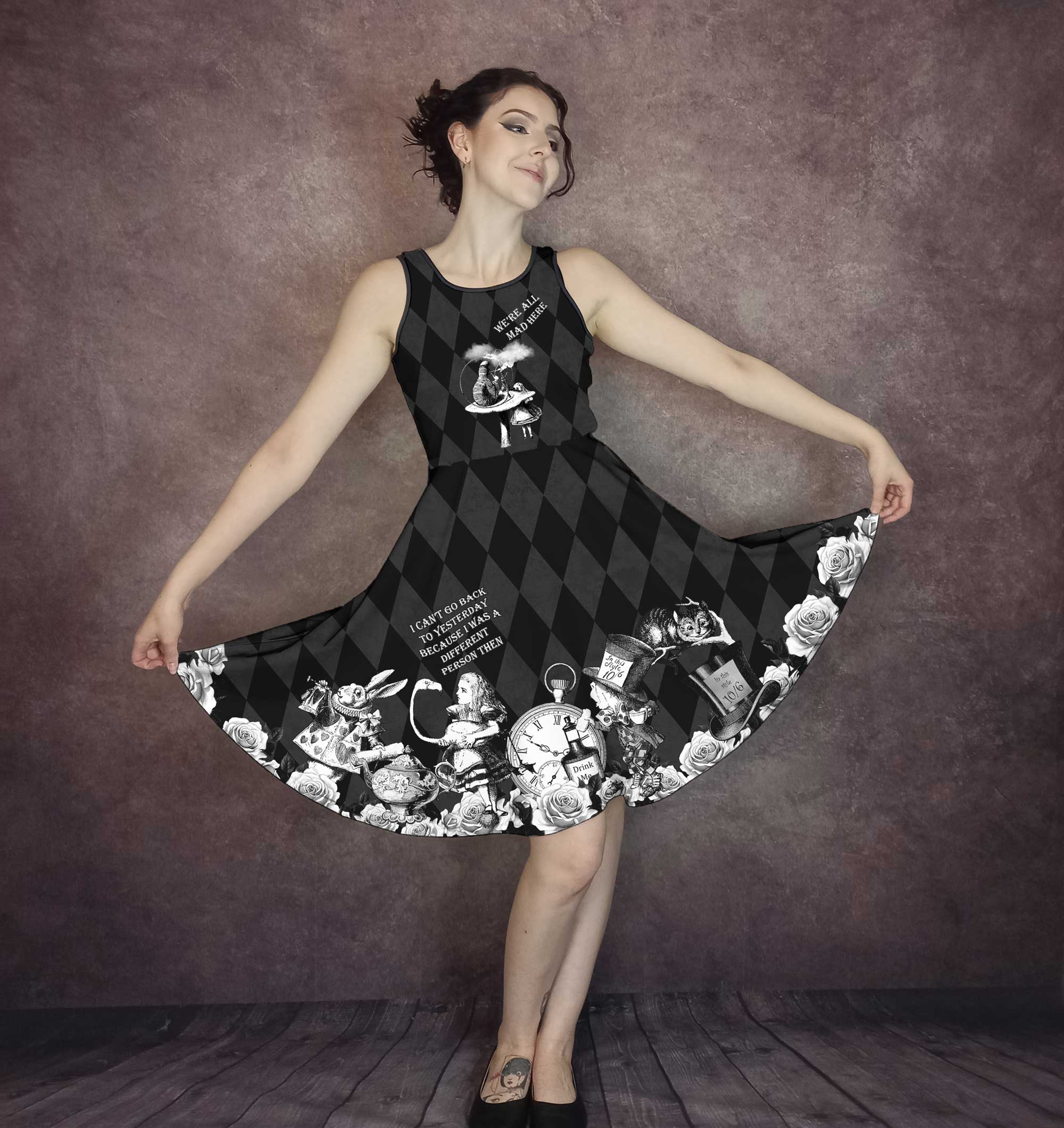 The Mad Hatter - We're All Mad Here Black and White Party Dress - Great for plus sizes.
