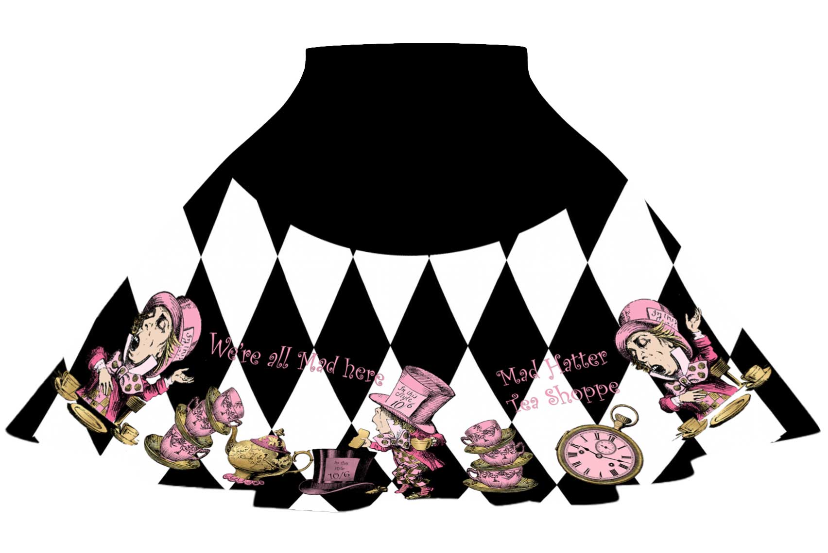 The lovely Mad Hatter surrounded by teapots and teacups custom printed on a super comfortable skater skirt.