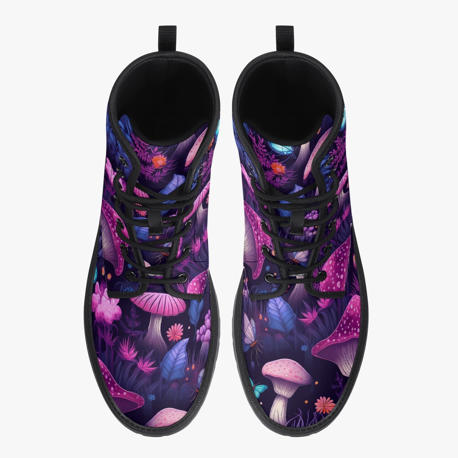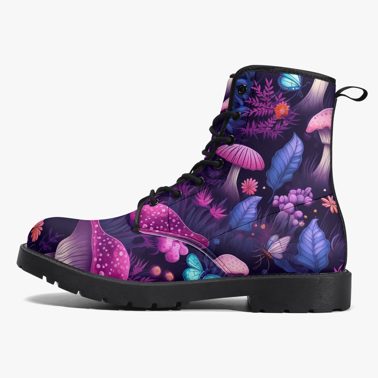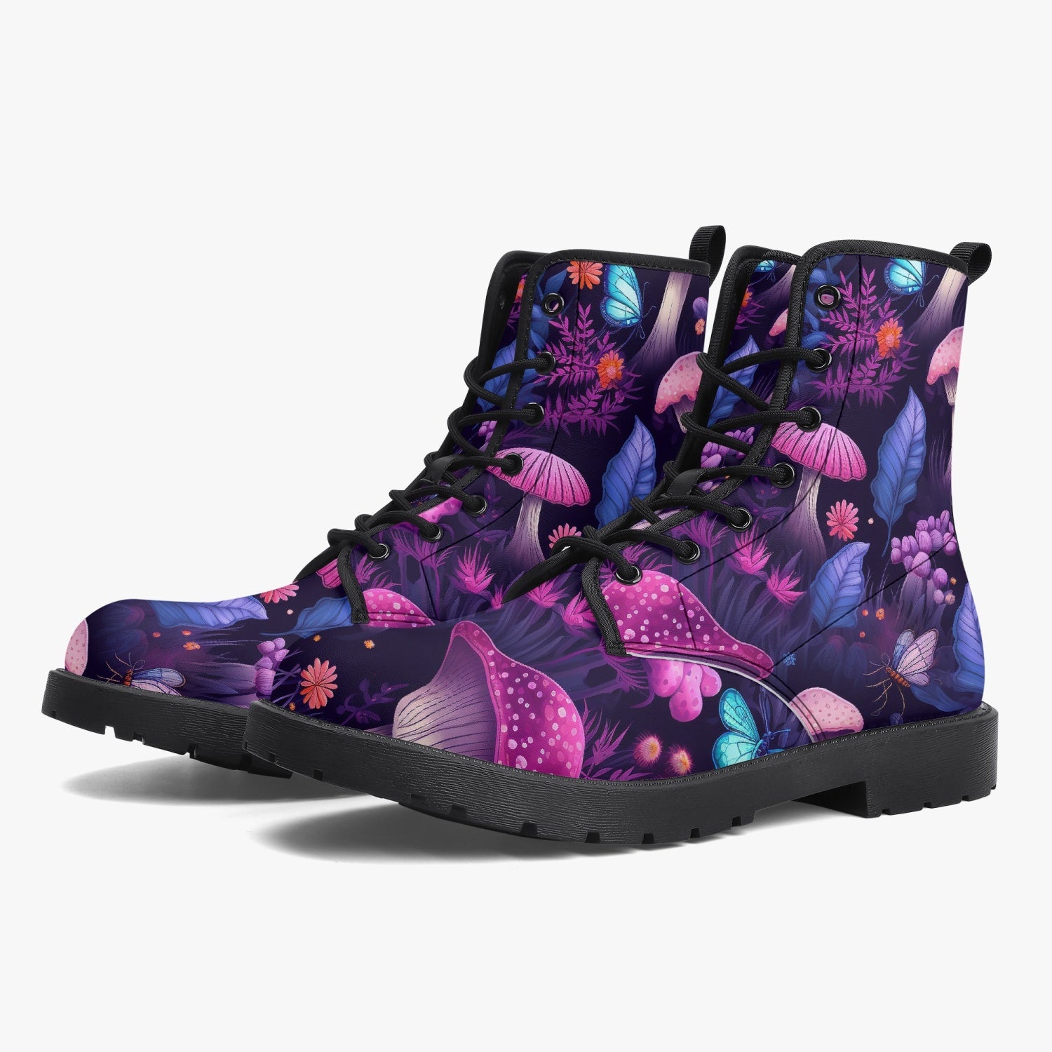 Mushroomcore Pink and Purple Toadstool Combat Boots (JPMUSHPP)