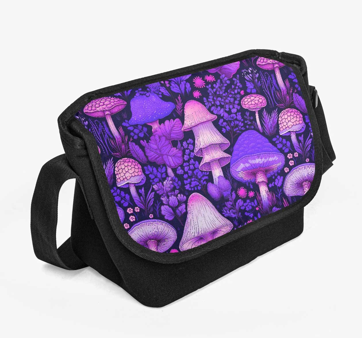 Mushroomcore Purple Messenger Bag - Pink and Purple Forestcore School Bag (JPMUSHMB)