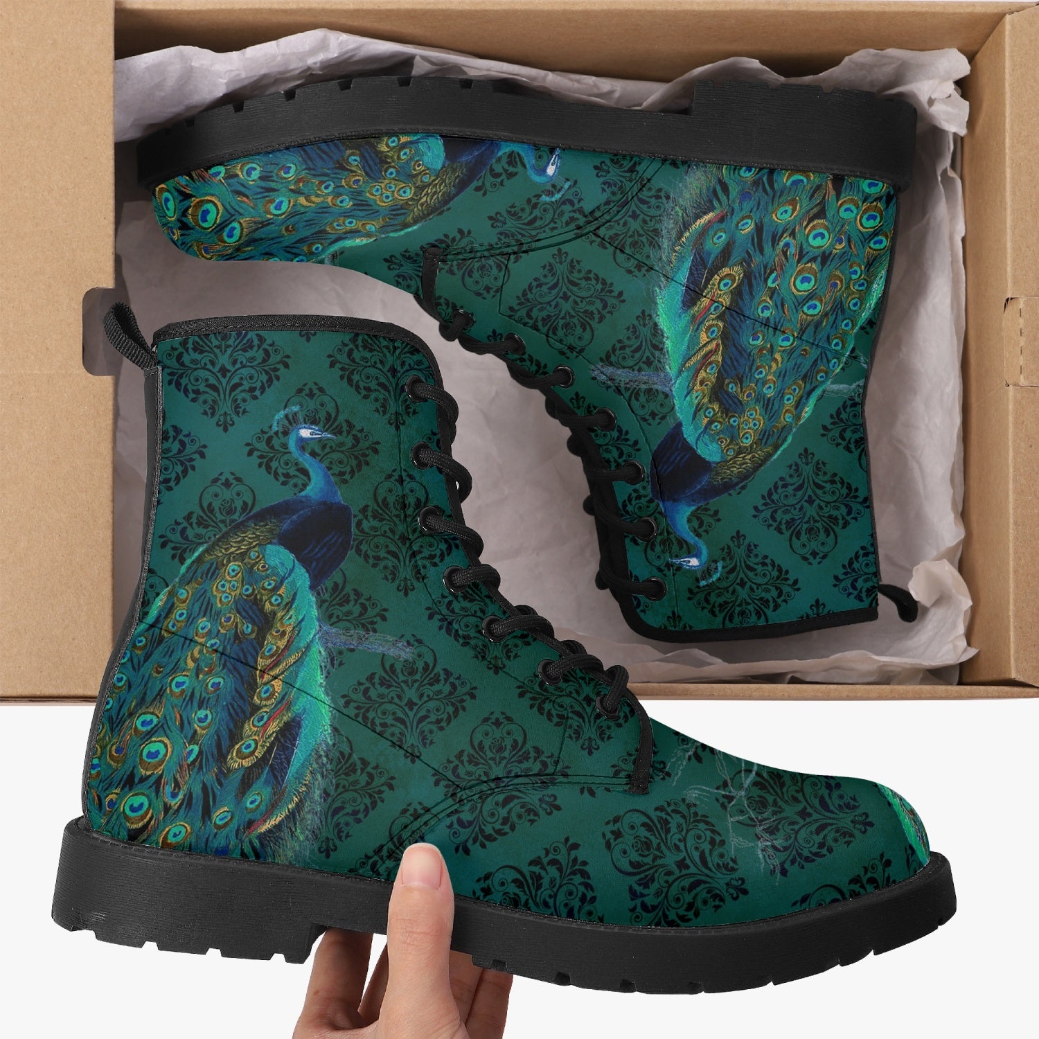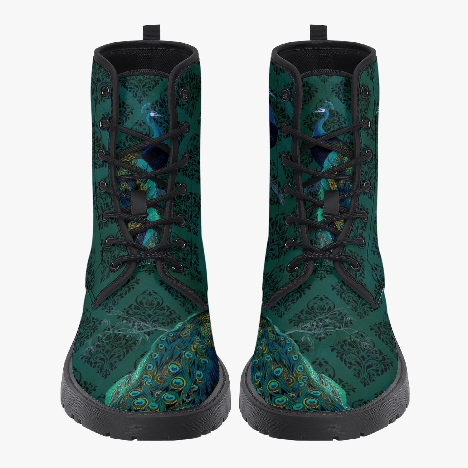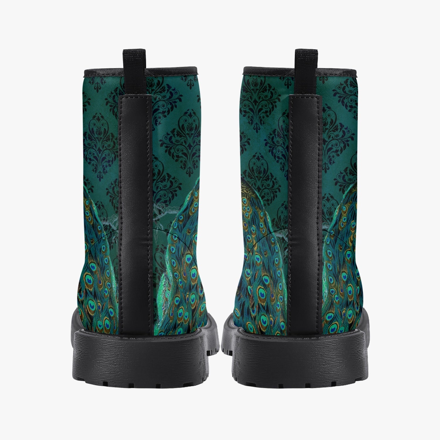 Peacock Boots - Blue, green Vegan Leather Combat Boots (JPREG53)