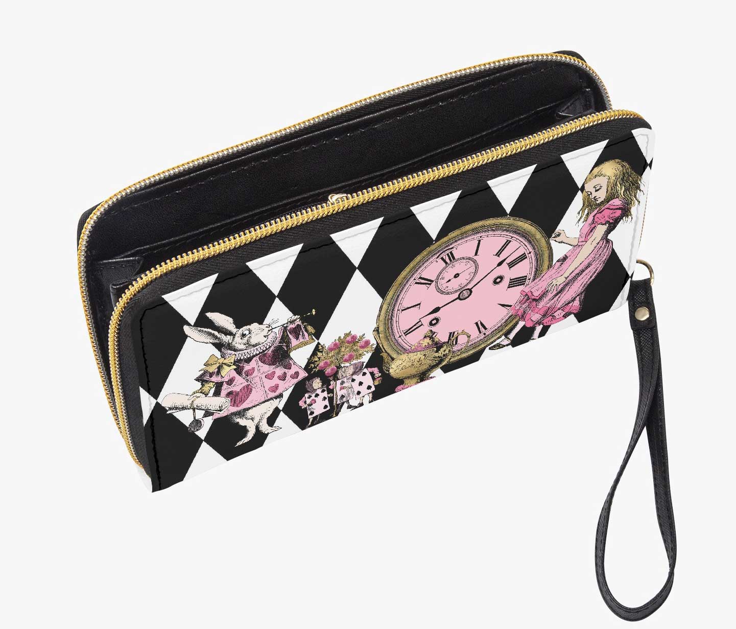 Off to a Mad Hatter Tea Party and need that perfect accessory? Then you've found it with the Alice in Wonderland custom printed zipper purse. This delightful wallet features Alice tumbling down the Rabbit Hole with other characters from the Lewis Carroll classic tale.