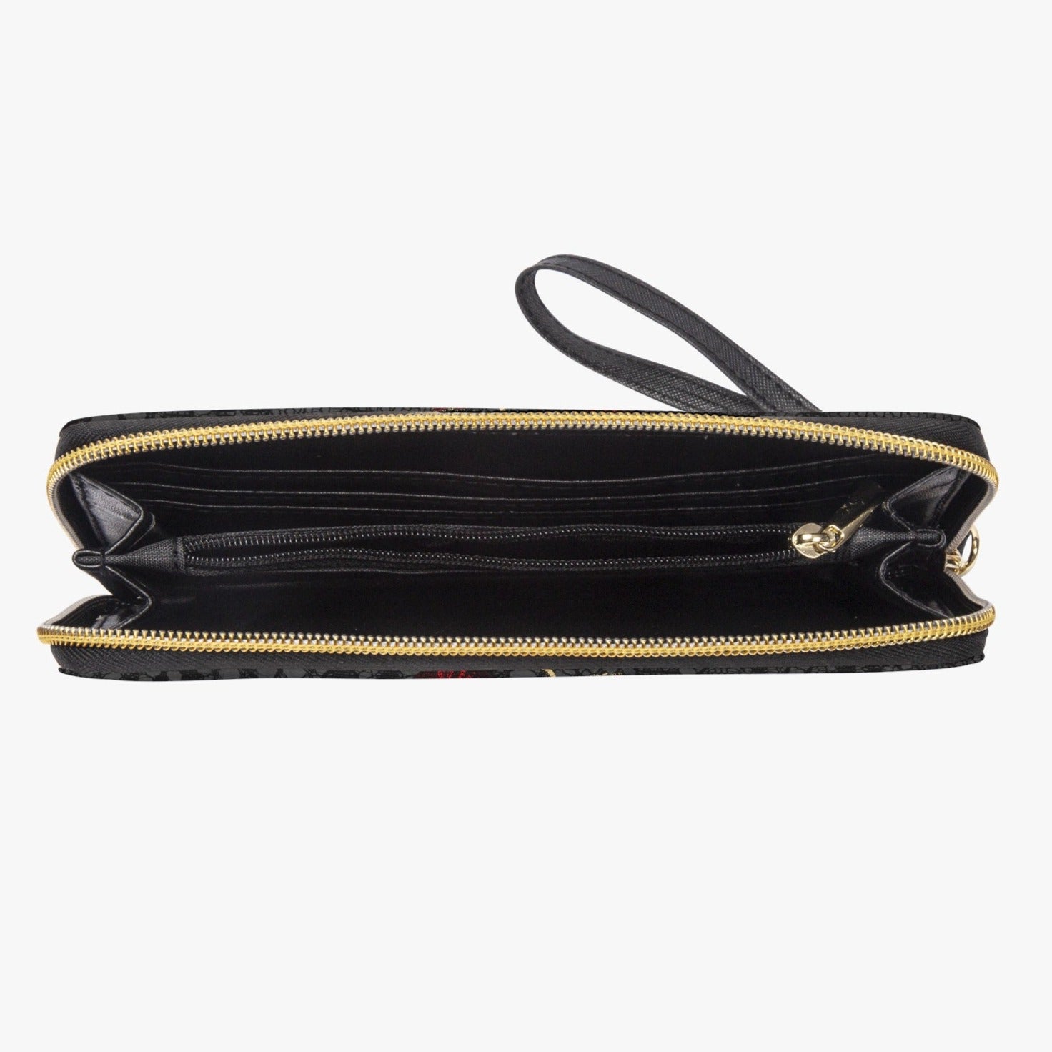 This unique design is printed on a synthetic hard wearing vinyl zipper purse