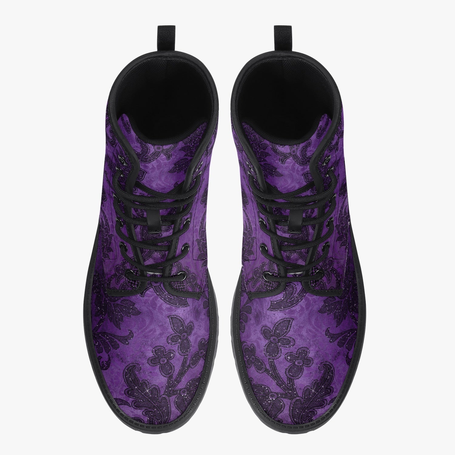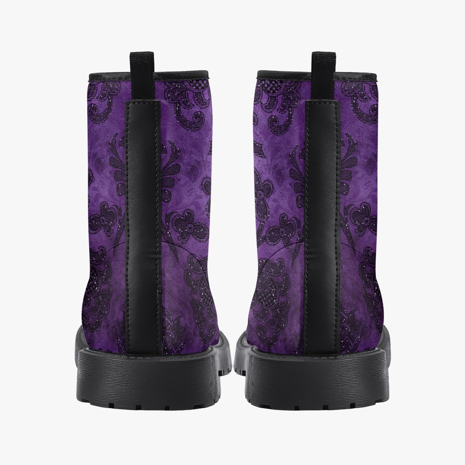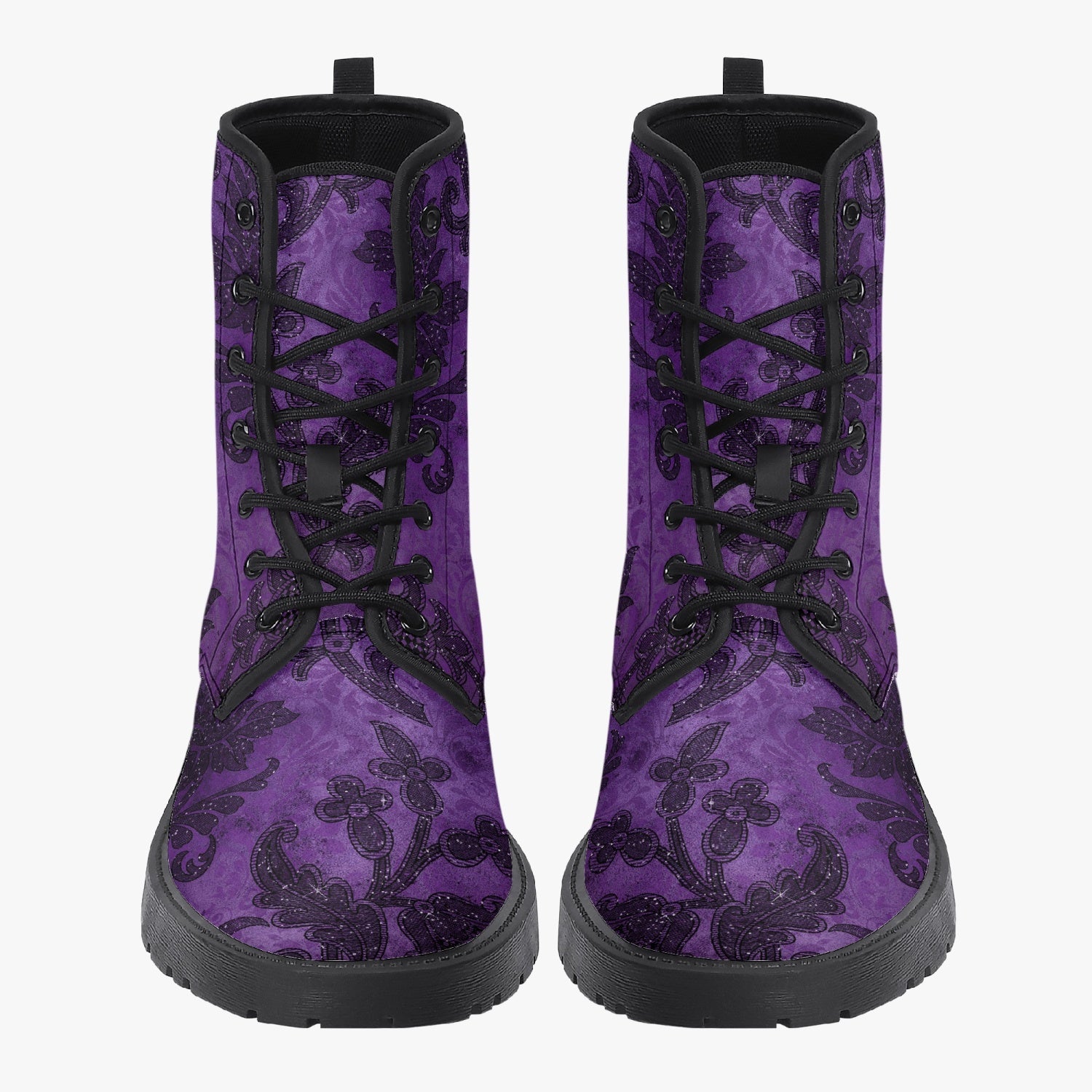 Purple Gothic Damask Pattern Combat Boots - Purple boots (JPREG40)