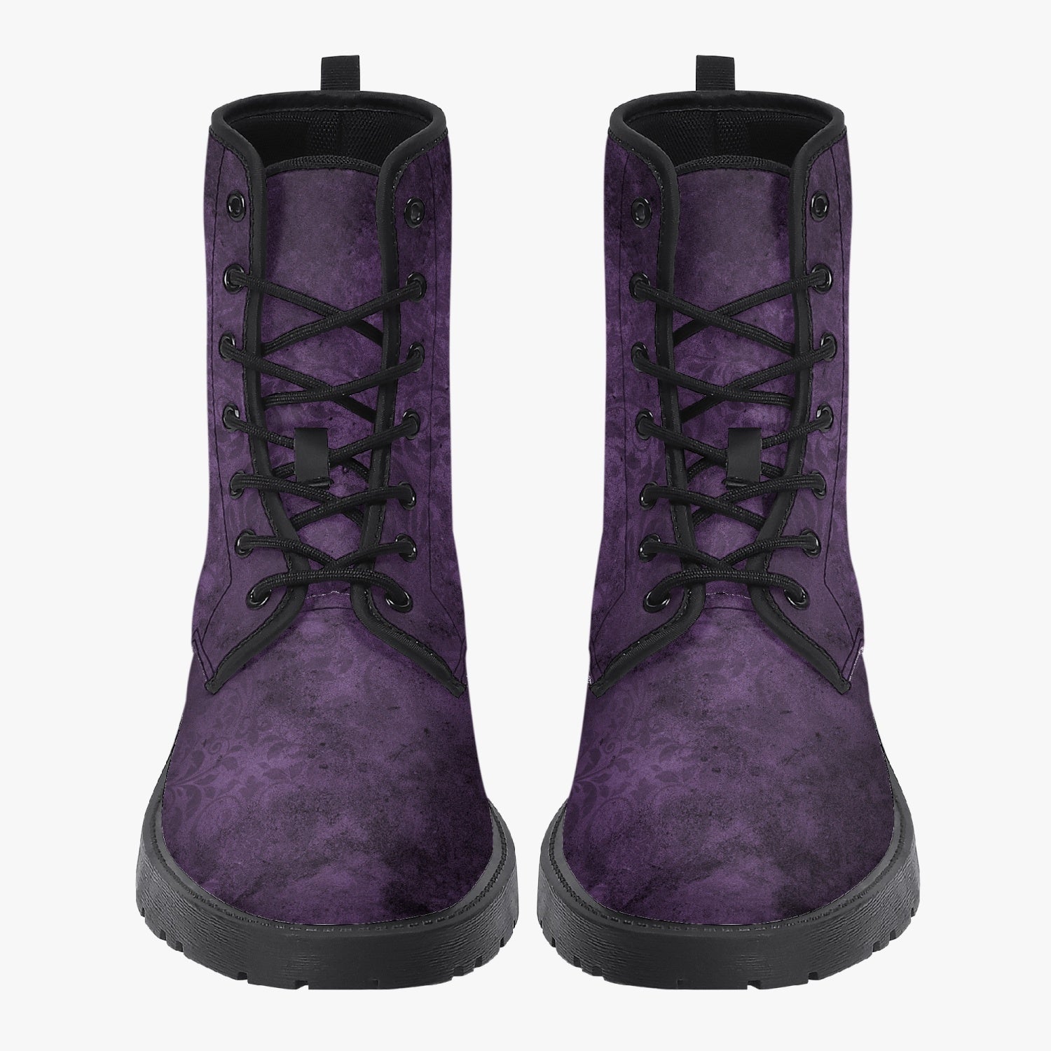 Purple gothic grunge print custom printed on super comfy Combat boots.