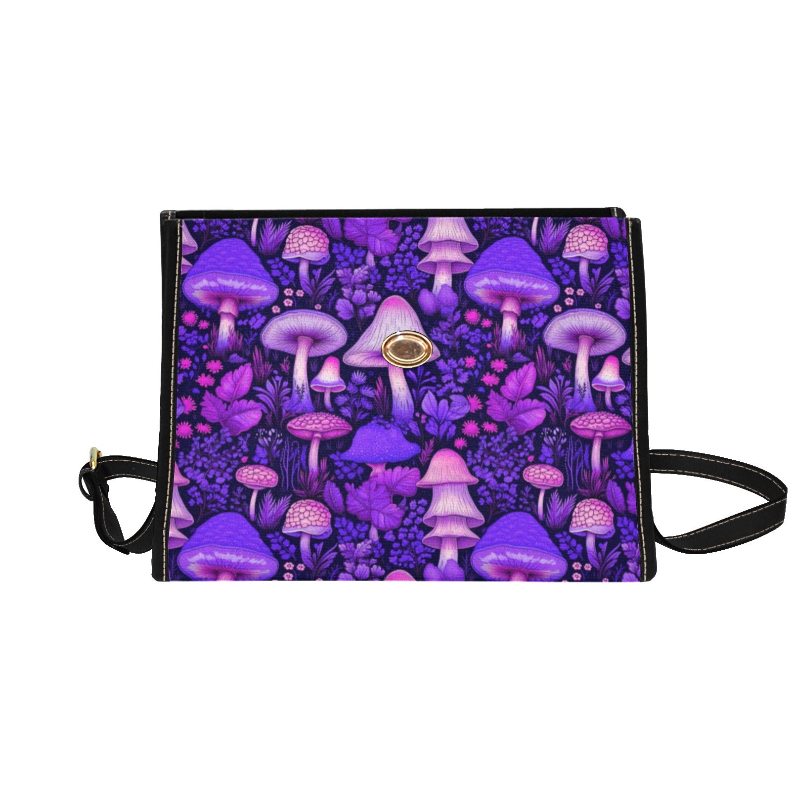 Mushroomcore Shoulder Satchel - Pink and Purple Mushroom Bag (AMUSHSATCH3)