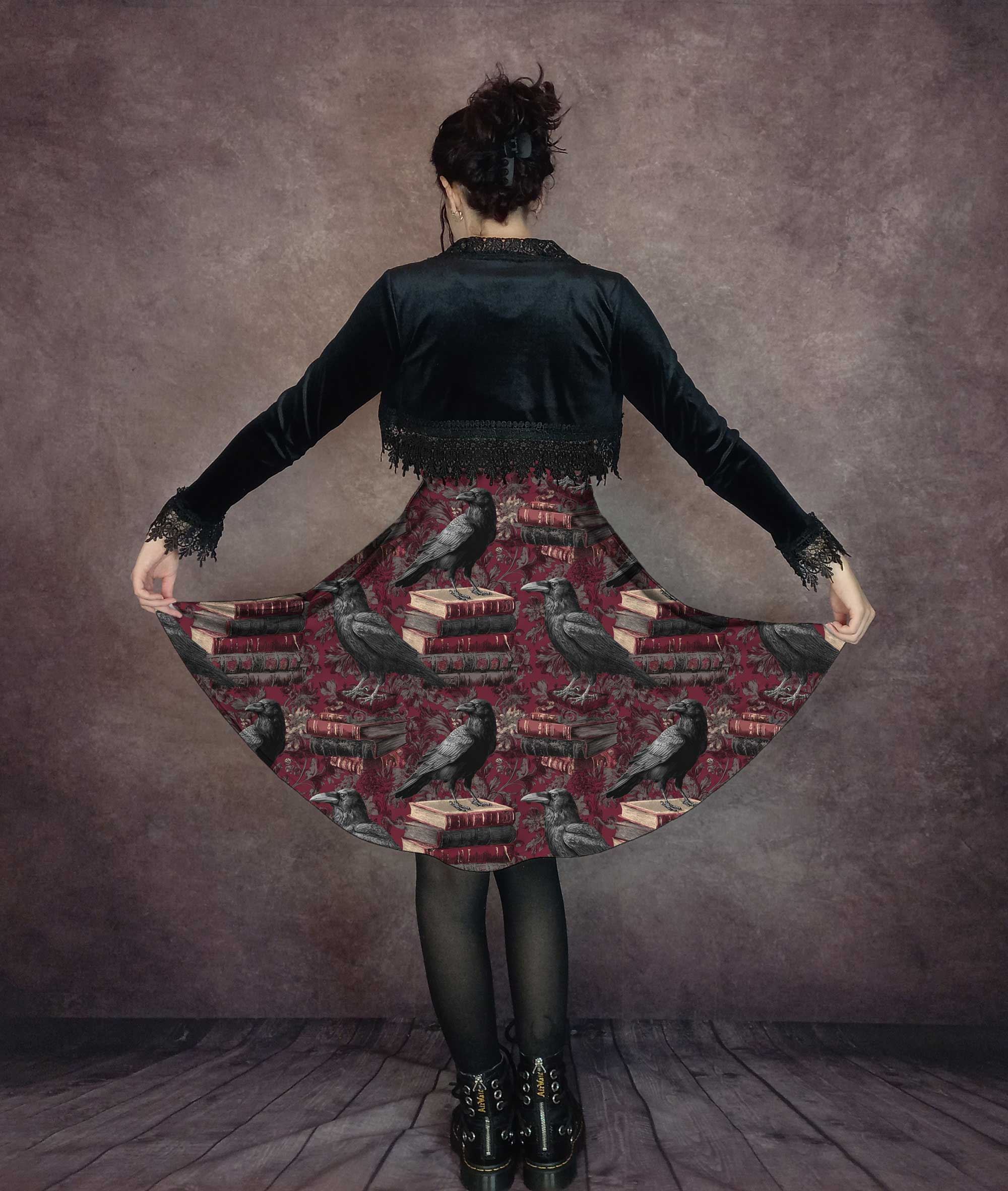For lovers of The Raven, all things Edgar Allan Poe and vintage books.  Meet the Books and Raven Dress, darkly delightful and versatile.