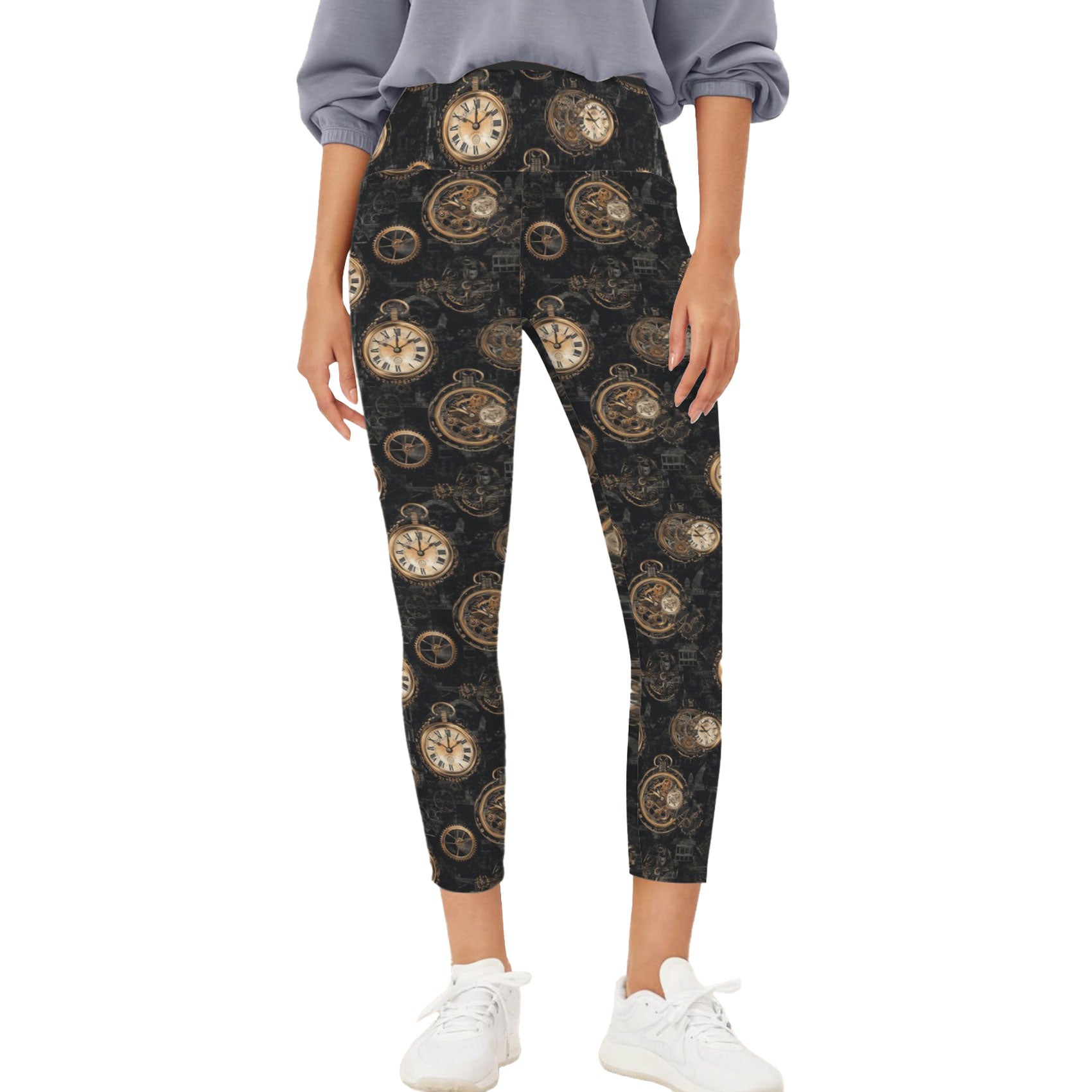 Steampunk Yoga Leggings - High Waist, 3/4 Length with Pockets
