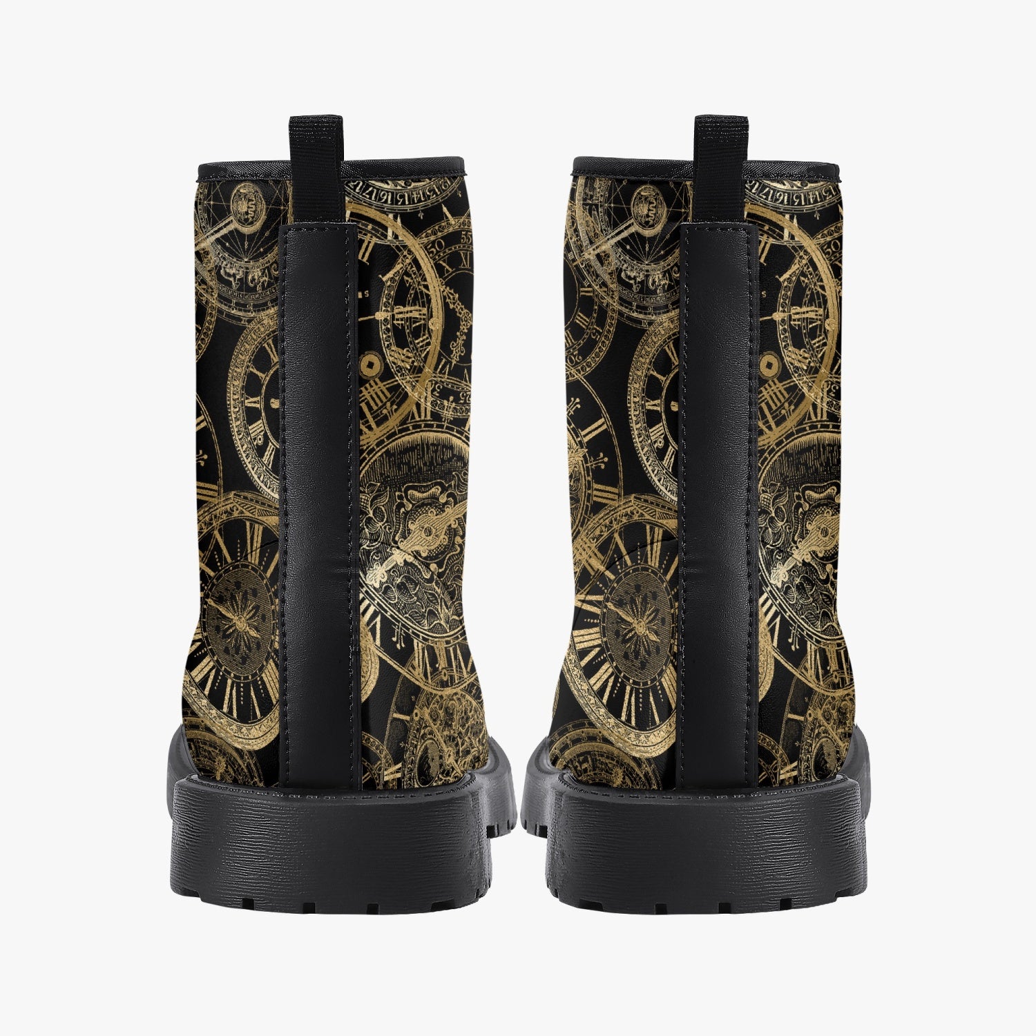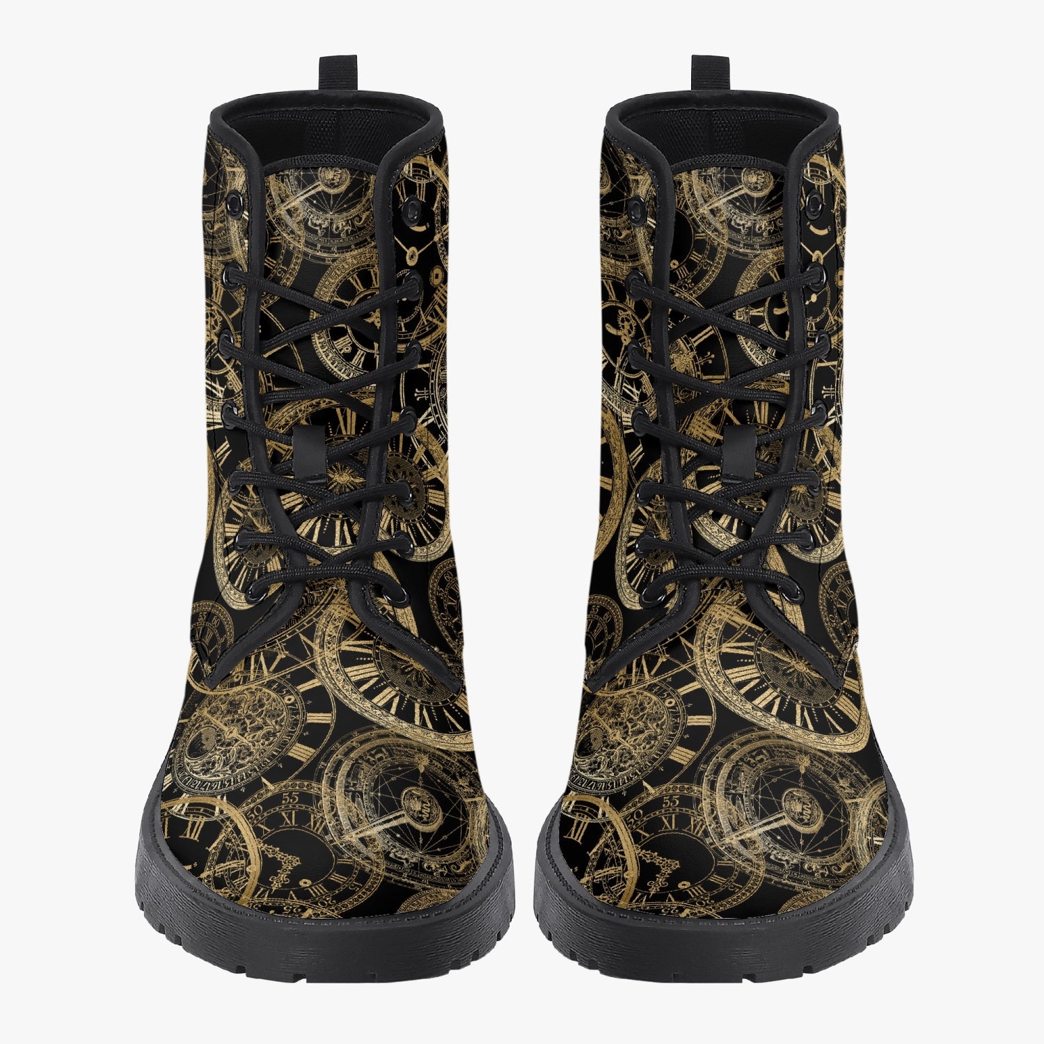 Steampunk golden clocks combat boots, perfect for Steampunk festivals and other events.   These boots are great for...