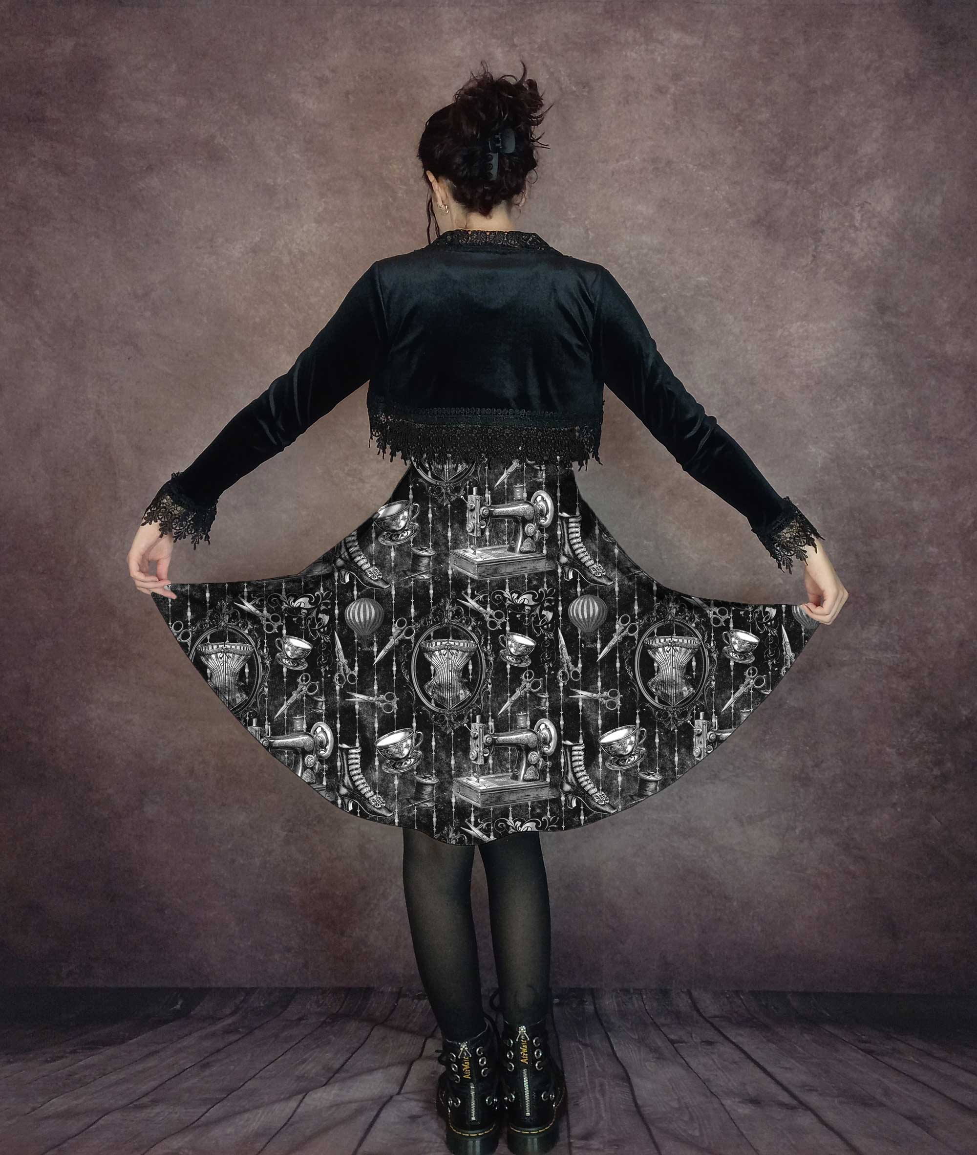 Whether you’re attending a special event or adding a little Gothic sewing flair to your casual day at work, you’ll love the feel of this swishy fun dress style.