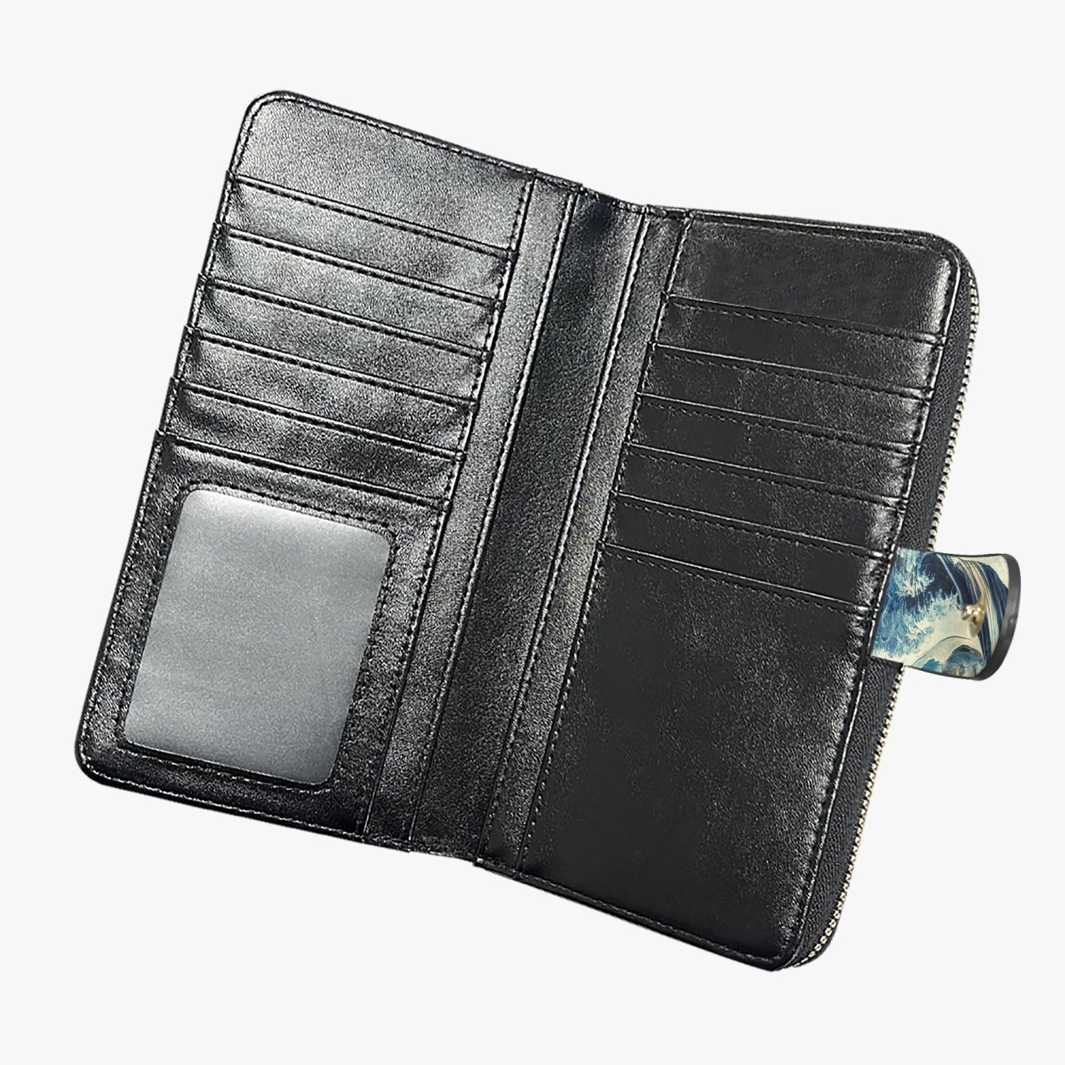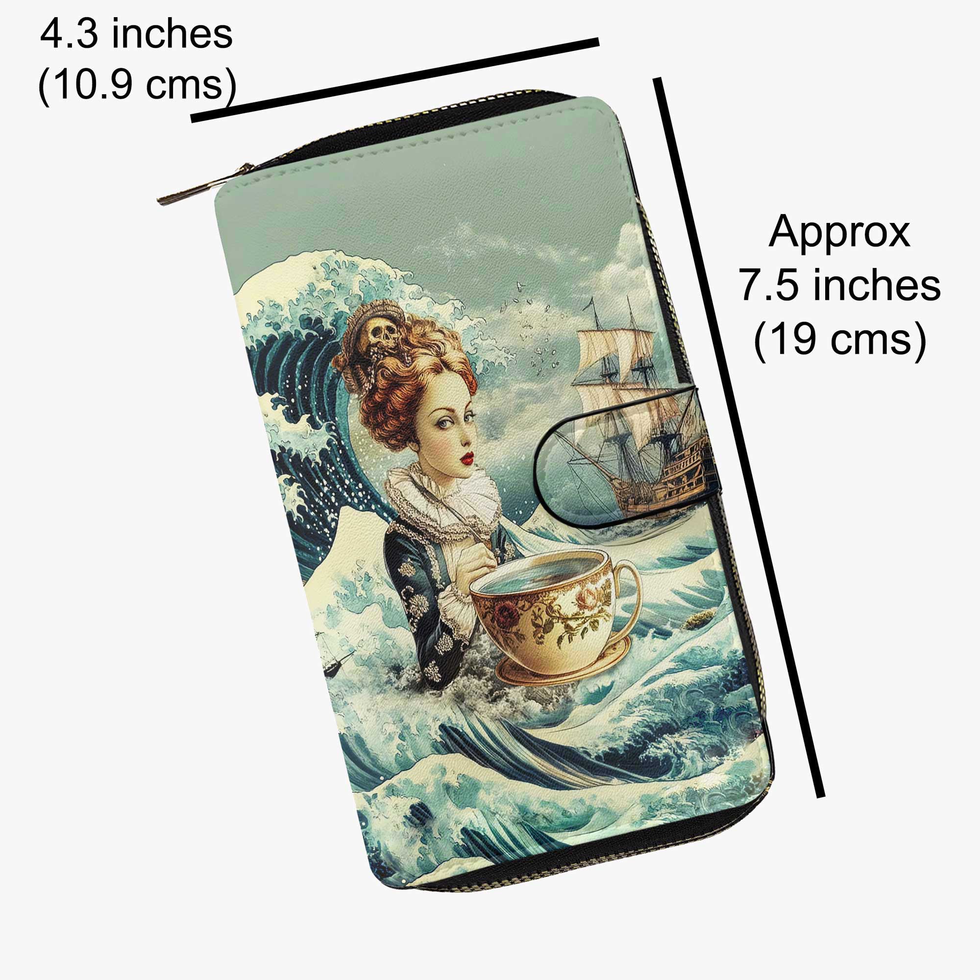For fans of alternative fashion, Steampunk, tea cups and Hokusai's Great Wave, you're sure to love our large zippered wallet.  Featuring an iconic print sure to delight with it's crazy mix of artistic genres.