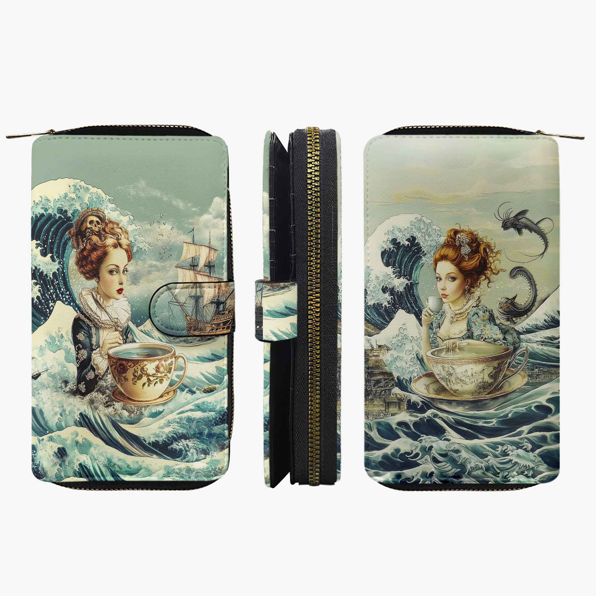 Steampunk Teacups and Great Wave Long Wallet (JPTEA1)
