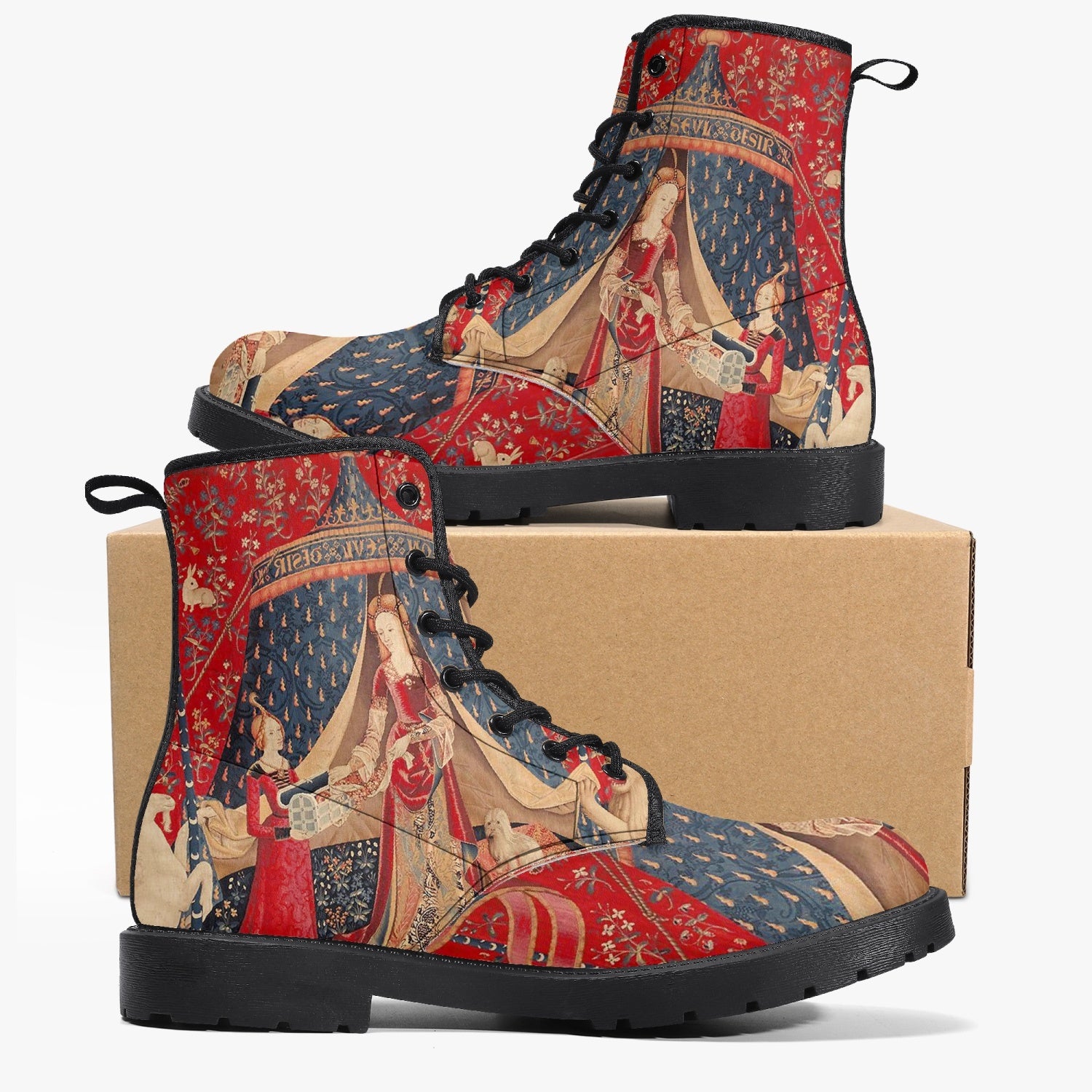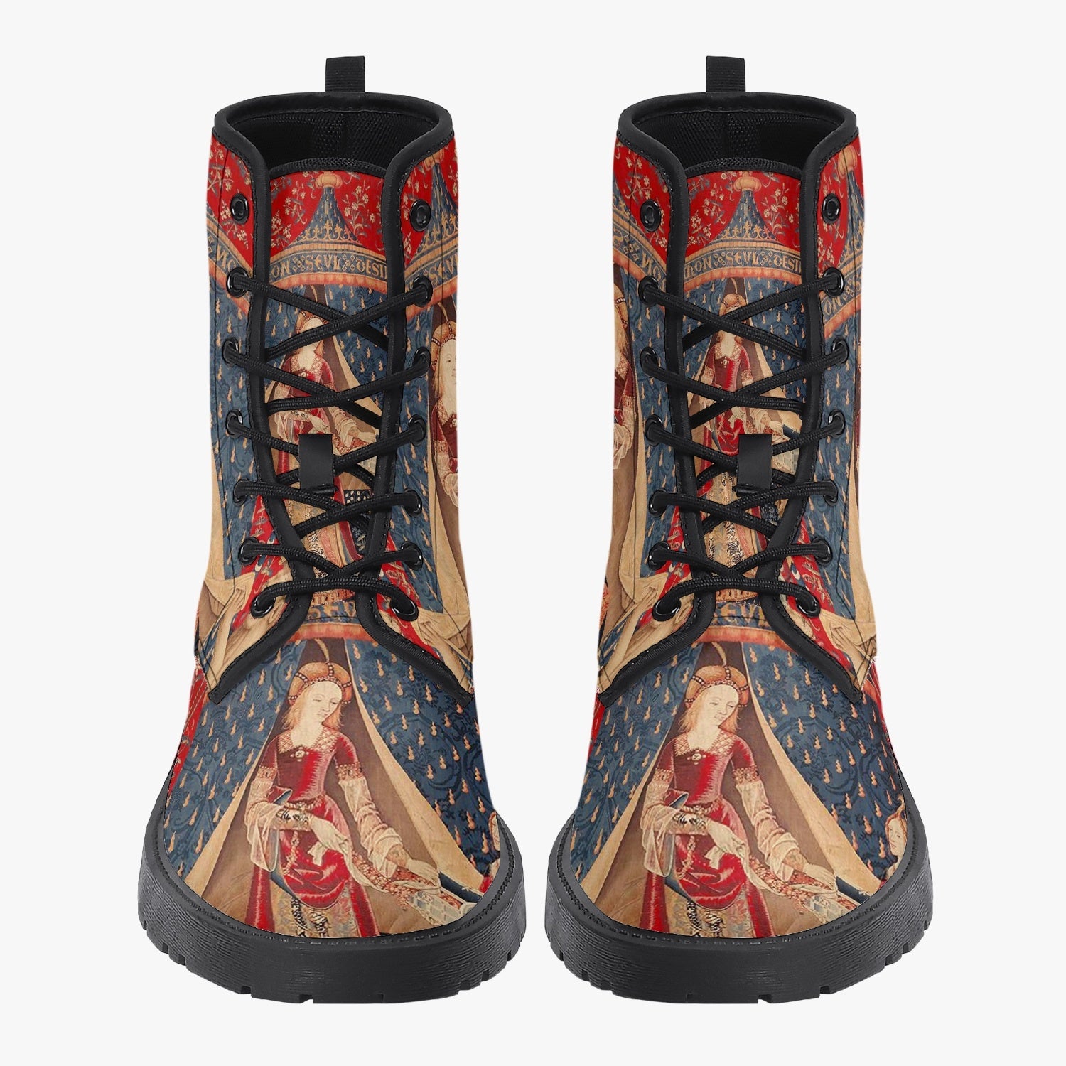 The Lady and the Unicorn Combat Boots - Mon Seul Desir Tapestry Boots for Art Lover (JPREG75)