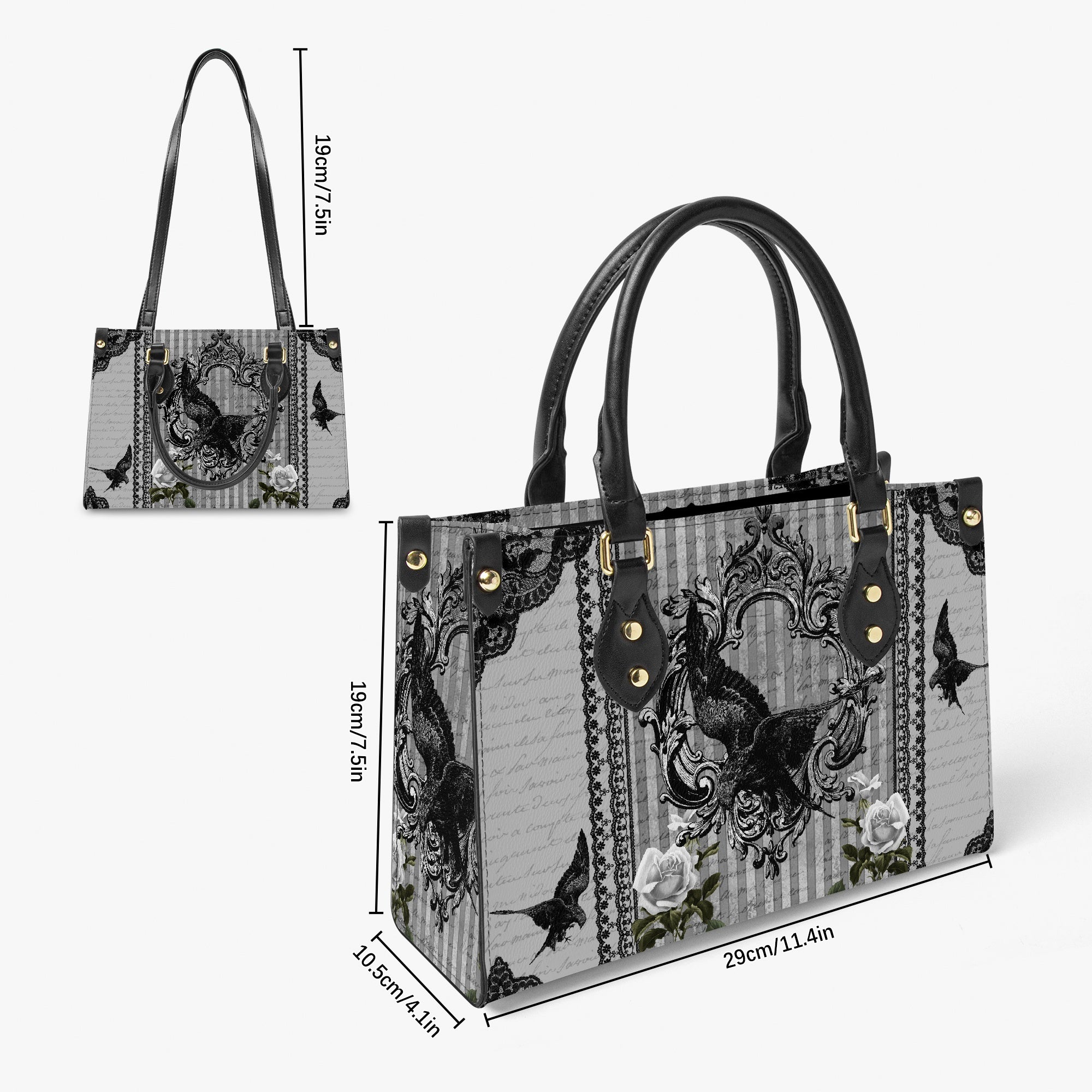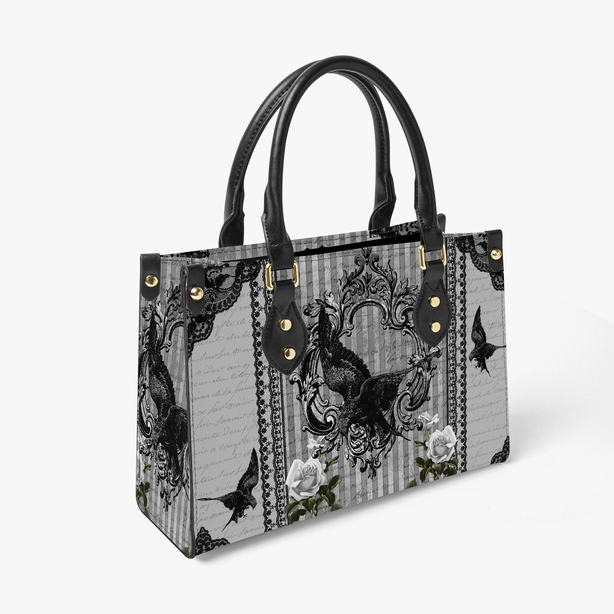 This custom printed handbag pays homage to the dark elegance of Edgar Allan Poe’s The Raven.