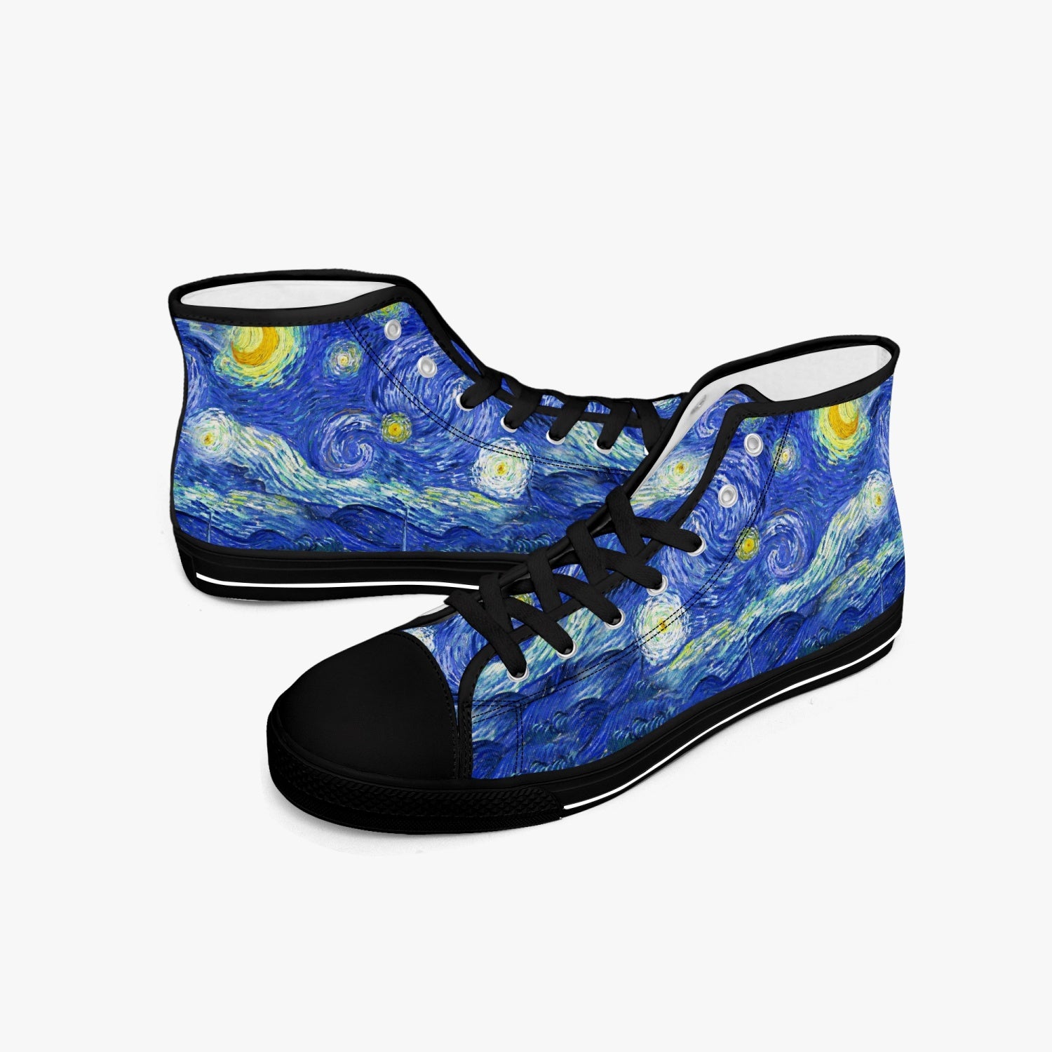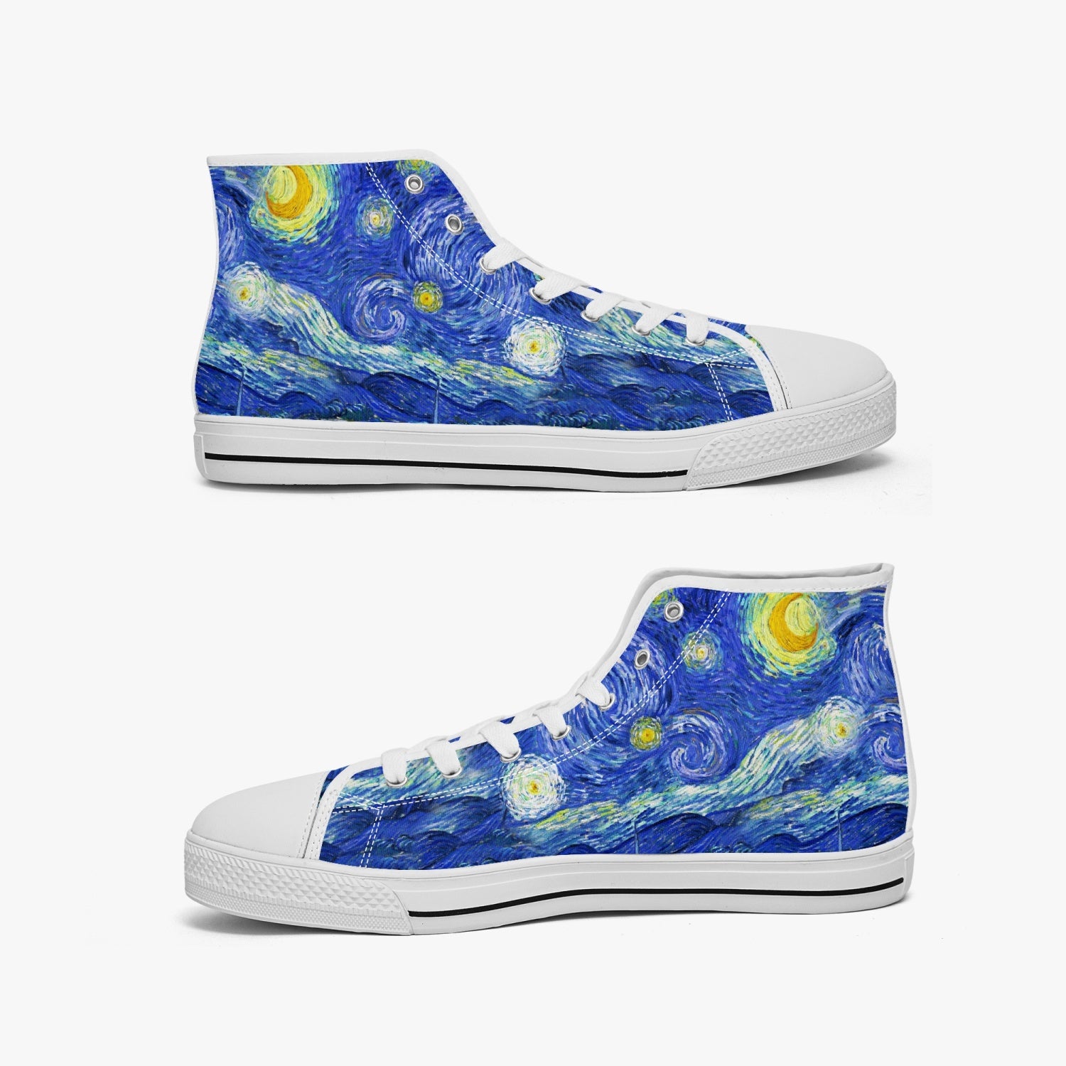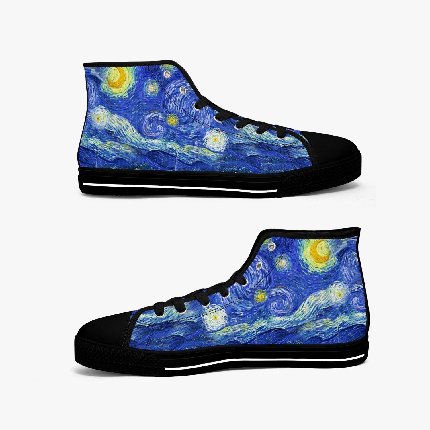 The sublime Starry Night by Van Gogh custom printed on premium quality Hi Top sneakers. These are just perfect for summer fun and make an ideal gift for art students and lovers of artistically inspired fashion.