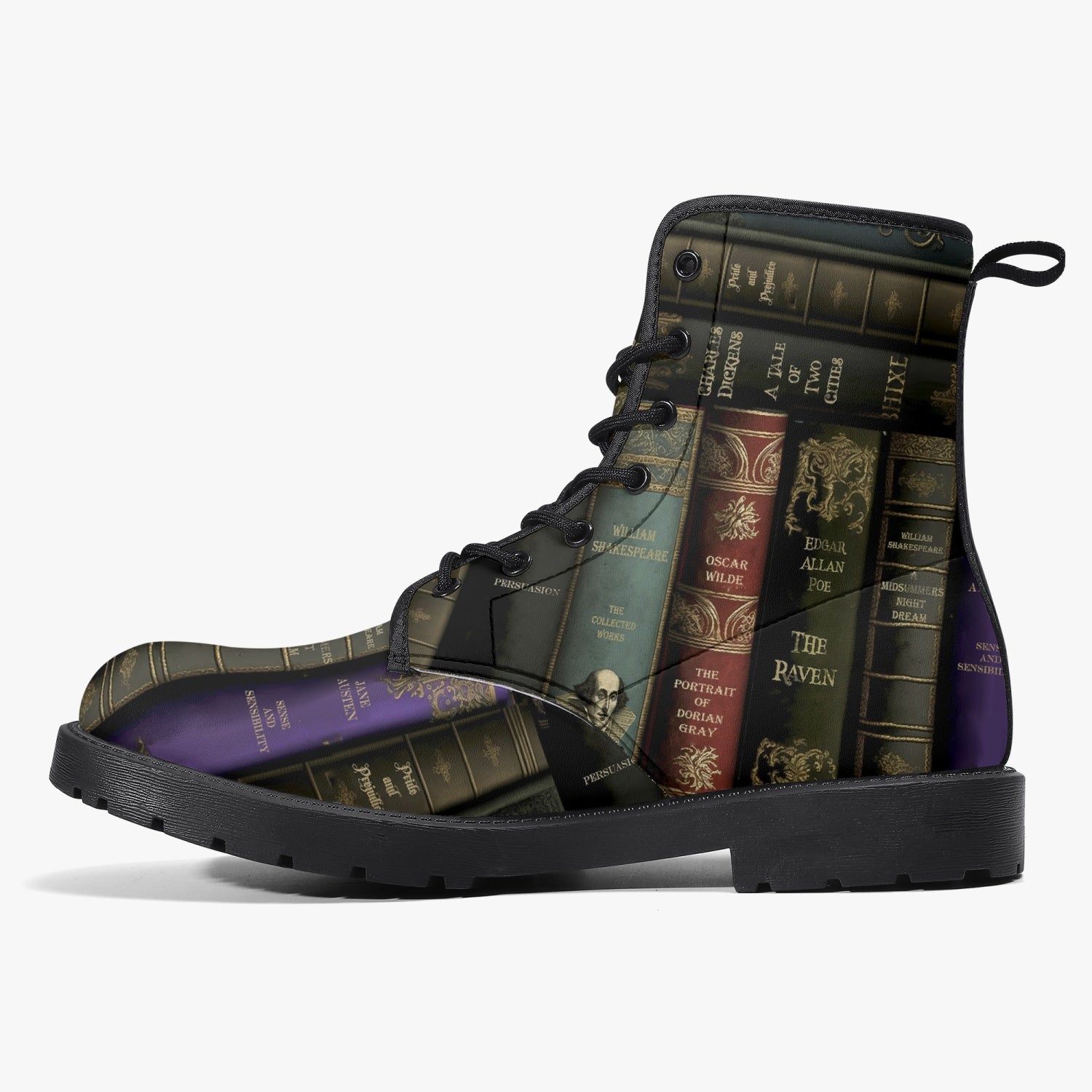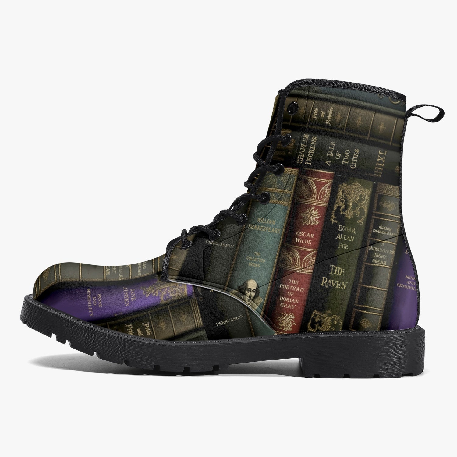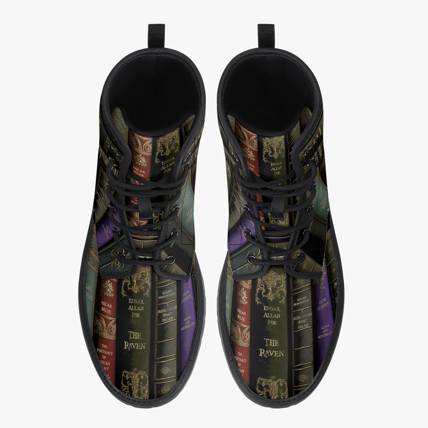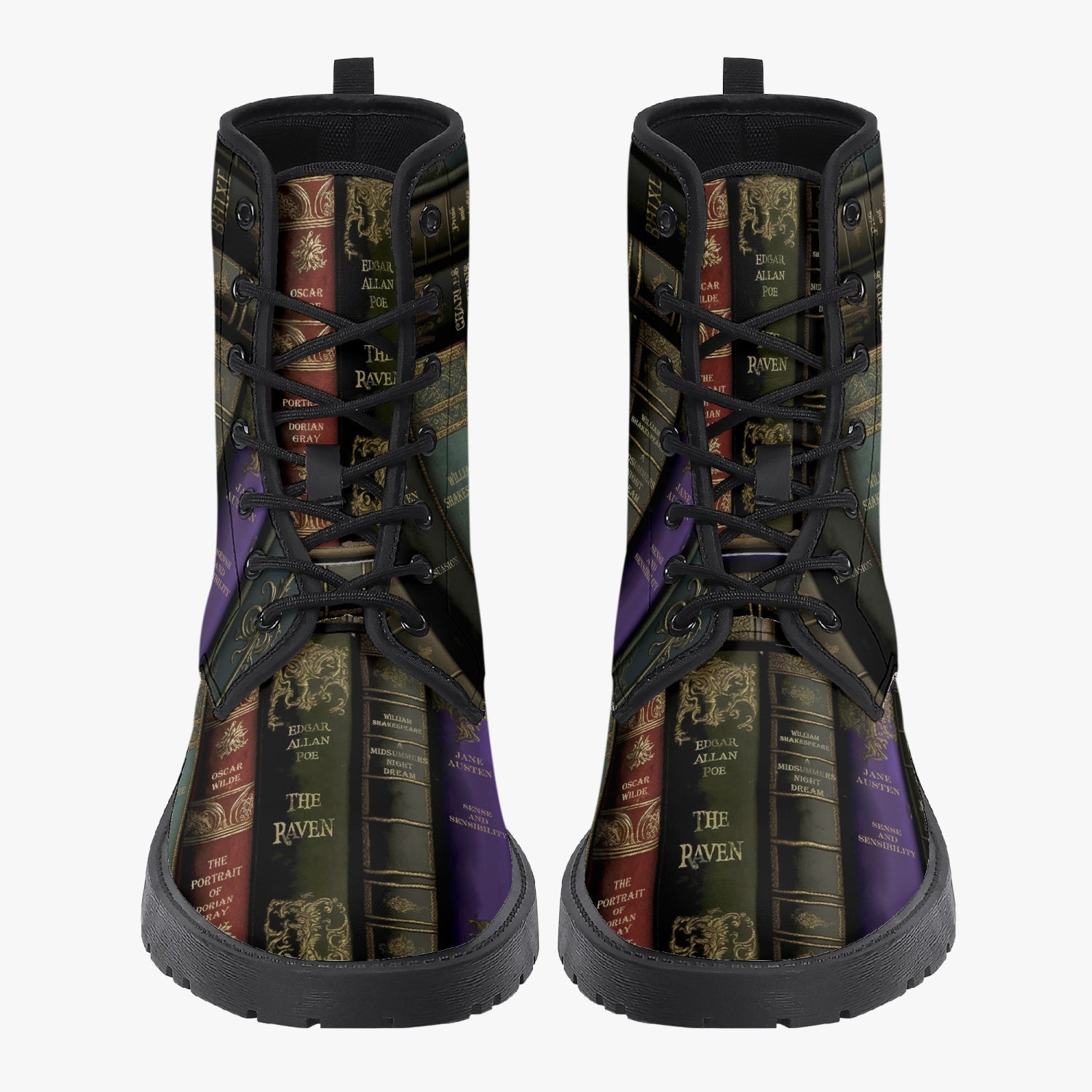 Vintage Books Combat Boots - Dark Academia Aesthetic Shoes - Librarian Boots (JPVINBOOKS)