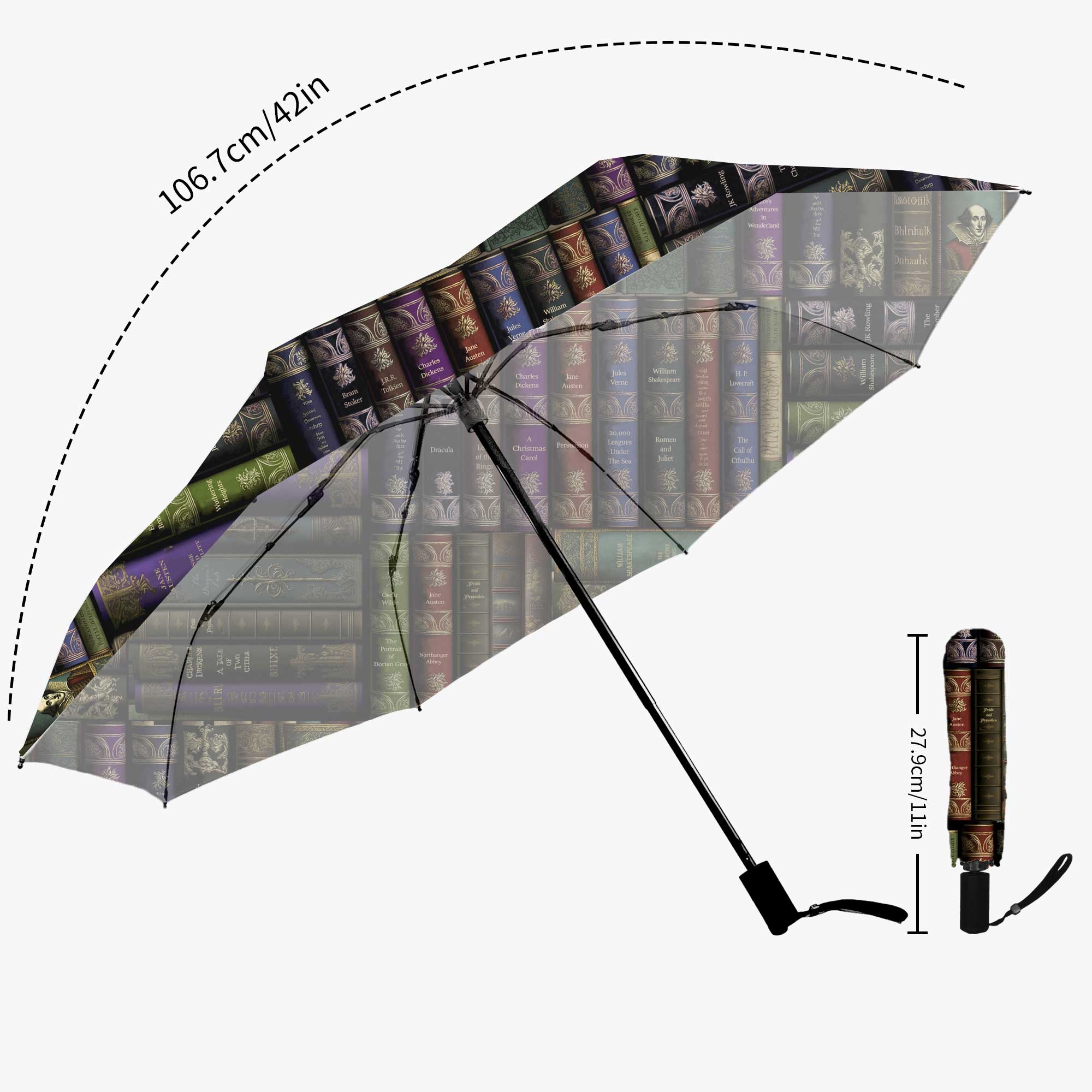 Step into the rain like a true literary icon with our Vintage Library Books Custom Printed Automatic...