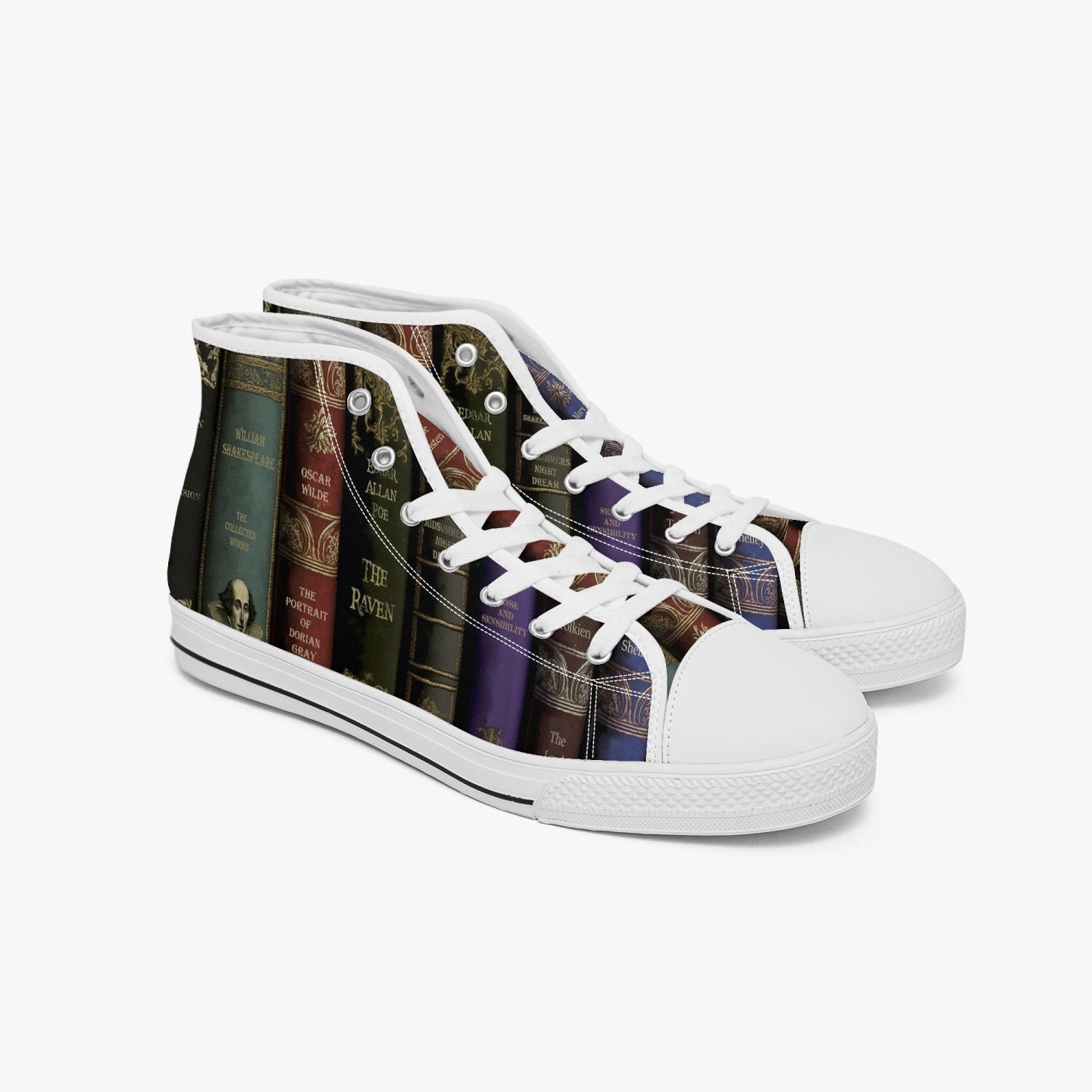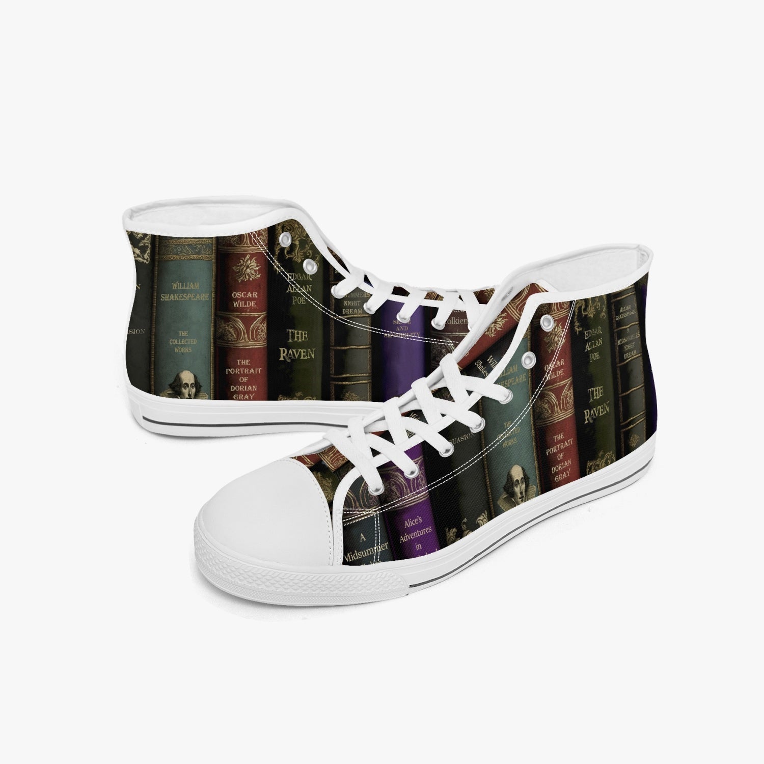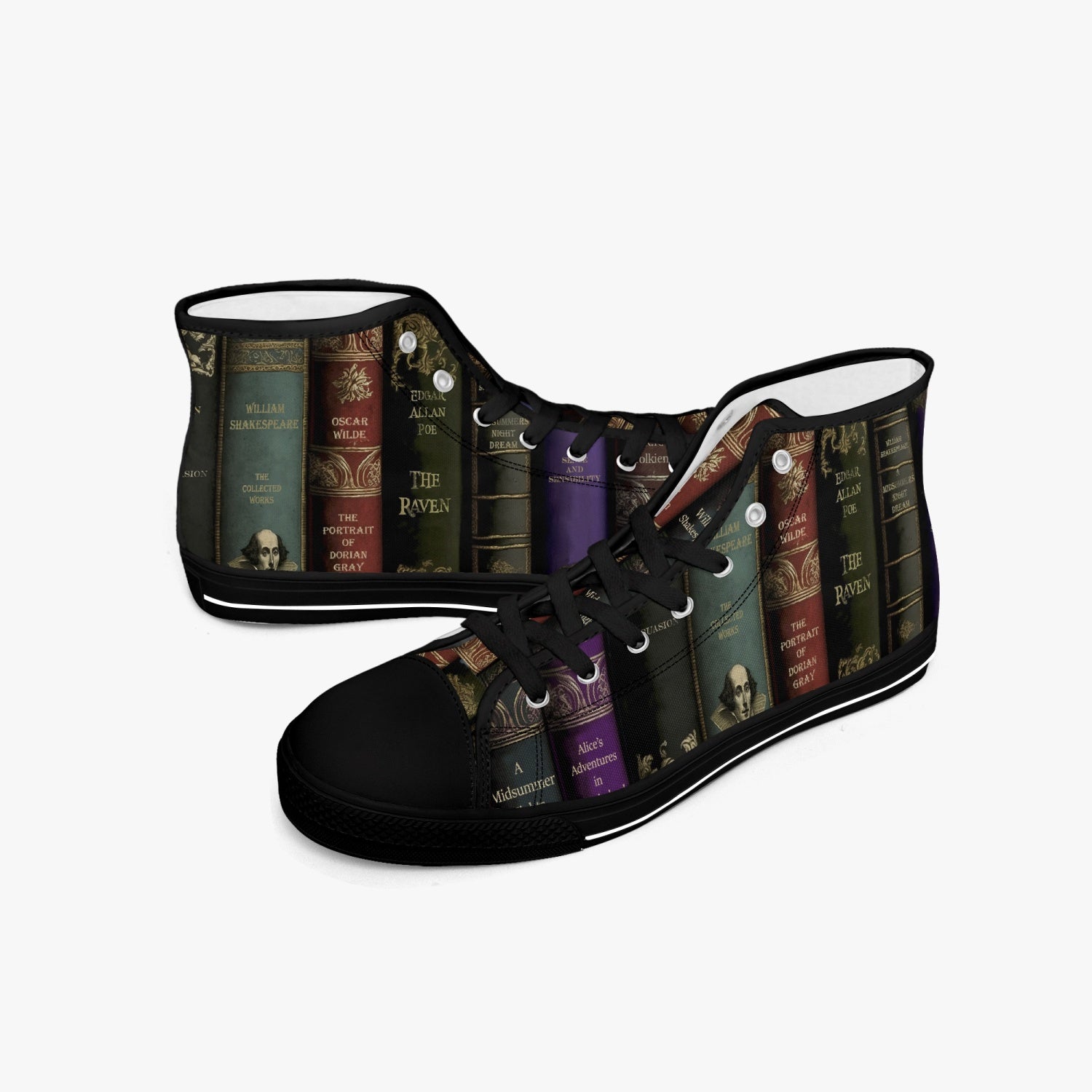 Vintage Library Books Hi Top Sneakers - Librarian Shoes - Dark Academia High Tops (JP4002)