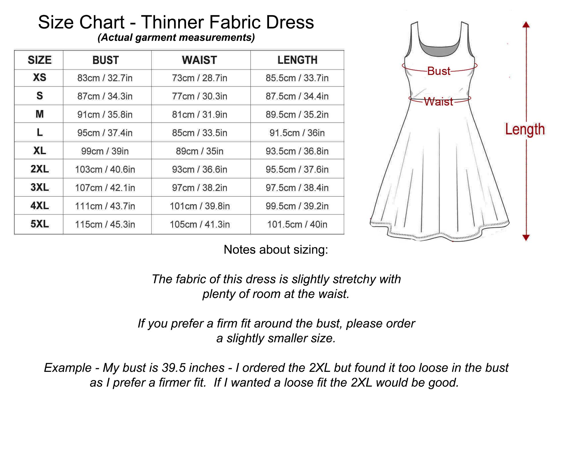Each Dress is custom printed, cut and sewn just for you when you place your order. There may be small differences in the design on the seams and / or arms due to the custom nature of the production process!