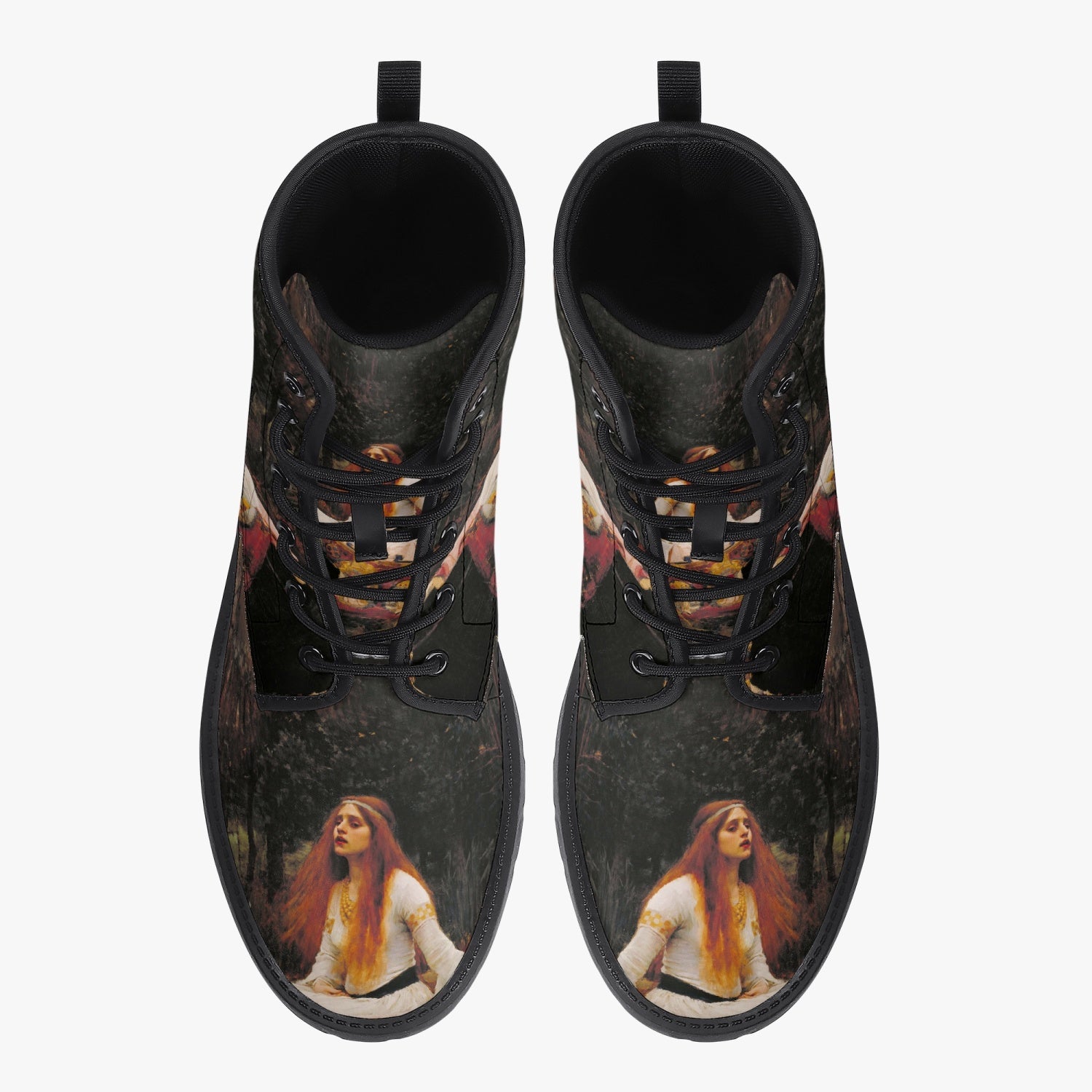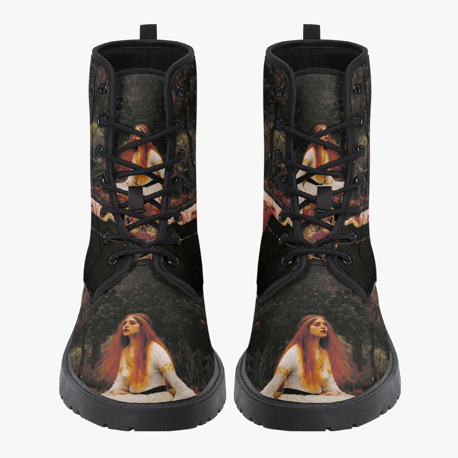 The beautiful Lady of Shalott by Waterhouse custom printed on super comfy combat boots.